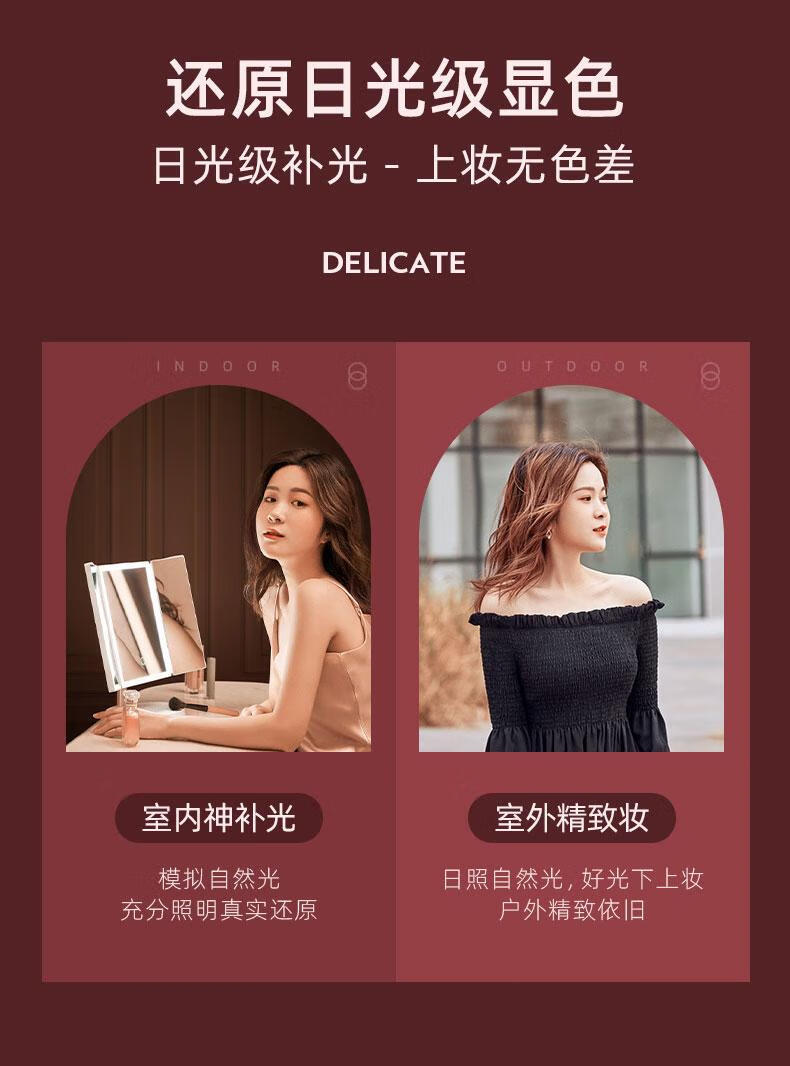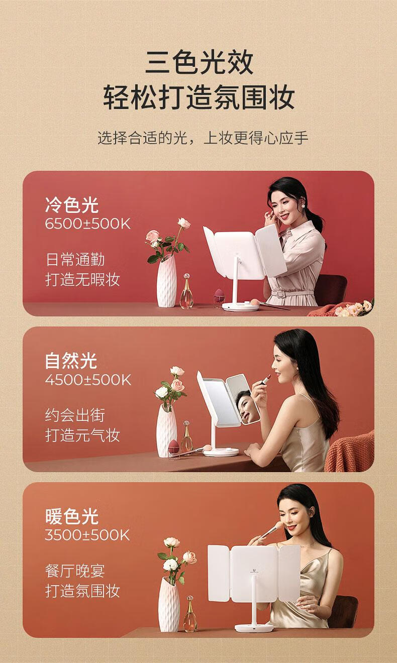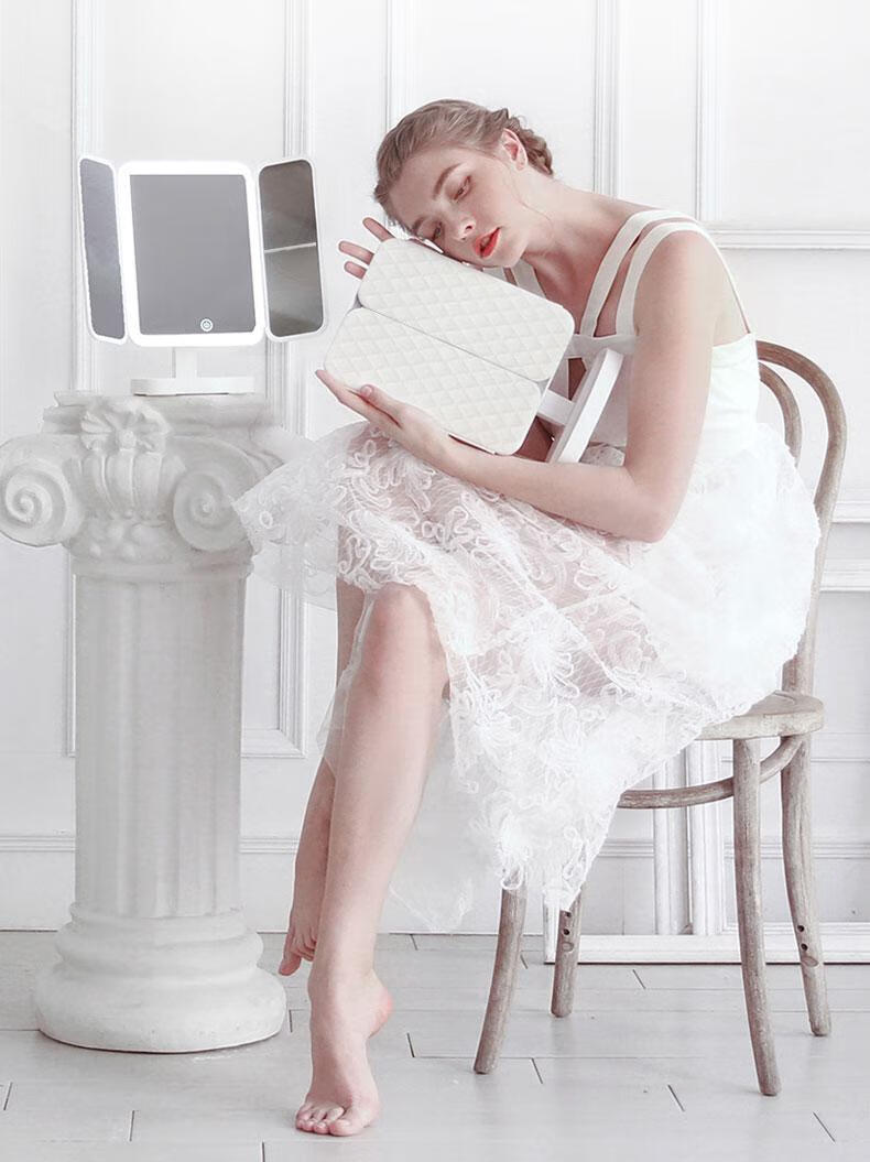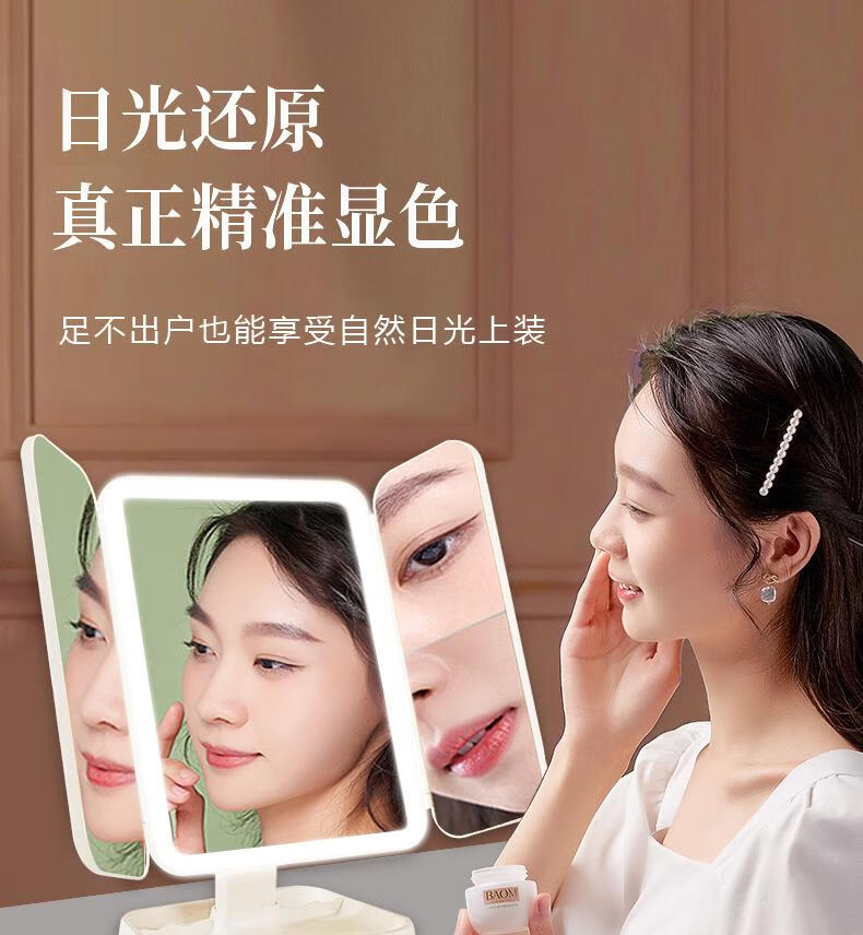 YUBAE make-up mirror LED with light fill-in high-definition mirror three-sided folding gift for girlfriend birthday gift rechargeable upgraded version led folding make-up mirror