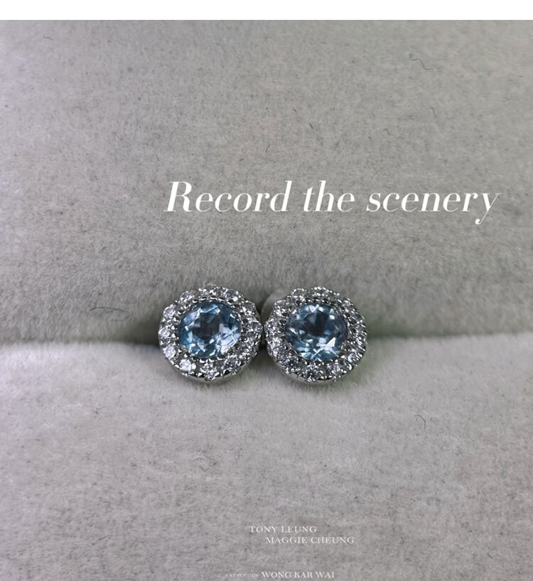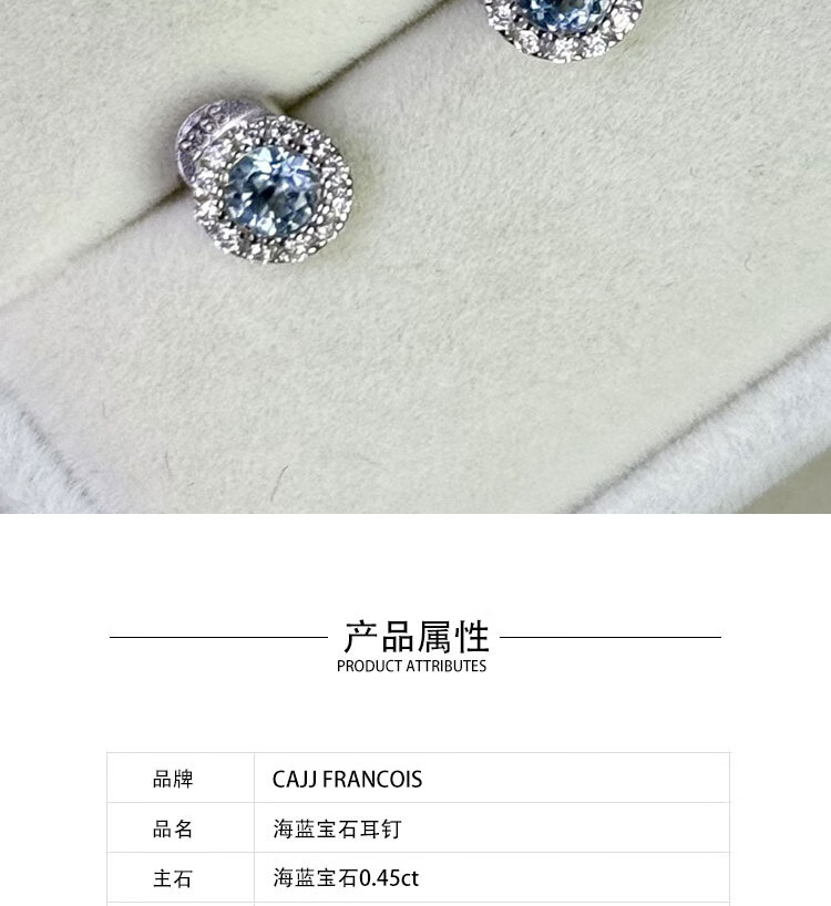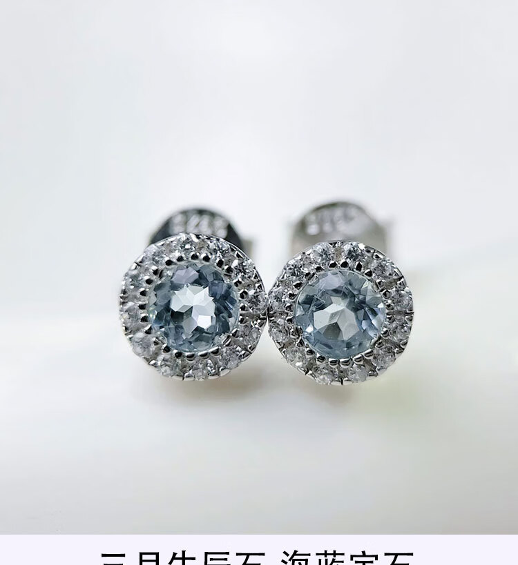 CAJJ Francois 0.45 carat aquamarine stud earrings 925 silver classic surround daily wear natural colored gem aquamarine stud earrings