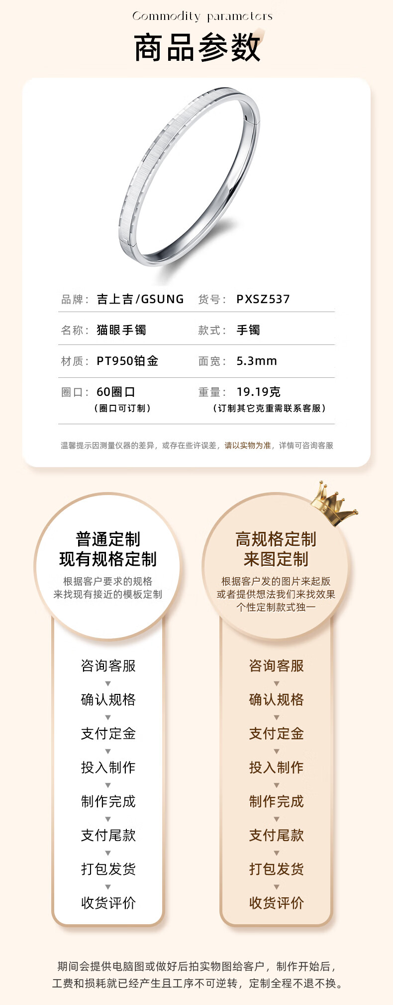 GsunG Platinum PT950 Cat's Eye Symphony Oval Bracelet Royal Princess Pure Platinum Bracelet Women's Bracelet can be customized to give to your girlfriend. Different rings can be customized. Contact customer service to place an order.
