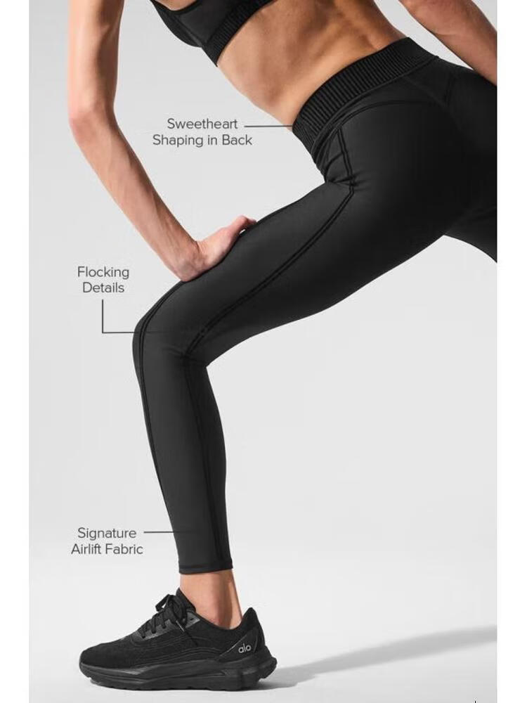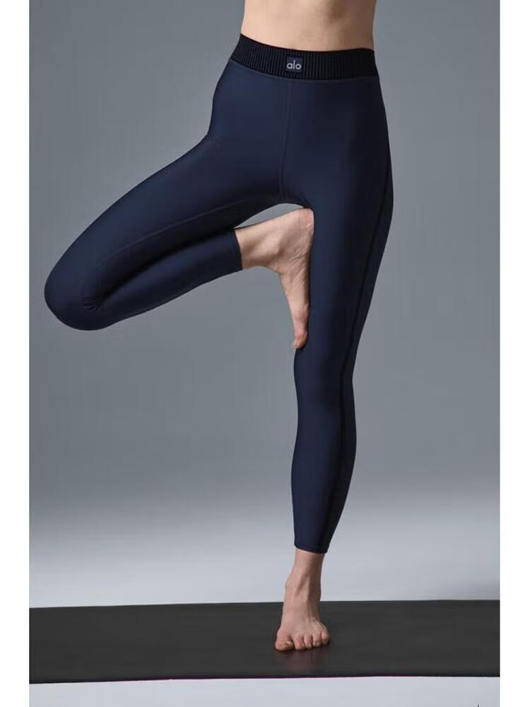 ALO YOGA yoga pants, high-waisted fitness pants, Airlift Pilates pants 7/8, high-performance streamlined high-elastic sports pants Black XXS (suitable for waist 59.5 - 62cm)