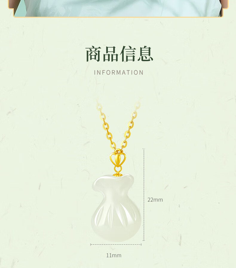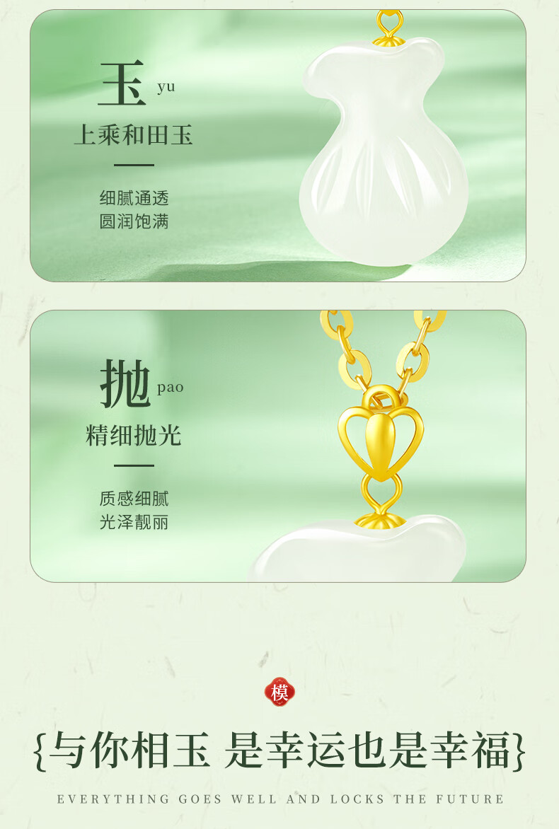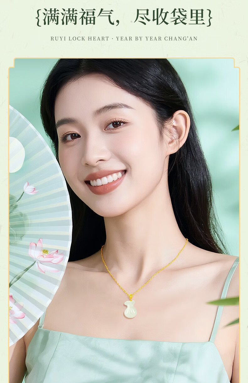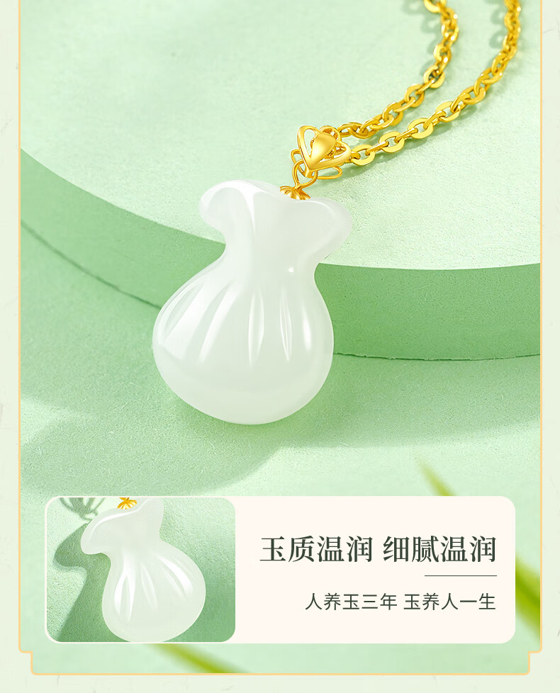 Chinese gold 18k lucky bag necklace for women K gold Hetian jade pendant gift for girlfriend and wife’s birthday practical 18k lucky bag pendant + K gold chain