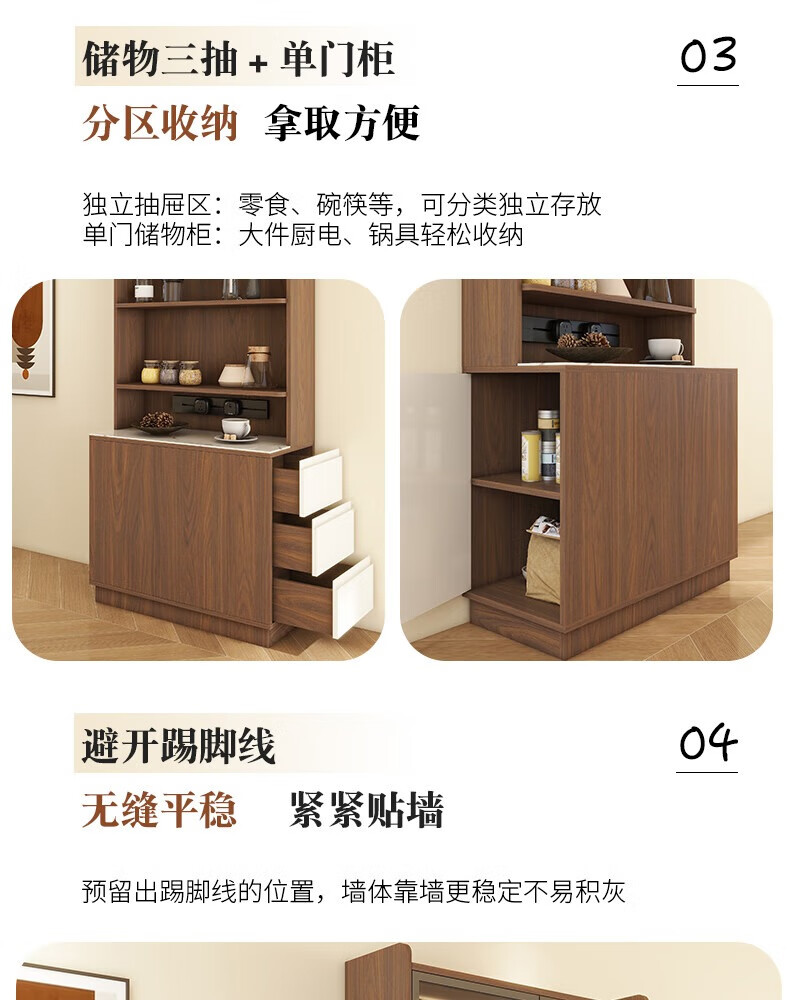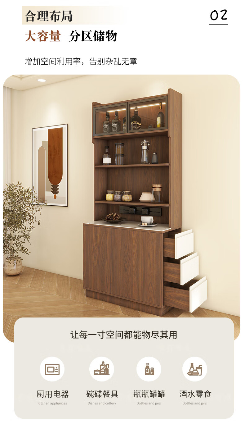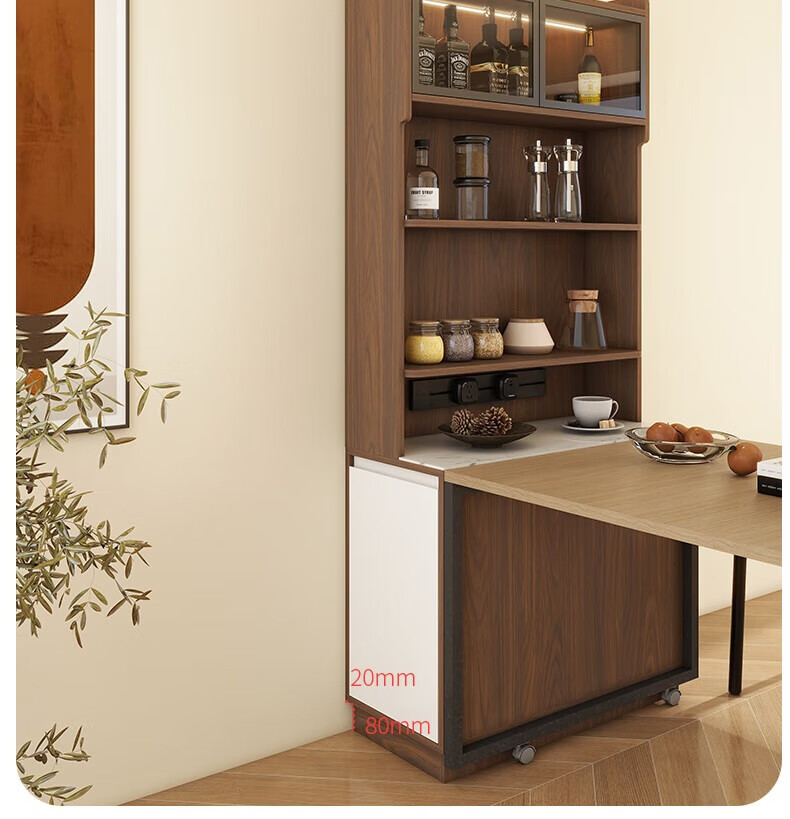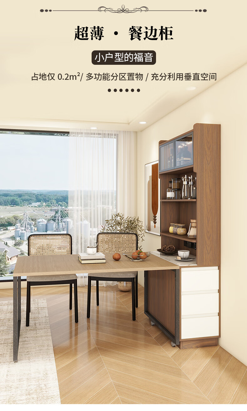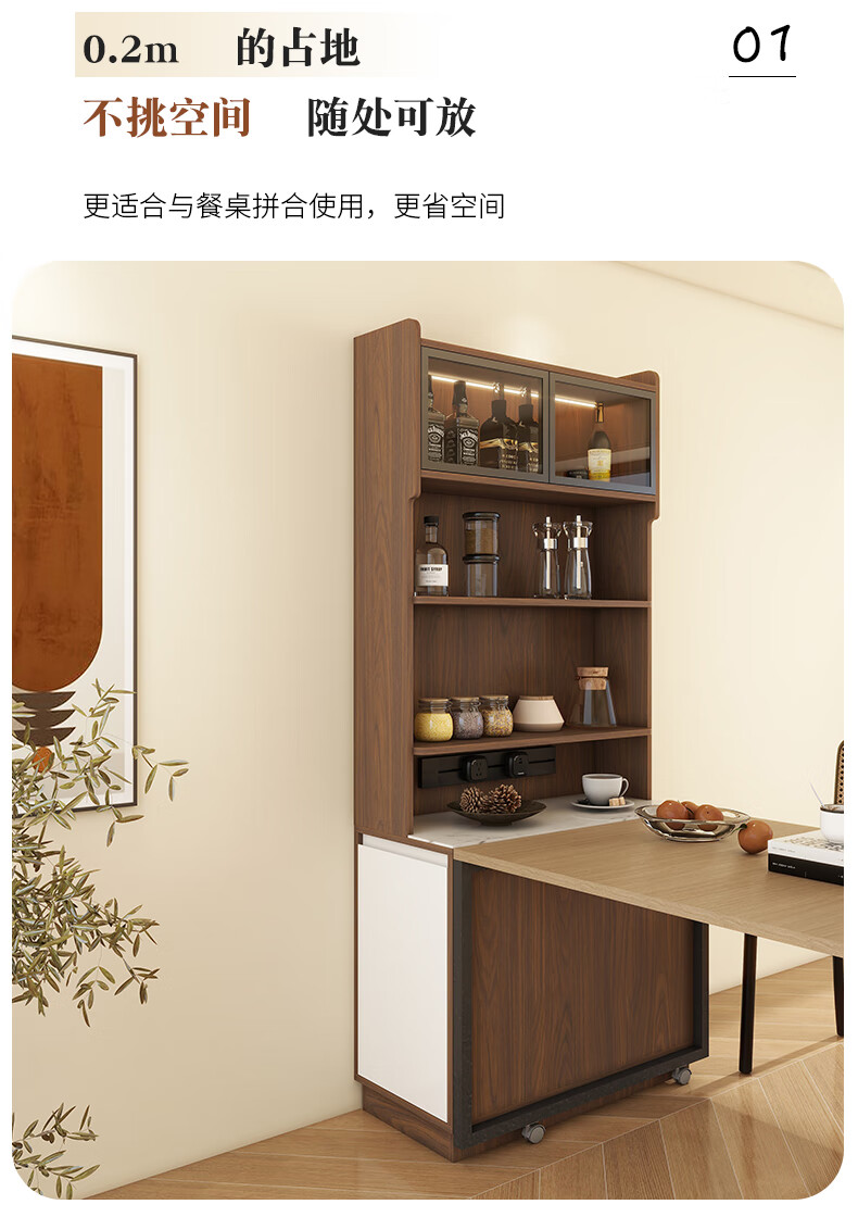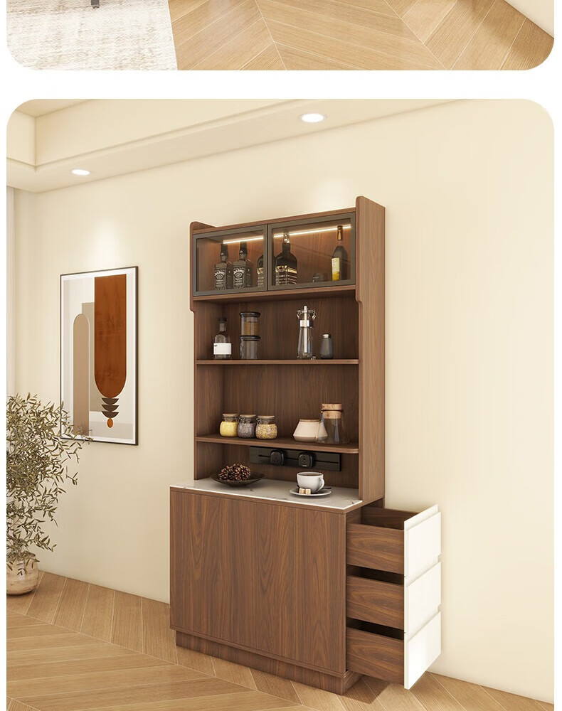 Yijuge solid wood second-hand ultra-thin sideboard storage cabinet dining table integrated side cabinet storage cabinet narrow island cabinet customization length 90 width 40 height 200 / deciduous walnut + white