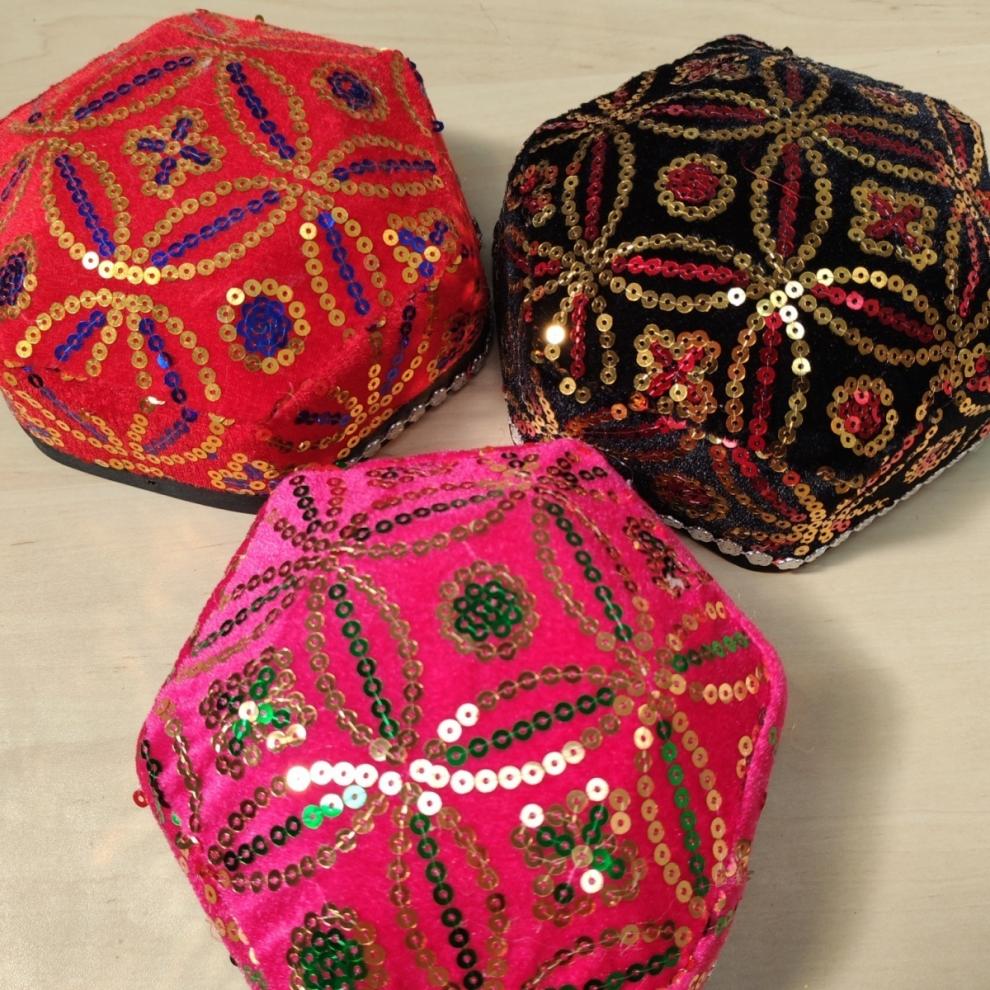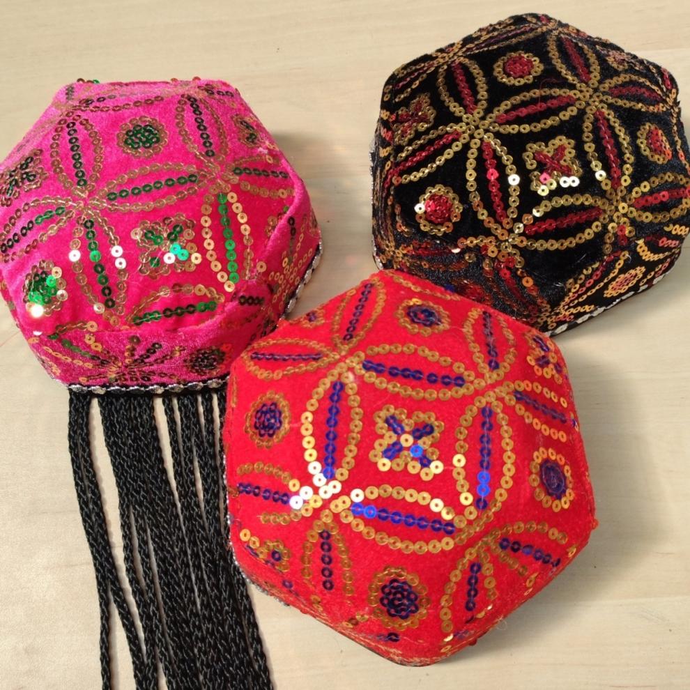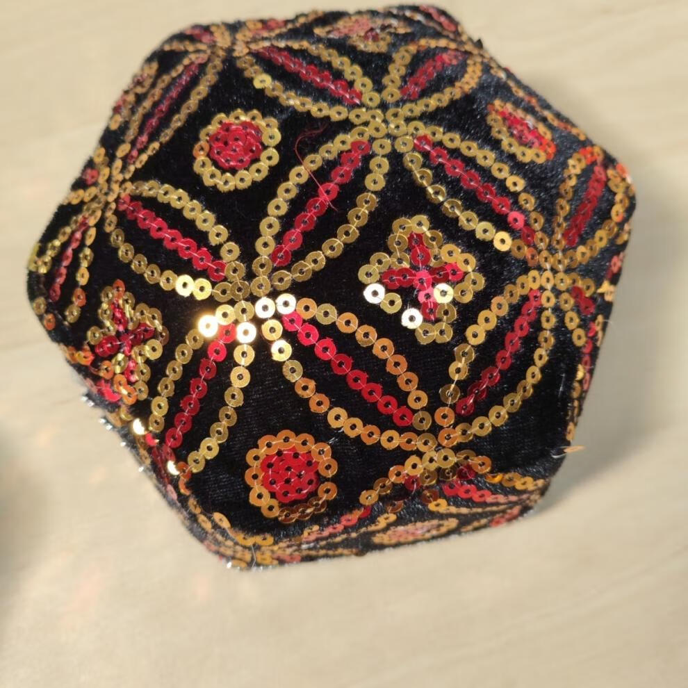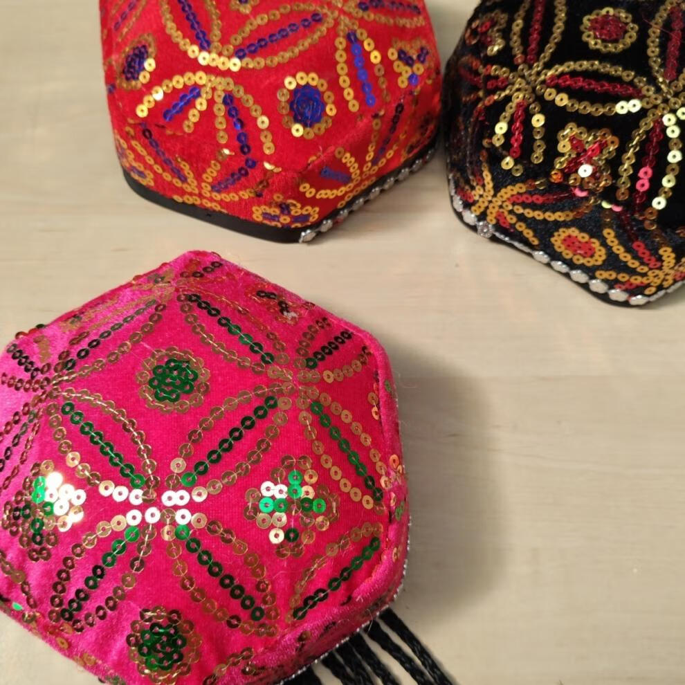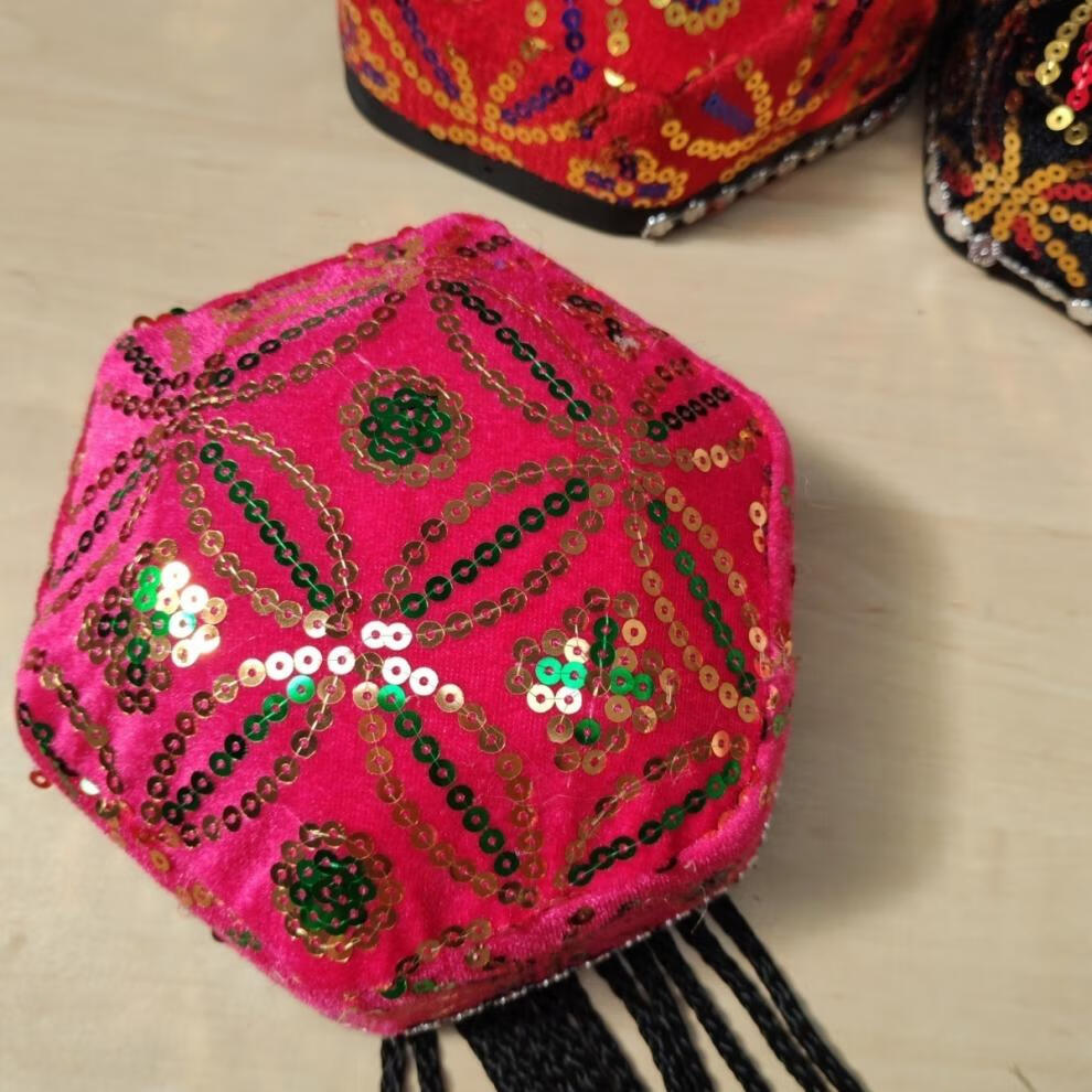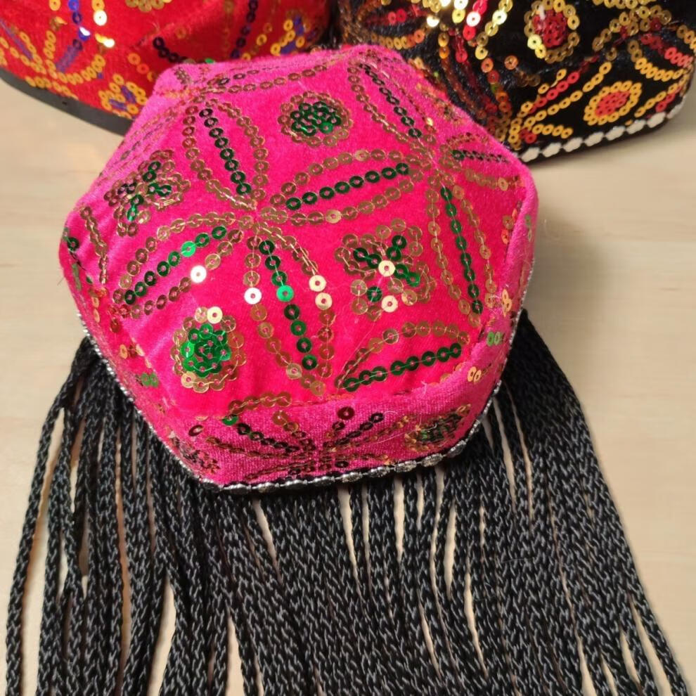Gisailun Xinjiang hexagonal hat dance Uyghur national braid Uygur children hexagonal performance headdress hat adult red hat plus 12 pieces