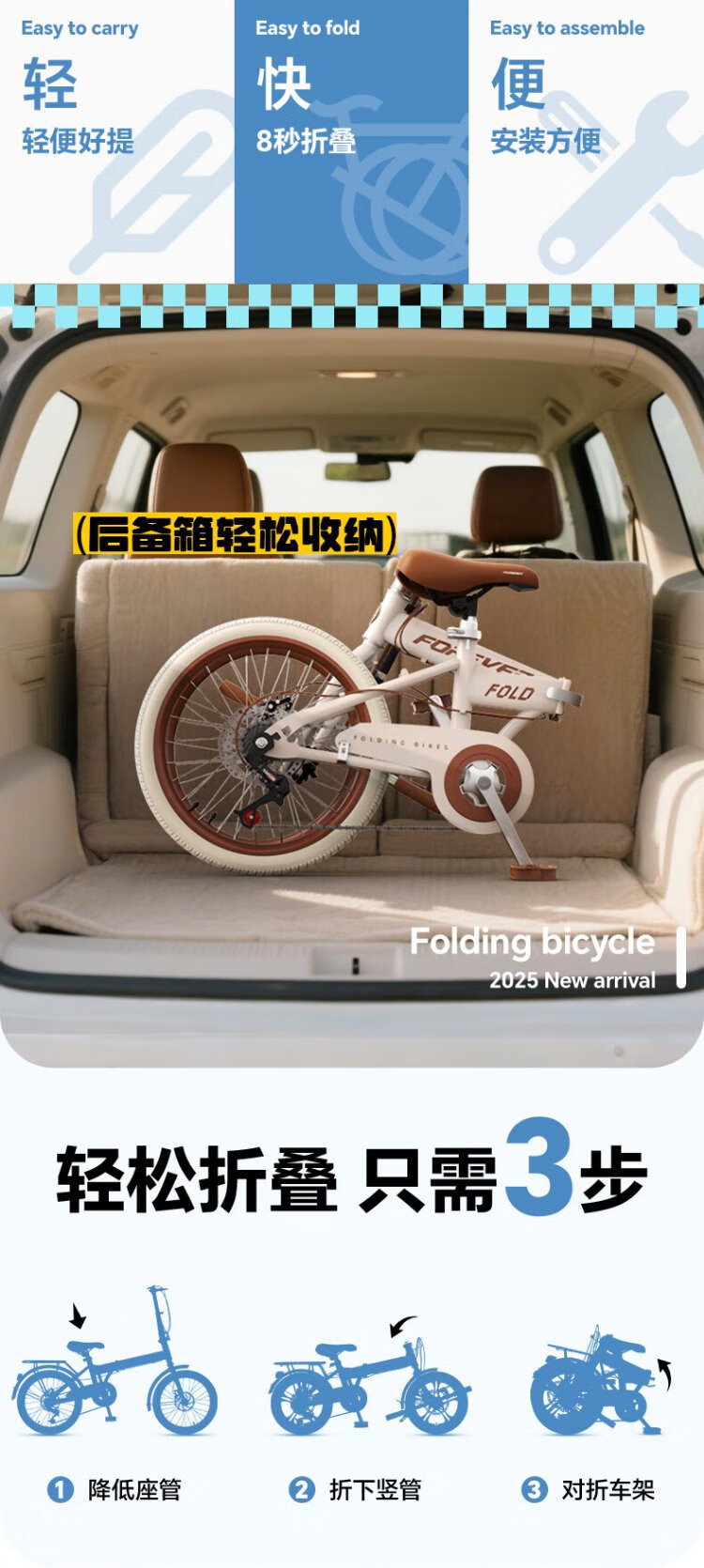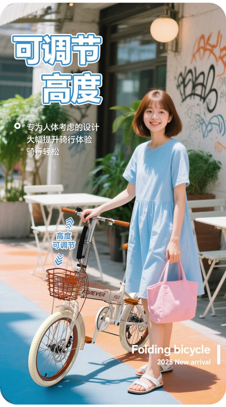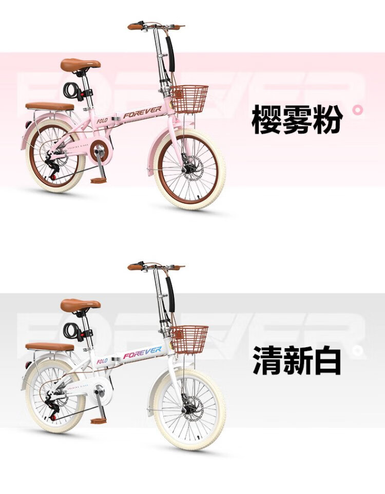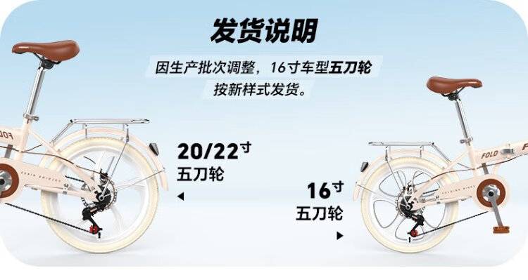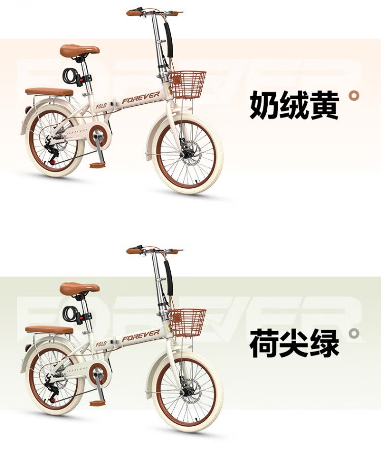 Permanent folding bicycle for adults, men and women, variable speed, ultra-light, portable student bicycle for commuting to work, no installation required, milky yellow, single-speed spoked wheel - no installation required, 20 inches, suitable for 155-175cm