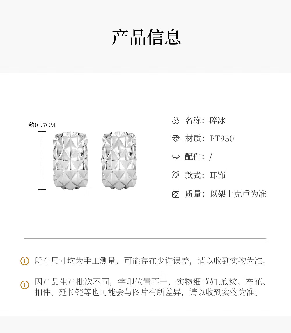 Ming brand jewelry platinum Pt950 platinum crushed ice earrings gift for women BFH0116 platinum earrings about 4.64 grams