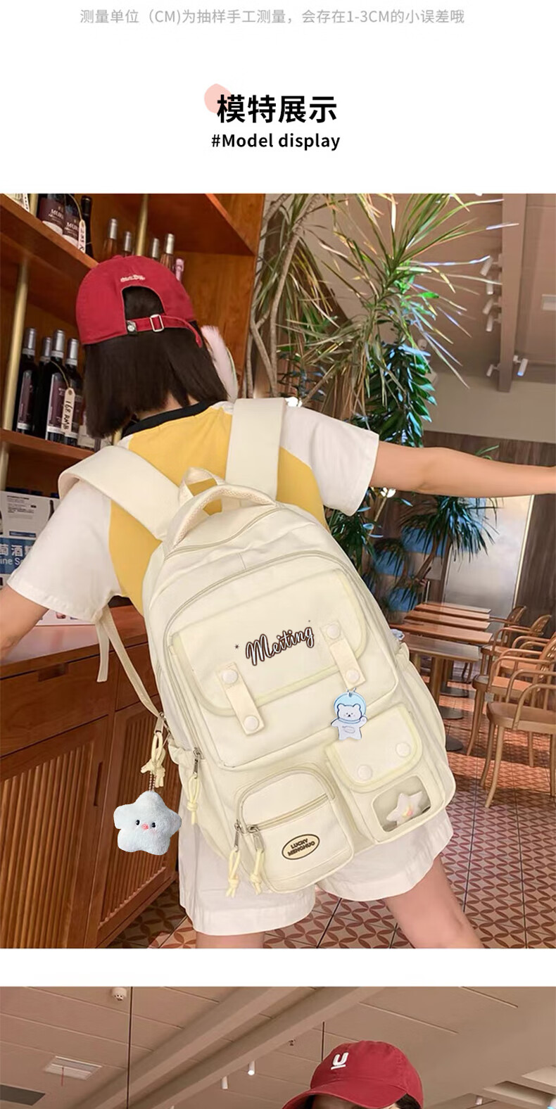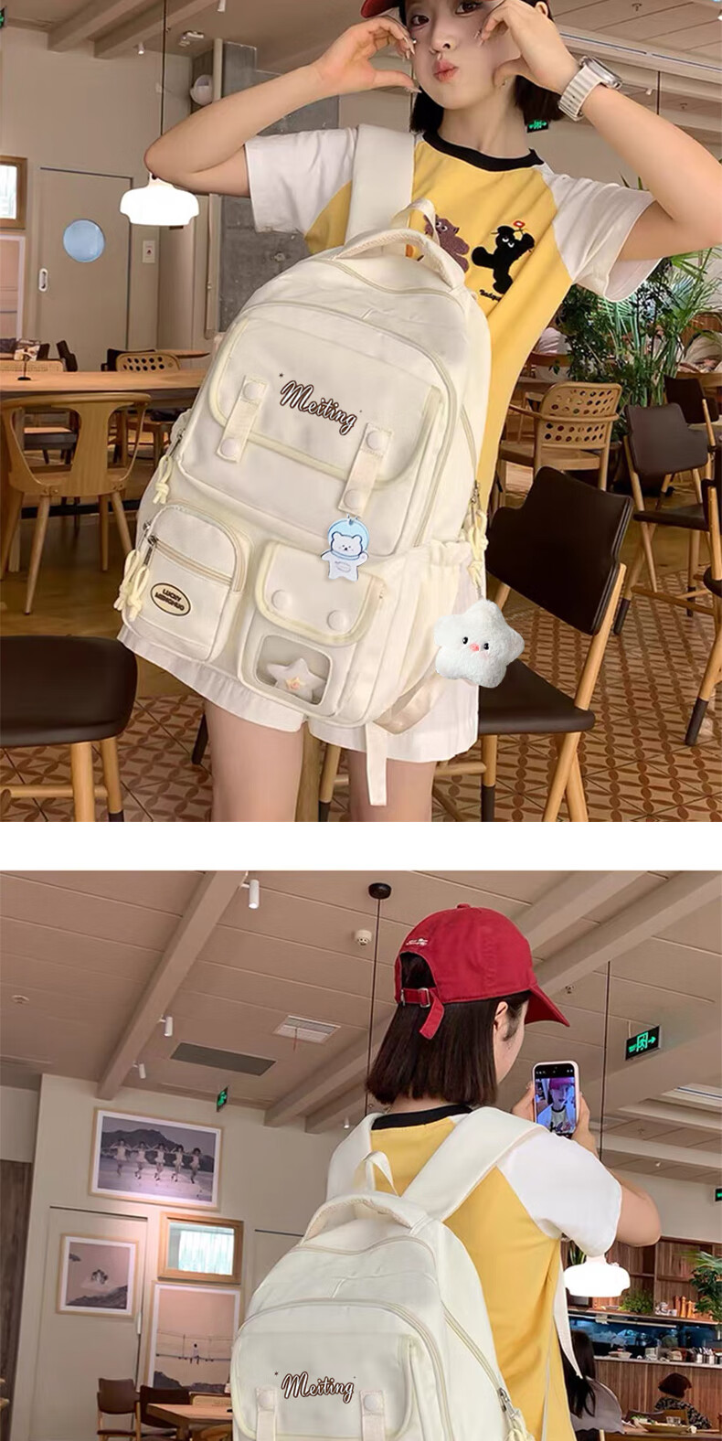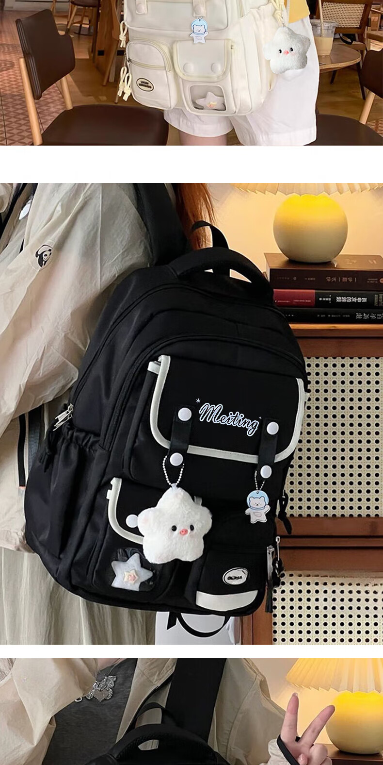 Lugeli schoolbag for female junior high school and high school students, Korean version large-capacity multi-compartment backpack, primary school student fourth to sixth grade backpack, black with pendant + badge + star pendant