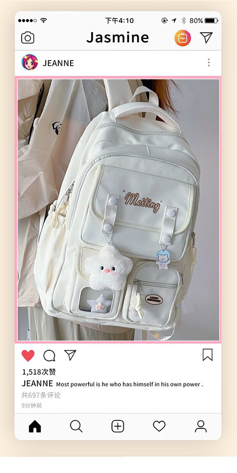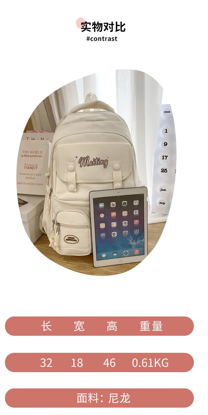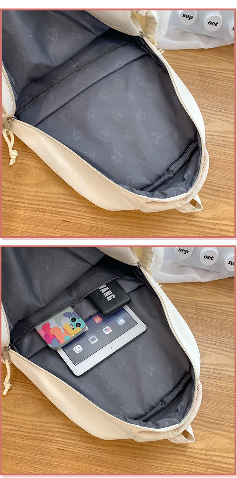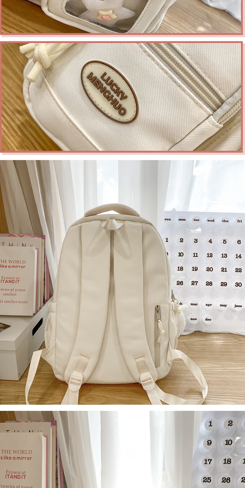 Lugeli schoolbag for female junior high school and high school students, Korean version large-capacity multi-compartment backpack, primary school student fourth to sixth grade backpack, black with pendant + badge + star pendant