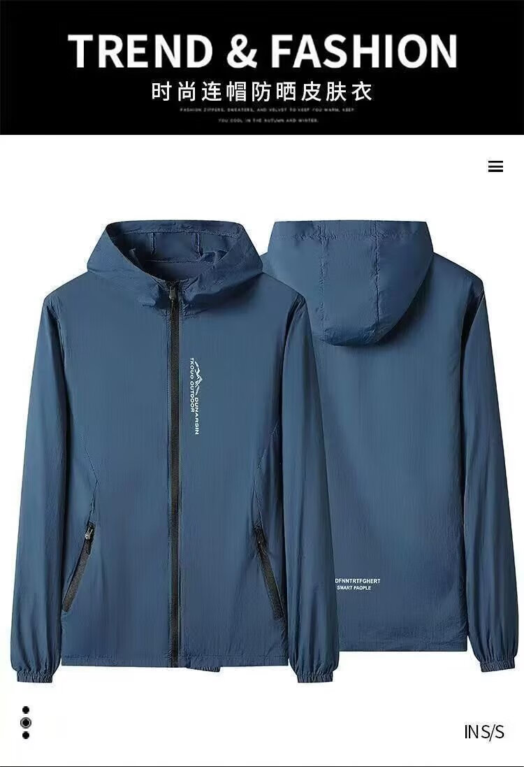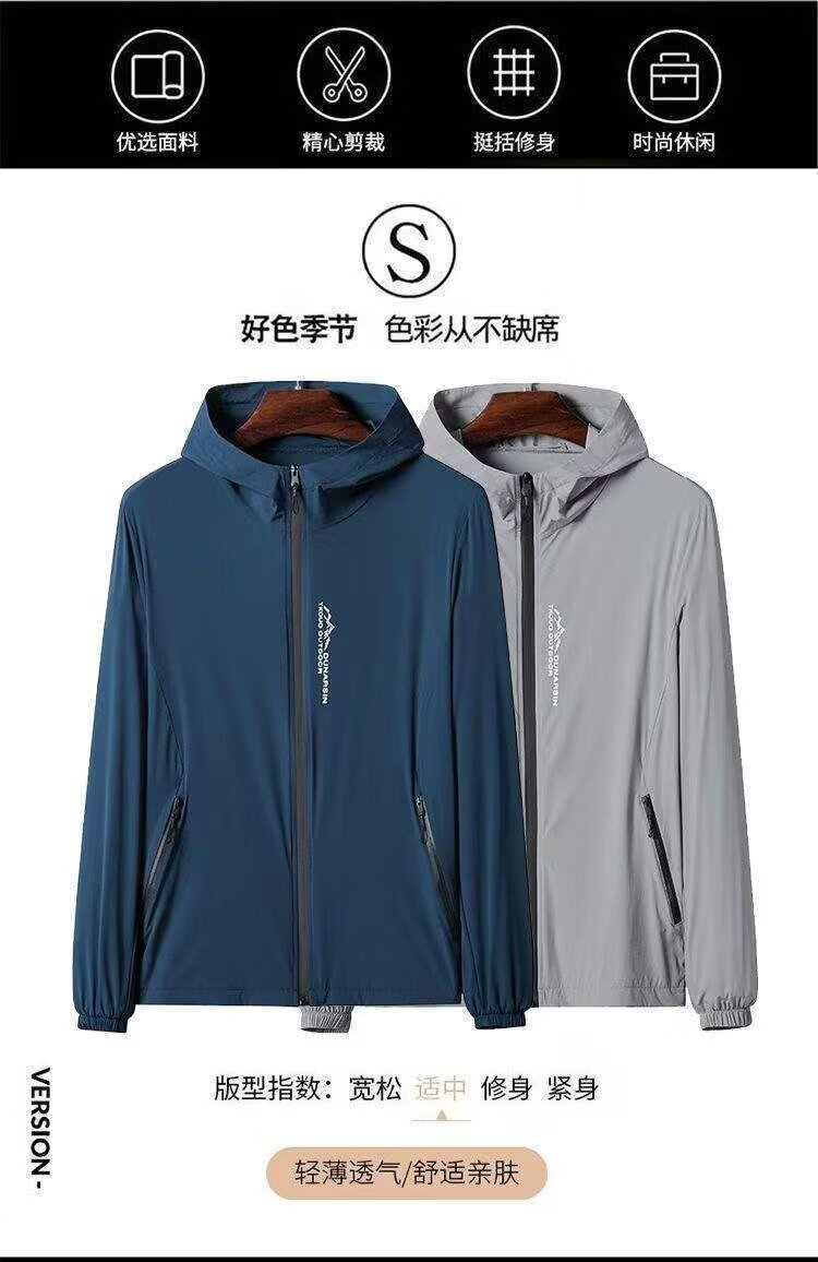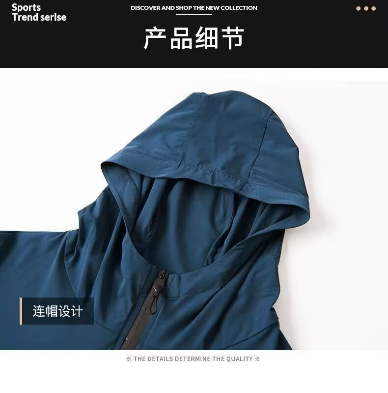Ice silk quick-drying sun protection clothing men's skin clothing men's summer loose thin hooded fishing outdoor jacket navy blue L
