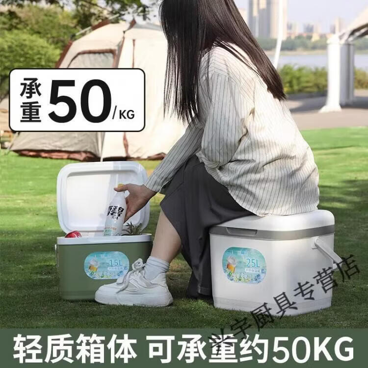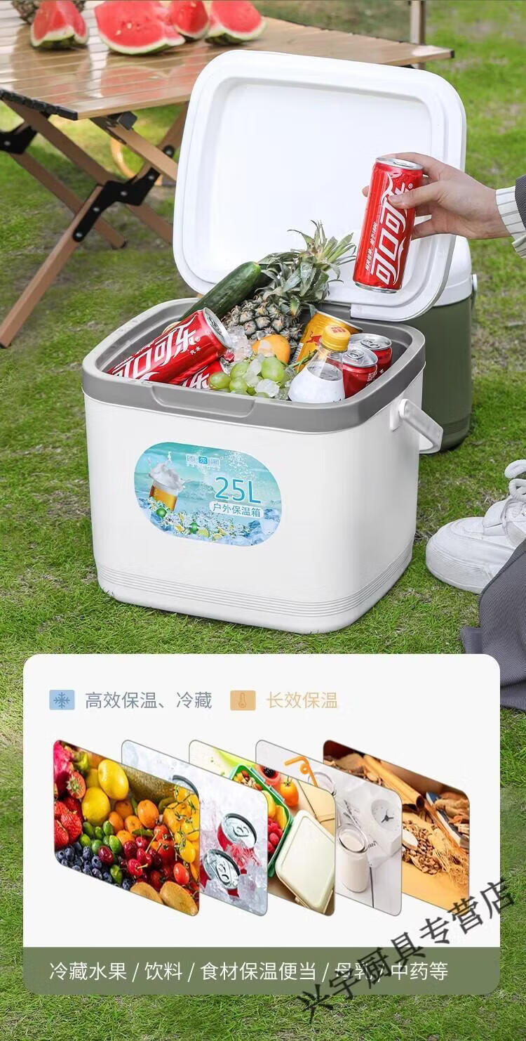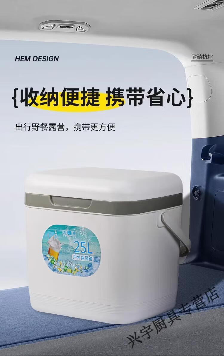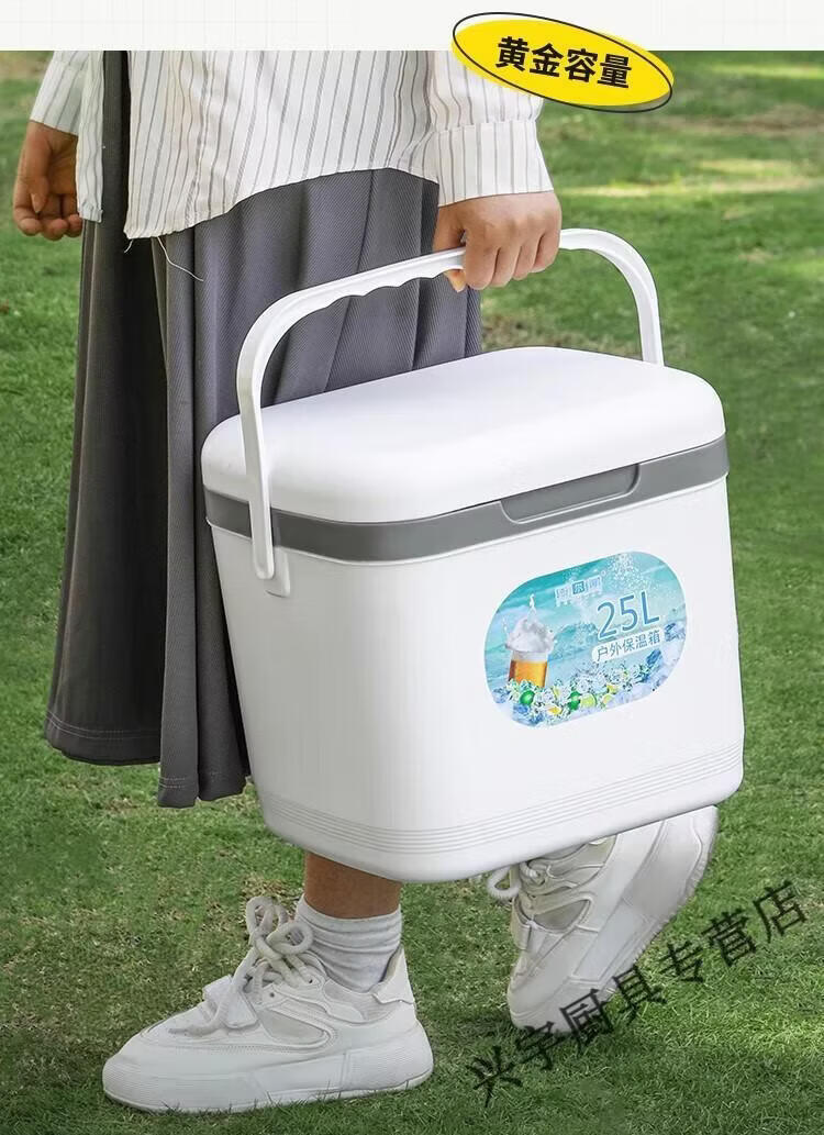 Beijingjie thickened insulated box commercial stall outdoor ice bucket fresh fishing fishing portable camping cooler household ice bucket blue free 10 ice bags + 2 ice plates 25L