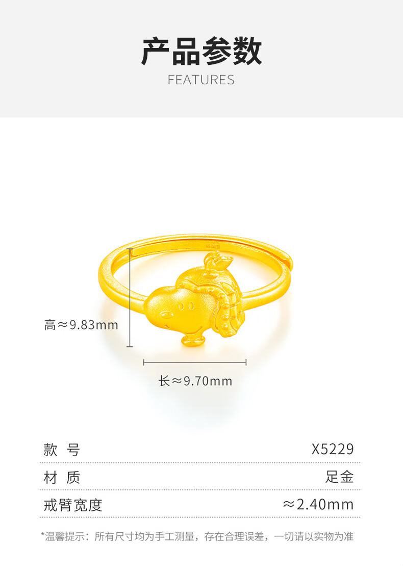 Xie Ruilin (TSL) gold ring SNOOPY Snoopy cultural travel series pure gold 5G technology offline same style X5229