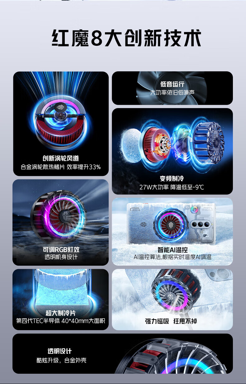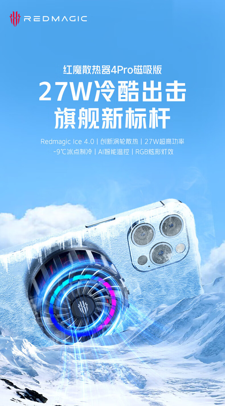 Nubia Red Magic Red Magic Radiator 4Pro Magnetic Mobile Phone Cooling Back Clip Semiconductor Cooling Fan 27W Tablet iPad Cooling Magic Device Suitable for Xiaomi Black Shark Apple OnePlus IQOO, etc. Radiator 4Pro