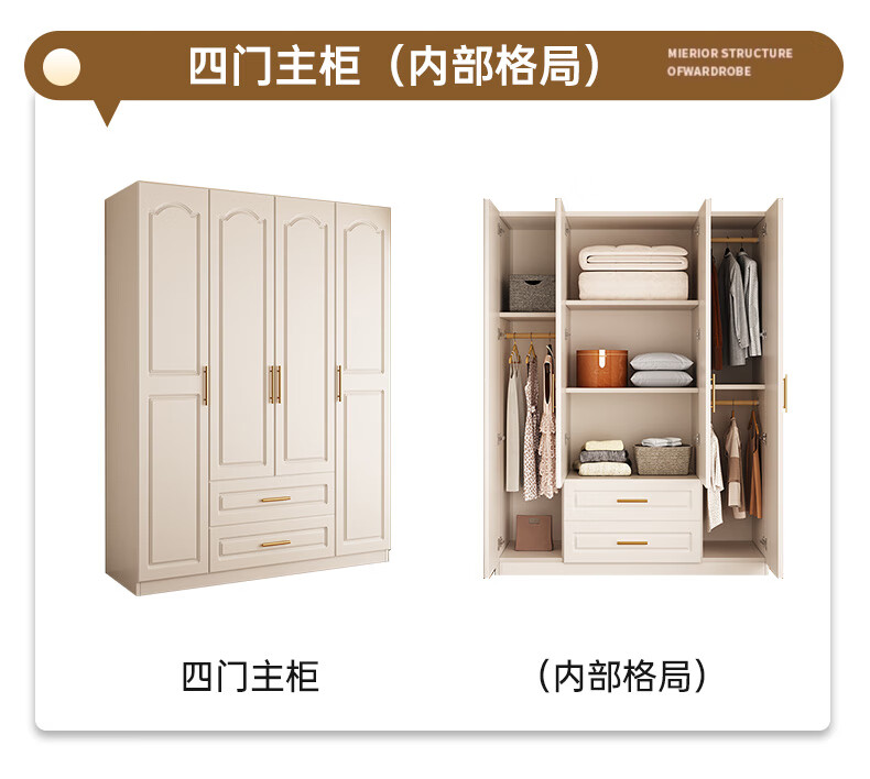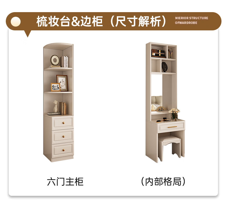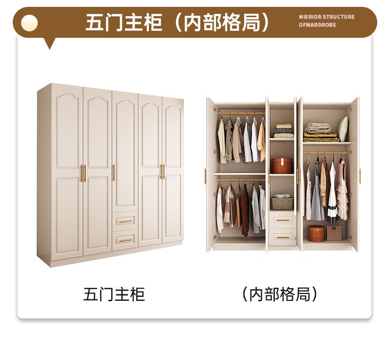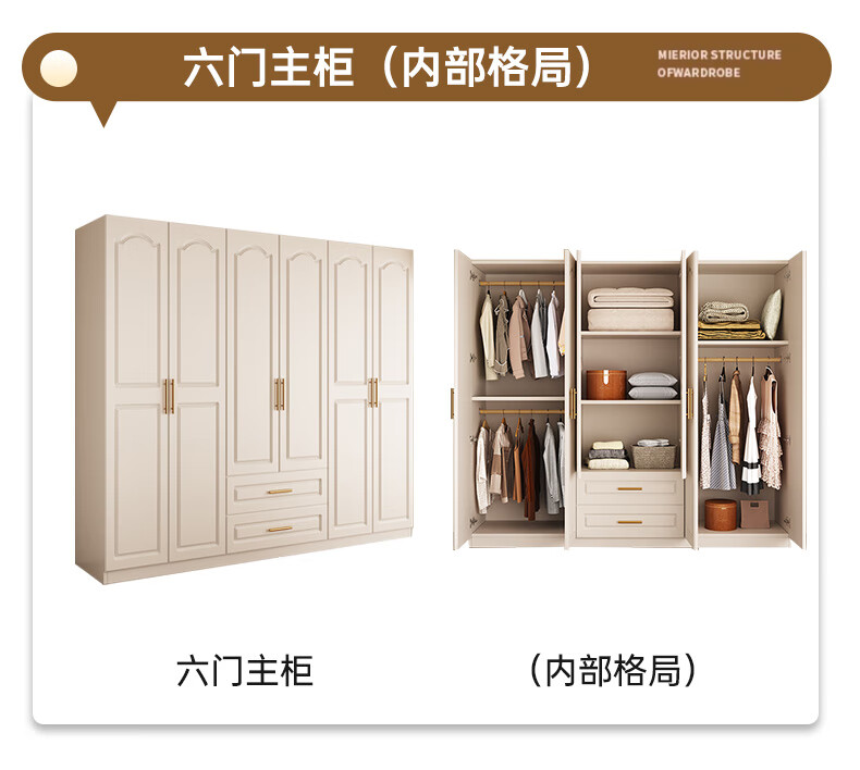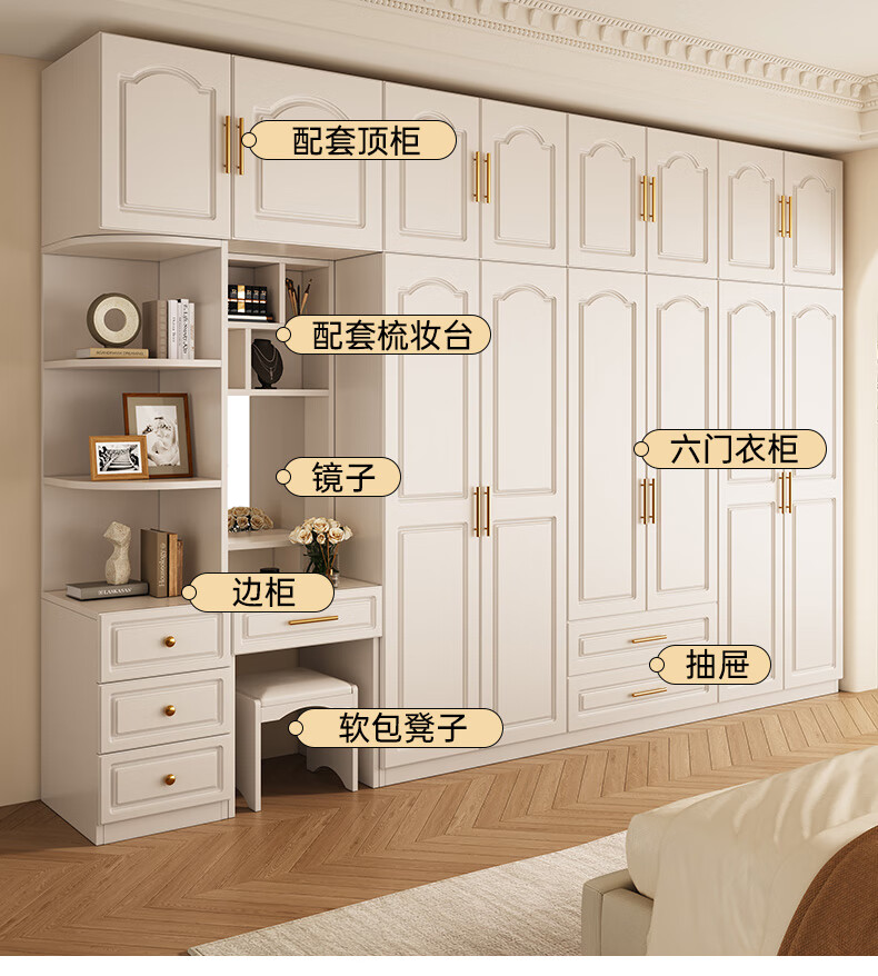 Yifansen Package Installation Solid Wood Wardrobe Home Bedroom Cream Style Storage Wardrobe Multi-Function Cabinet Large Wardrobe Length 240 Height 200 Depth 55 Main Cabinet Six Doors