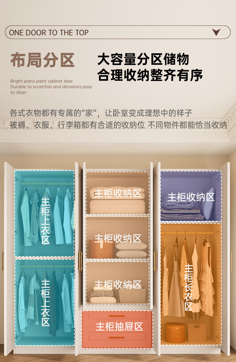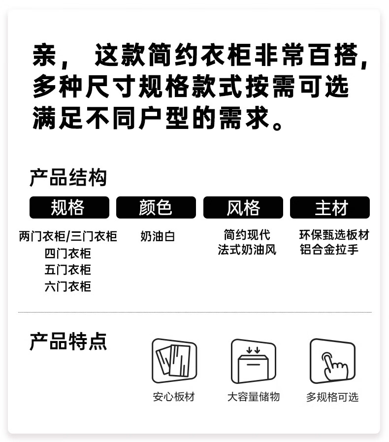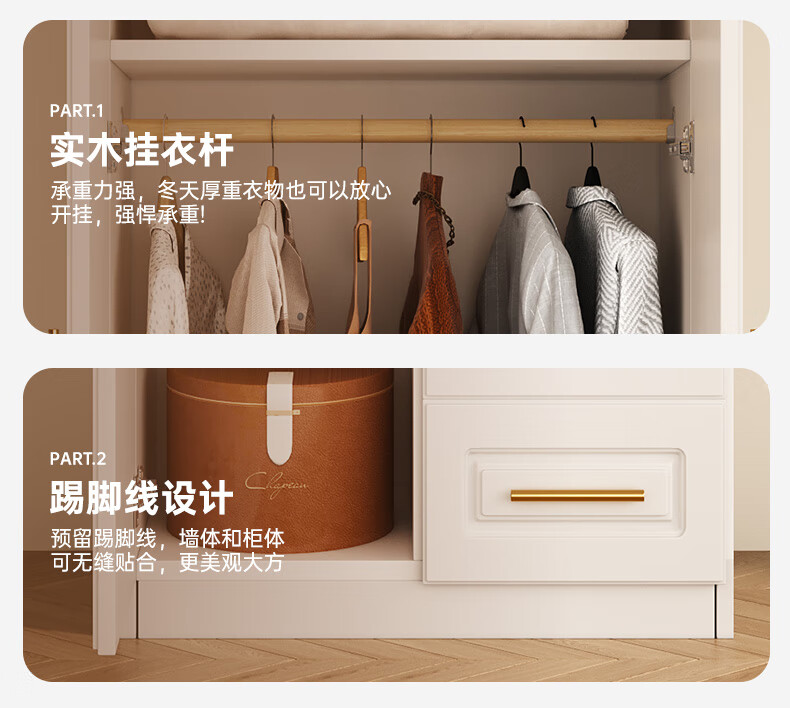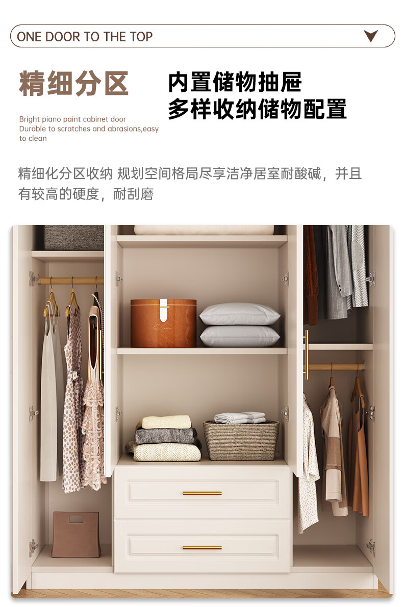 Yifansen Package Installation Solid Wood Wardrobe Home Bedroom Cream Style Storage Wardrobe Multi-Function Cabinet Large Wardrobe Length 240 Height 200 Depth 55 Main Cabinet Six Doors