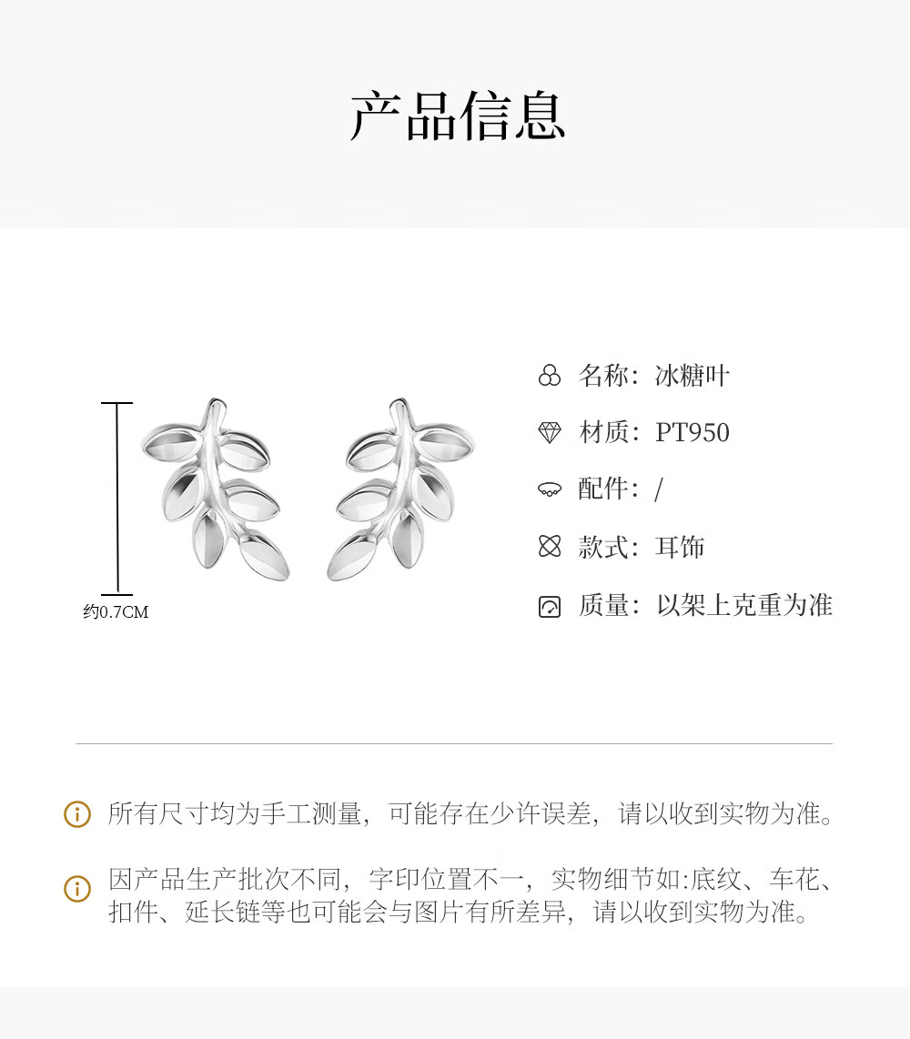 Ming brand jewelry platinum Pt950 platinum rock sugar leaf earrings gift for women BFH0113 platinum earrings about 1.14 grams