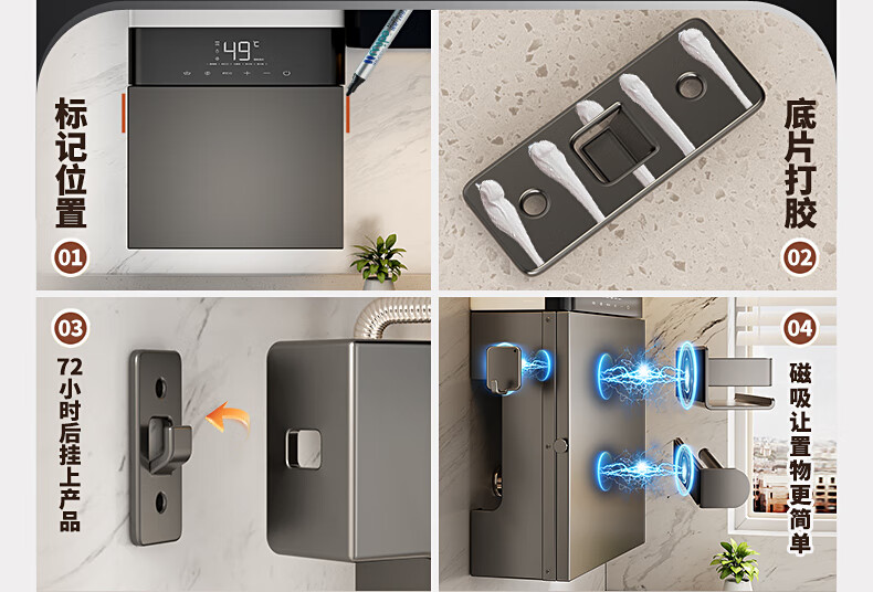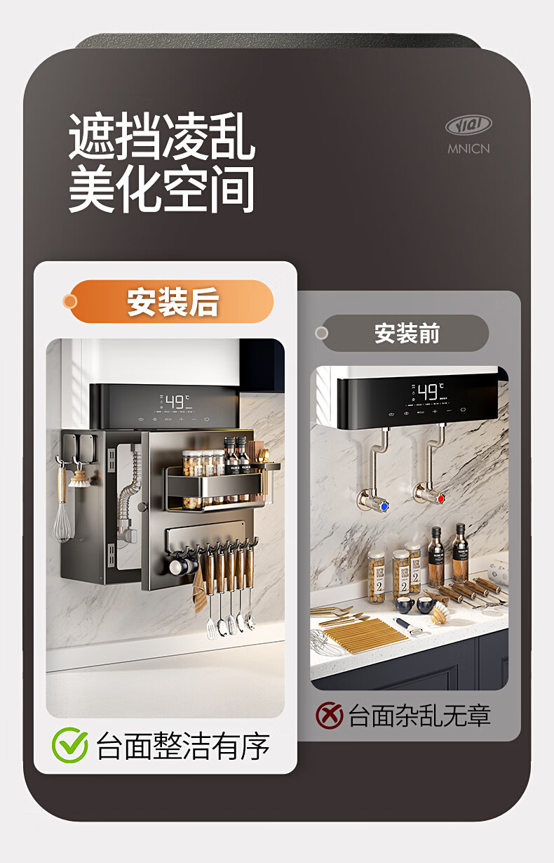 MNICN water heater shielding cover kitchen gas wall-mounted stove shielding decoration magnetic pipe hook hole board storage rack three-piece set A width 40*height 30*depth 17 gun gray
