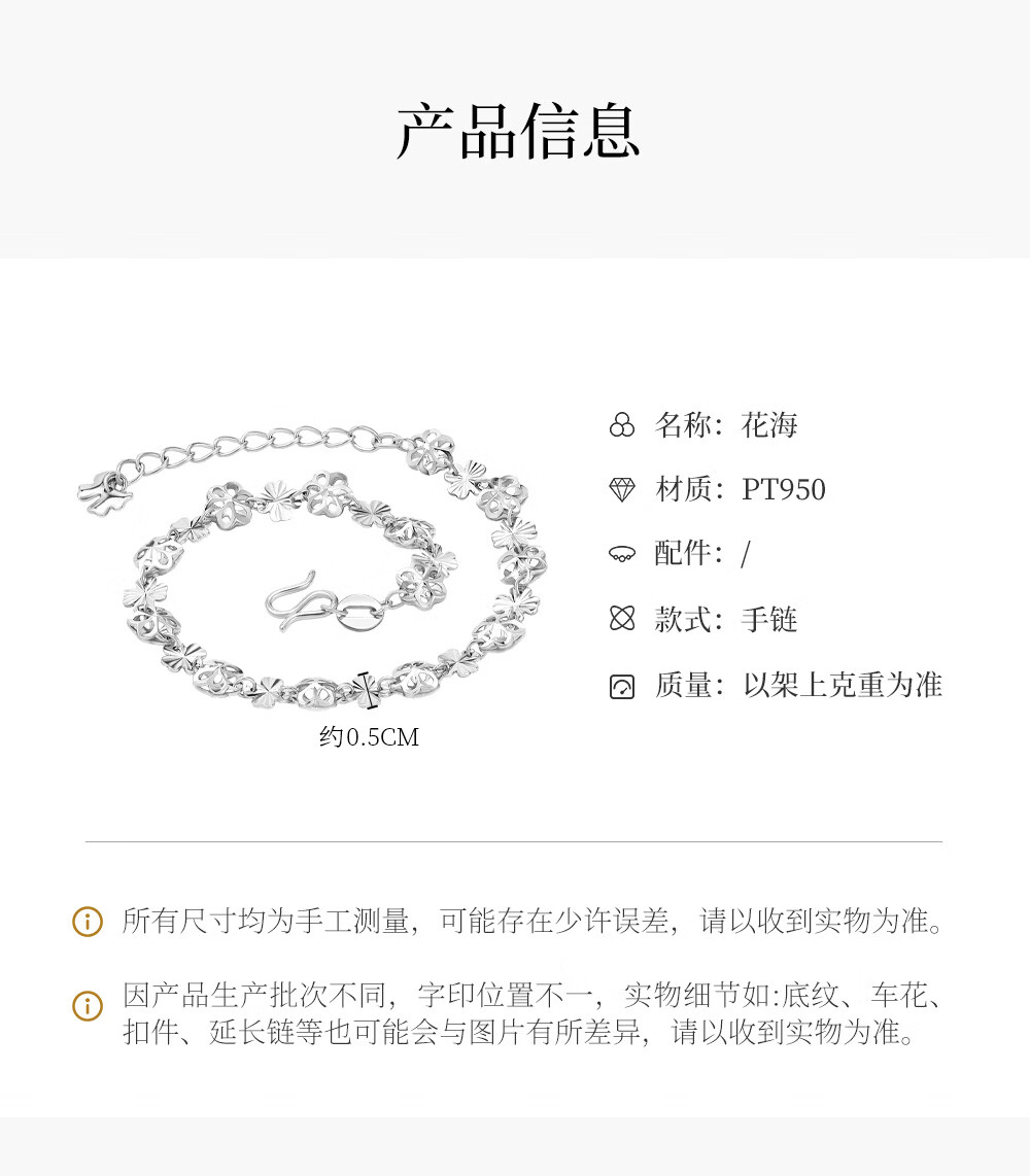 Ming brand jewelry platinum Pt950 platinum flower sea bracelet gift for women BFK0059 chain length about 15+3 cm about 4.01 grams