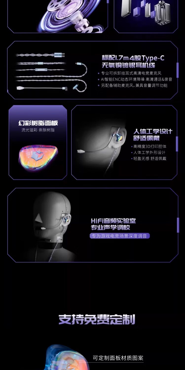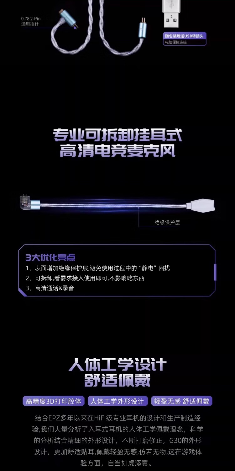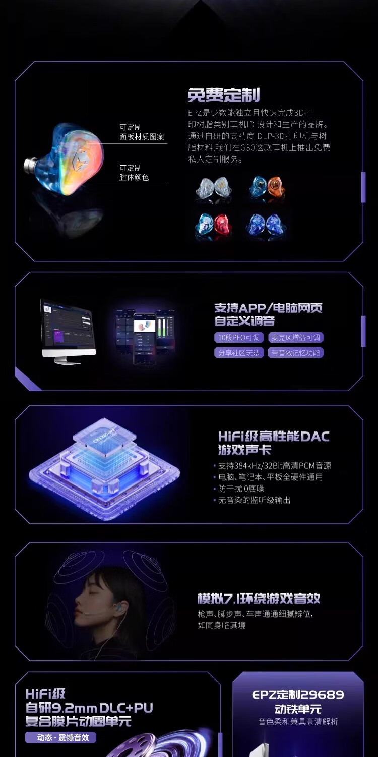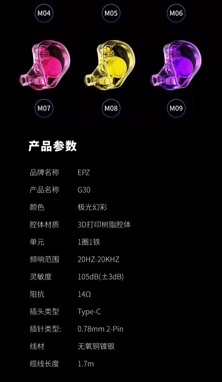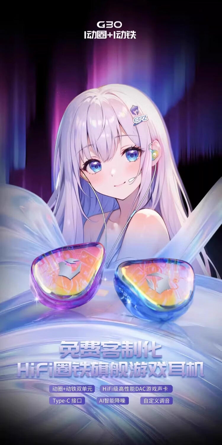 EPZ G30 free customization high-end gaming headphones in-ear wired HiFi music earplugs high-fidelity e-sports no delay sound card level chip professional competitive headset TYPE-C external microphone 1.7 meters supports EQ
