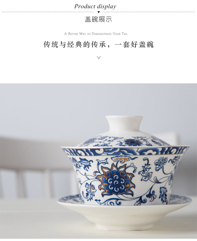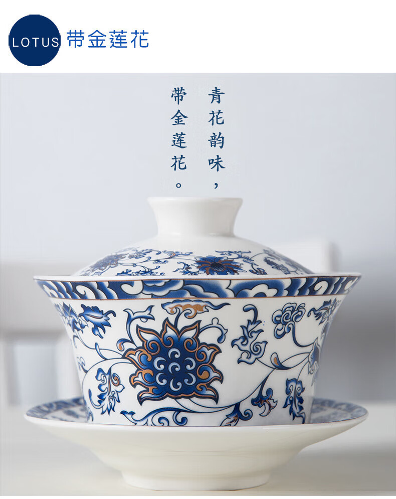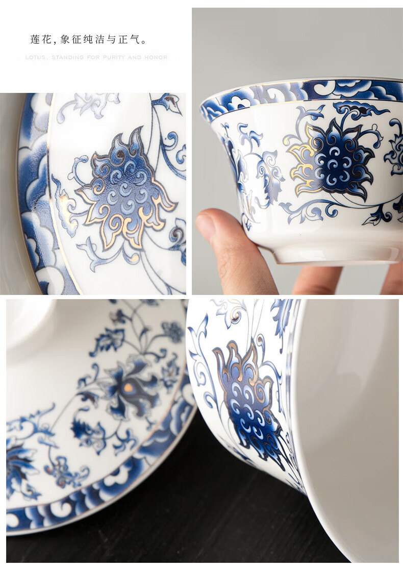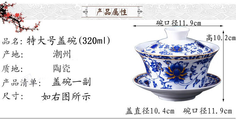 OIMG tureen tea set teacup extra large three-cai eight-treasure tea set for one person high-end 320ml ml 5 three fort special tureen tea set extra large-320ml