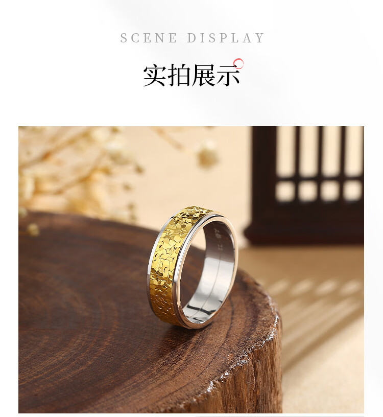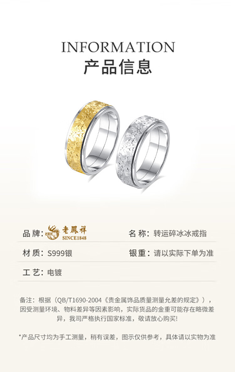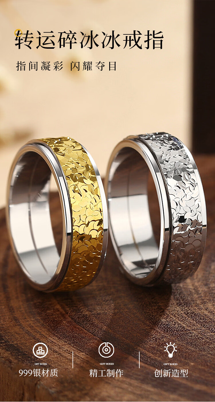 Lao Fengxiang pure silver transfer crushed ice ring for men and women, fashionable and simple single ring, high-end anniversary gift for girlfriend and wife, today/next day delivery *Platinum - transfer crushed ice ring*No. 18