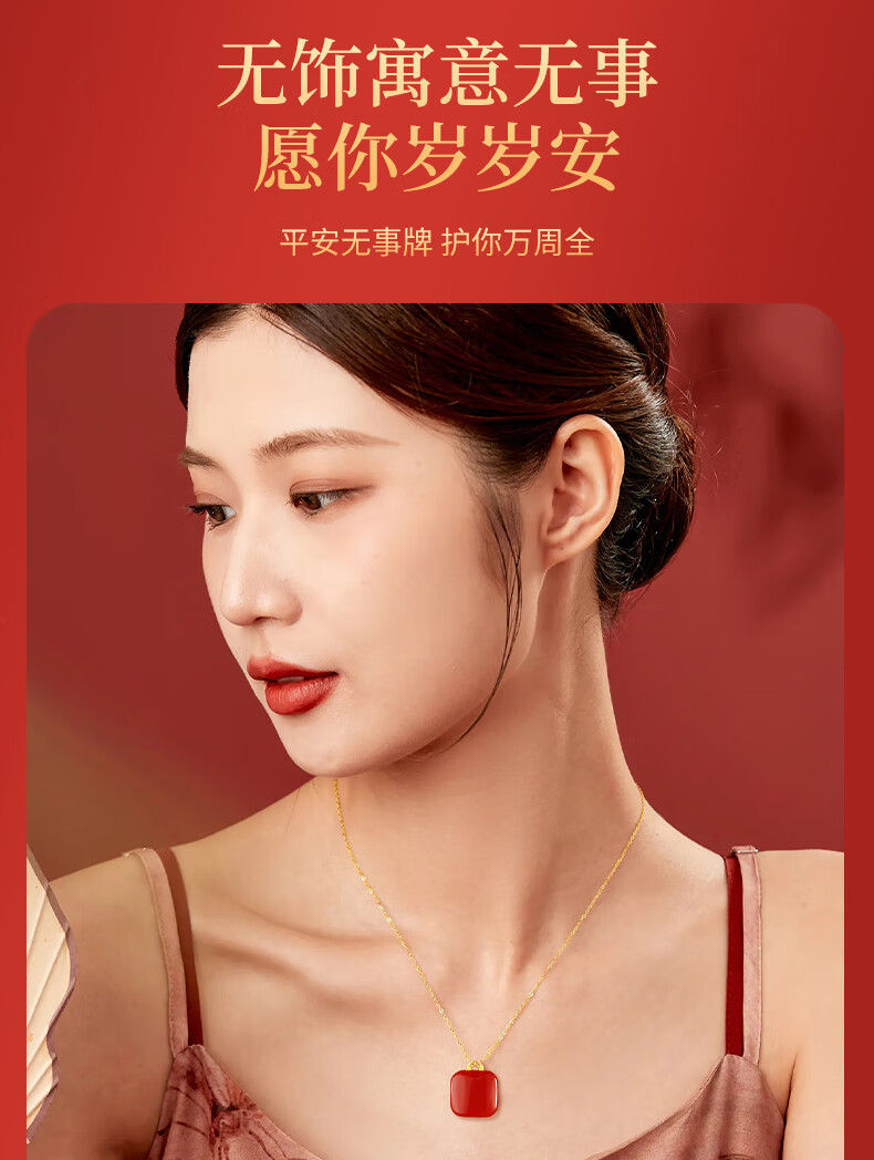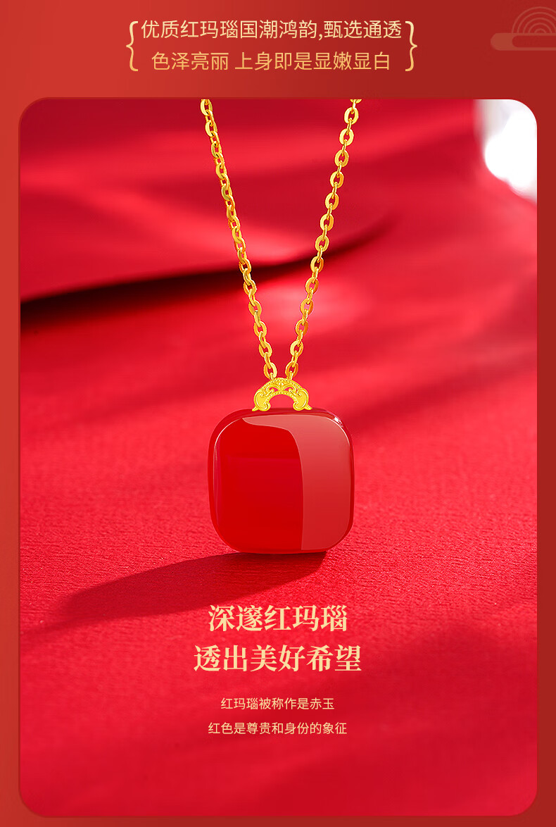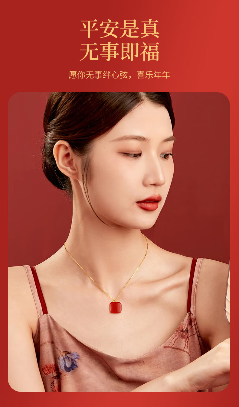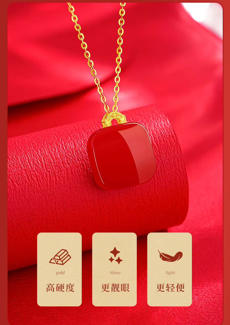 China Gold Sugar Cube Wushi Brand 18K Gold Necklace Women 2025 New Red Agate Birthday Gift for Girlfriend Wedding Anniversary 18k Red Agate Wushi Brand Pendant Free Silver Chain