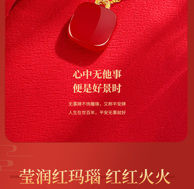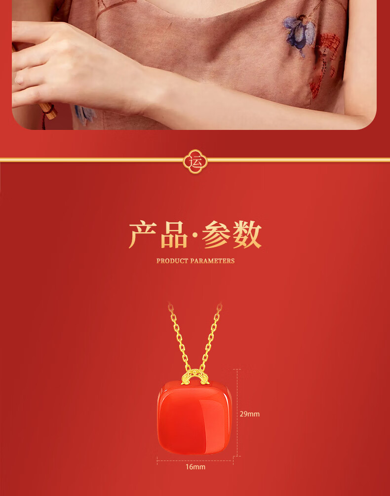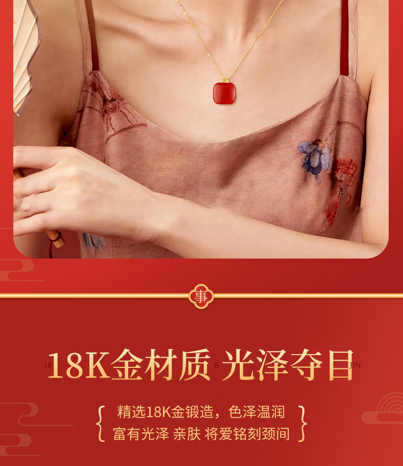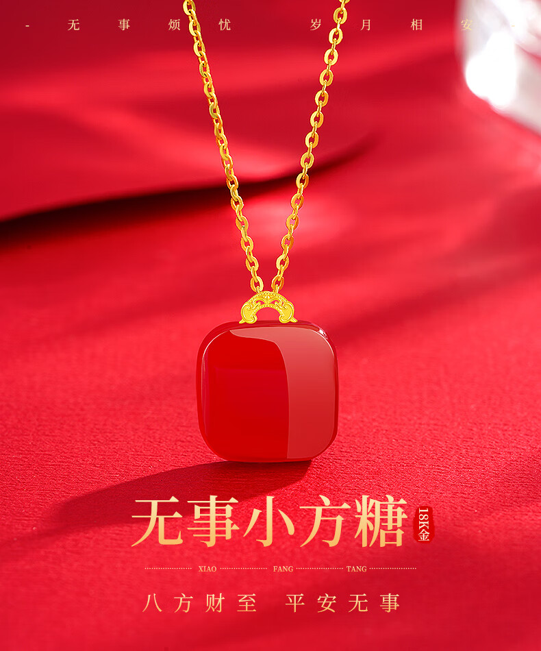 China Gold Sugar Cube Wushi Brand 18K Gold Necklace Women 2025 New Red Agate Birthday Gift for Girlfriend Wedding Anniversary 18k Red Agate Wushi Brand Pendant Free Silver Chain