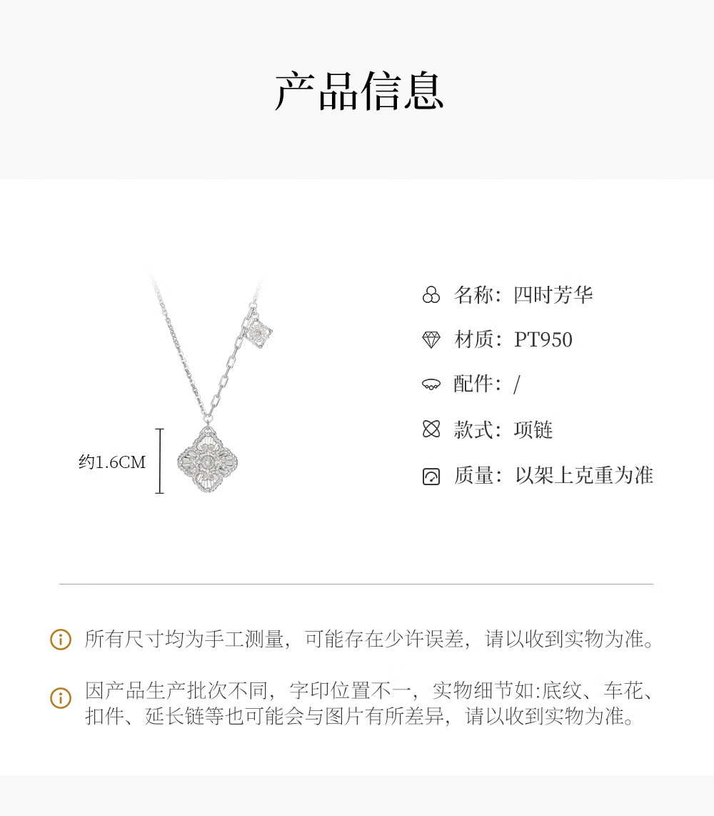 Ming brand jewelry platinum Pt950 white gold four seasons youth necklace gift for women BFR0140 chain length about 40+2.5+2.5 cm about 6.54 grams