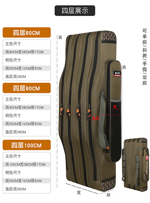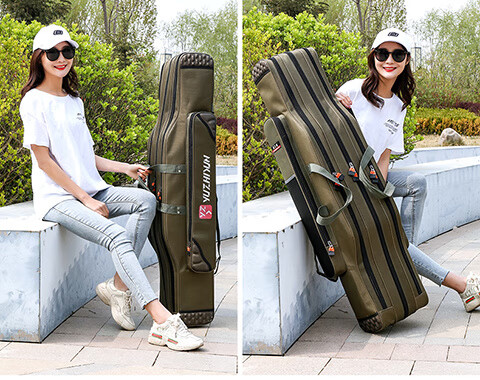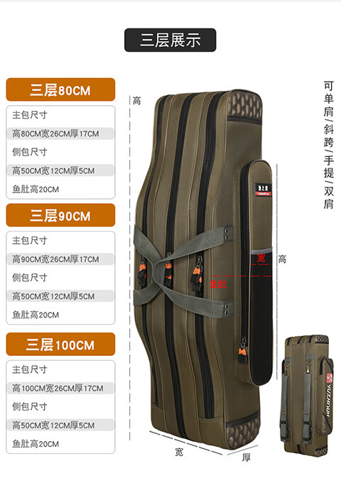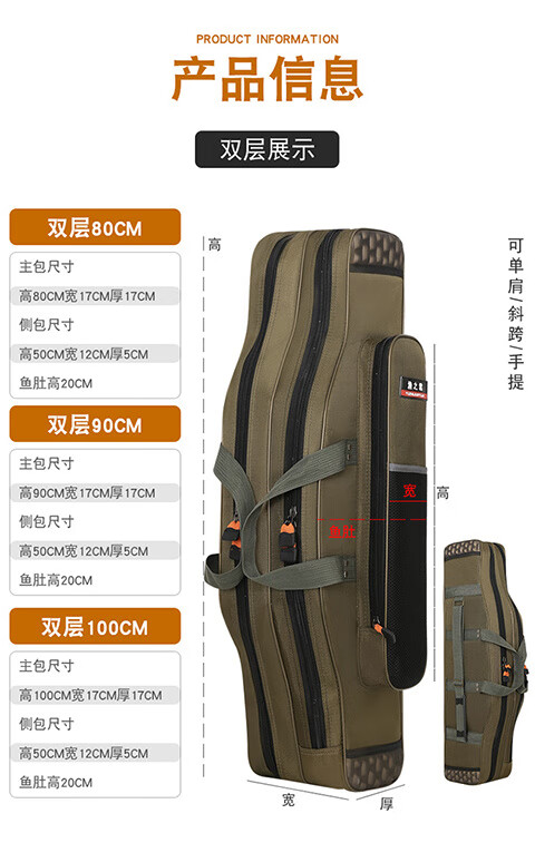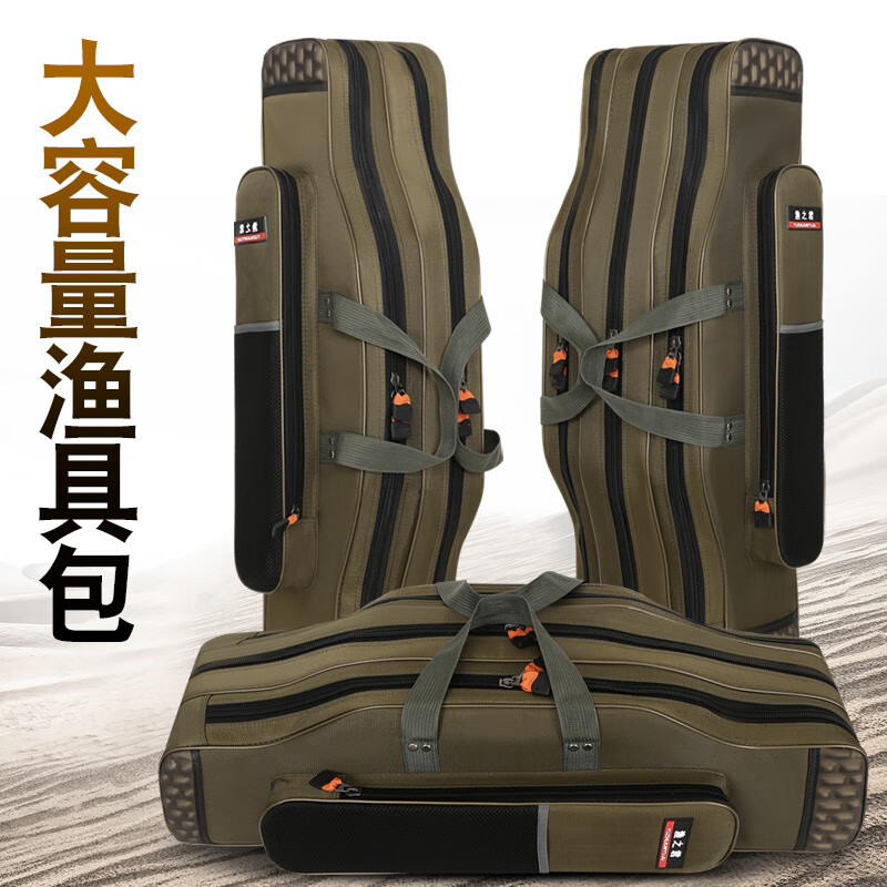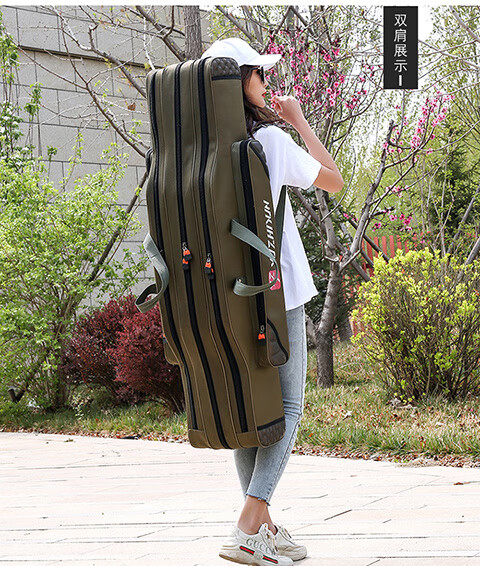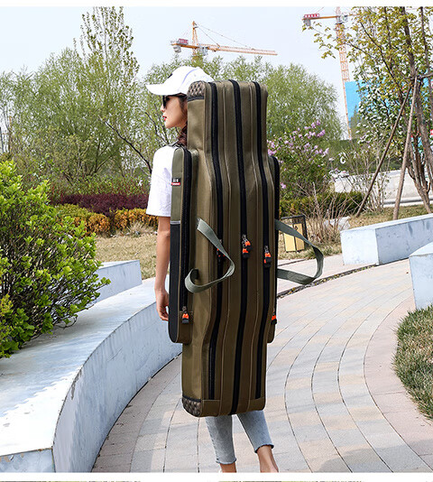 Chaosihui New Big Belly Sea Rod Bag Fishing Rod Bag Hand Rod Fishing Tackle Bag Shoulder Waterproof Large Capacity Rockfishing Bag Luya Fishing Bag Single Layer Canvas Big Belly 80cm