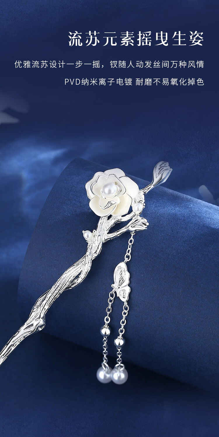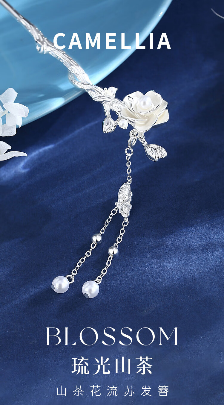 Gin Chie’s camellia hairpin for ladies, antique Chinese style hairpin with tassels, Valentine’s Day birthday gift for girlfriend, camellia hairpin with fragrance tablets + seven-warehouse delivery/next-day delivery, 1-piece set