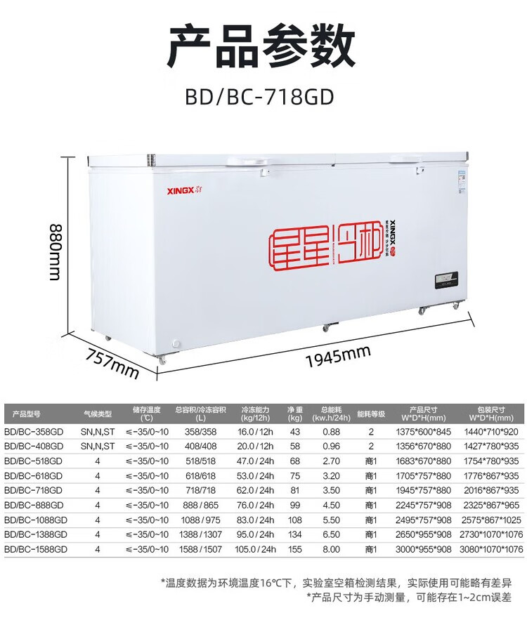 Xingx (XINGX) 718 liter refrigerator freezer commercial large-capacity refrigeration freezer horizontal fresh-keeping cabinet 518 liter quick-freezing refrigerator 401A length 1275 width 670 height 880