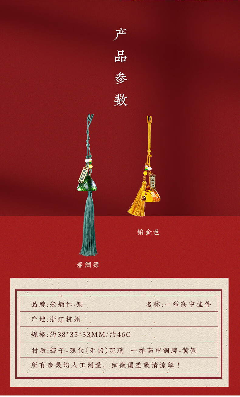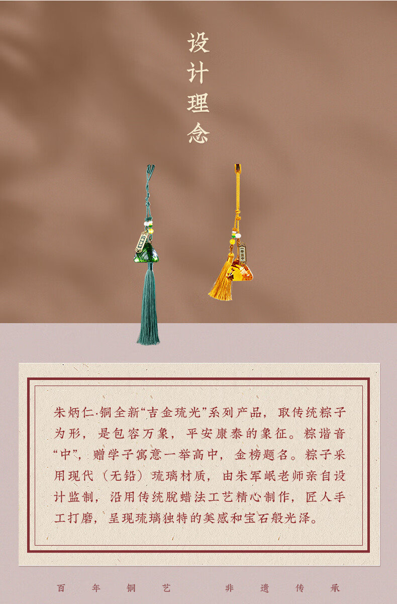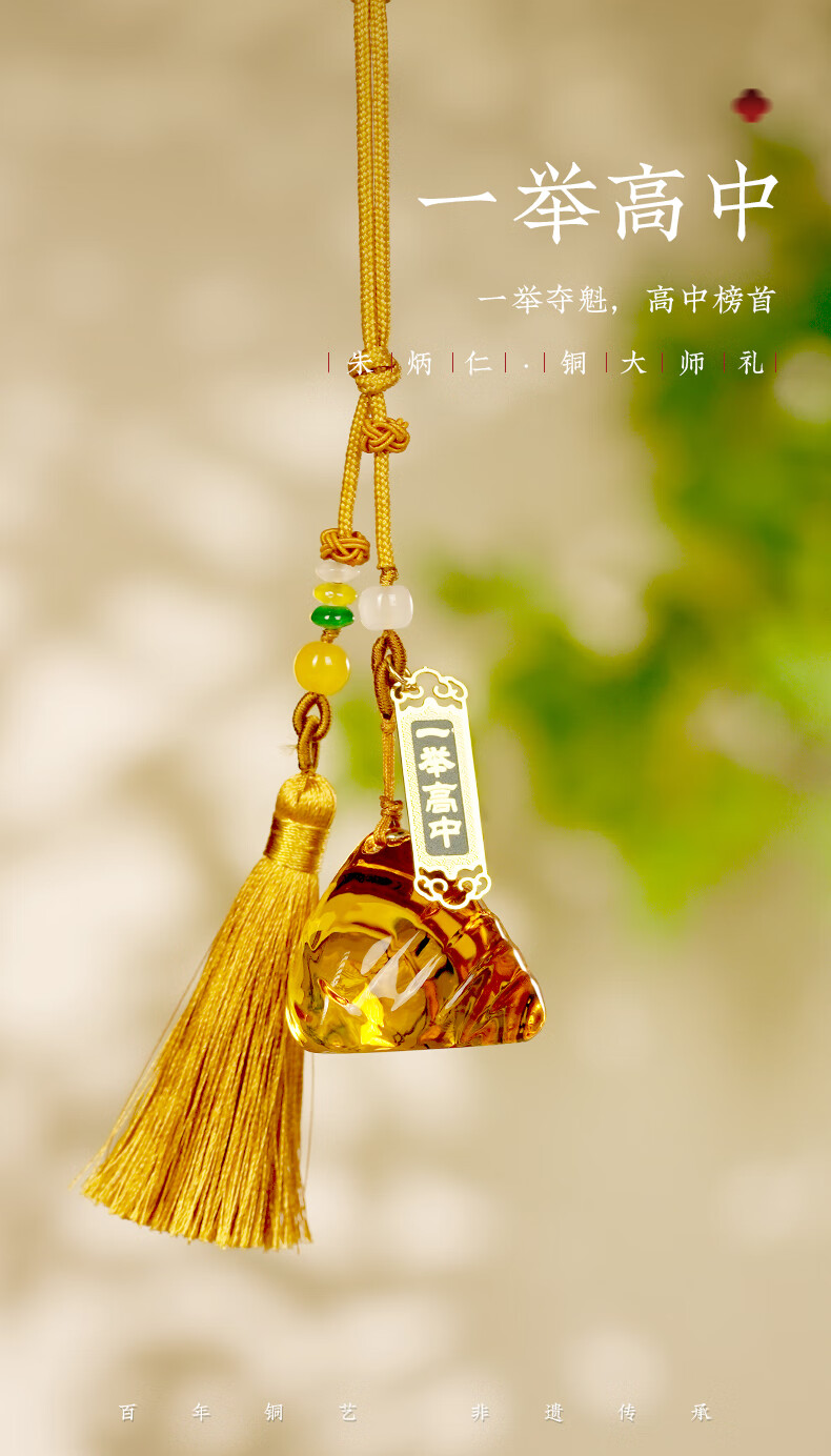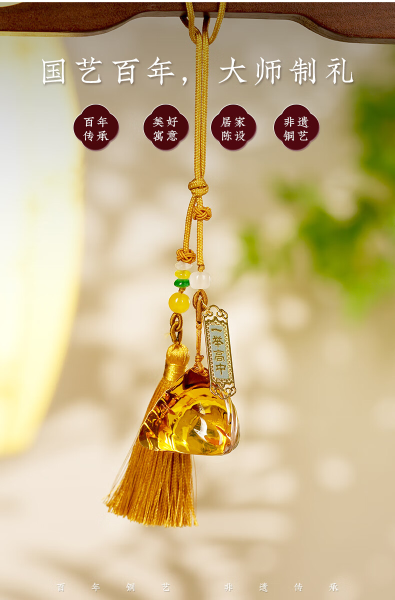 Zhu Bingren Copper Yishu High School Pendant Home Accessories Modern Glass Zongzi Artwork Dragon Boat Festival Gate Hanging Gift Yishu High School Pendant (Platinum Gold)