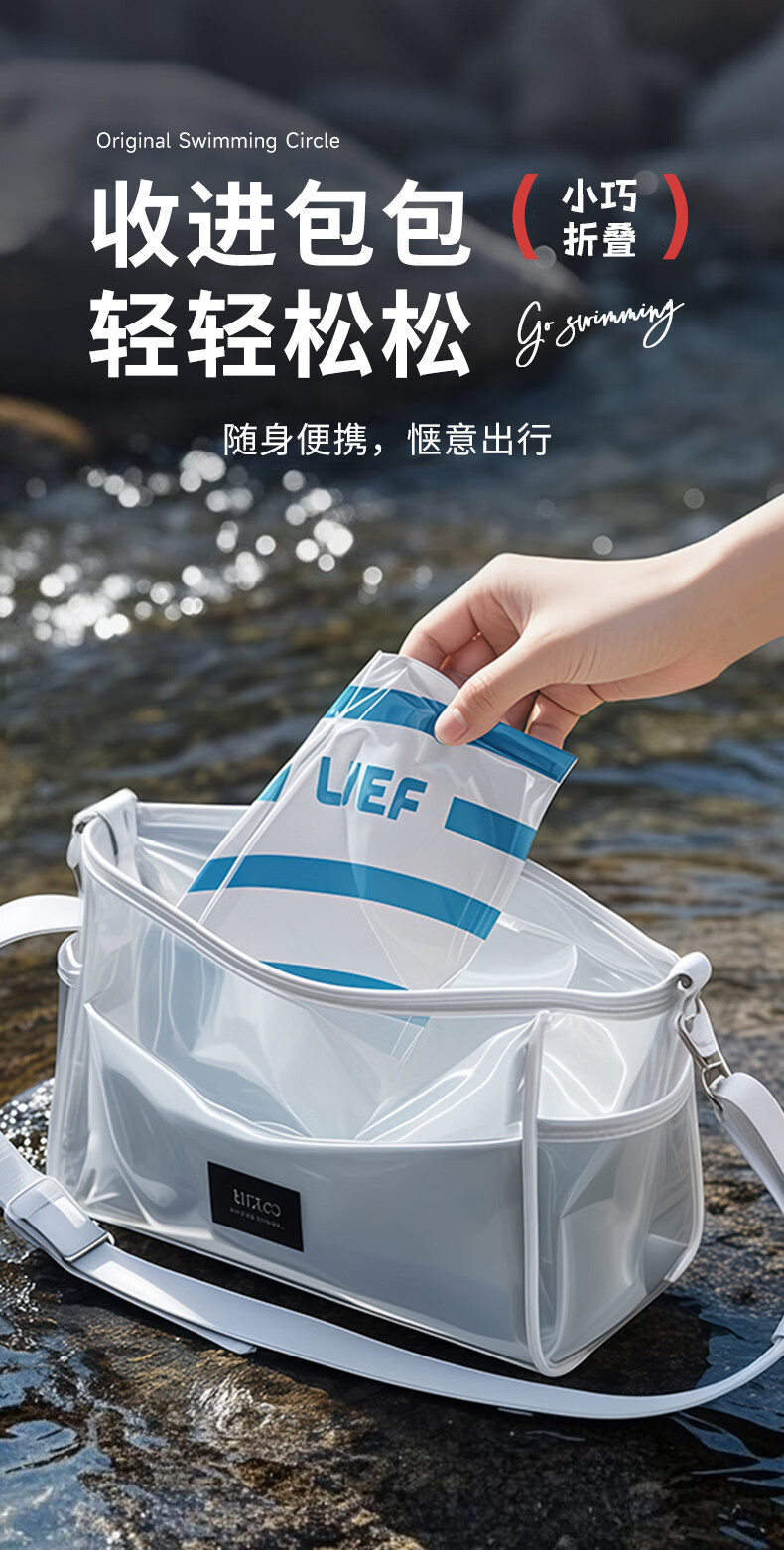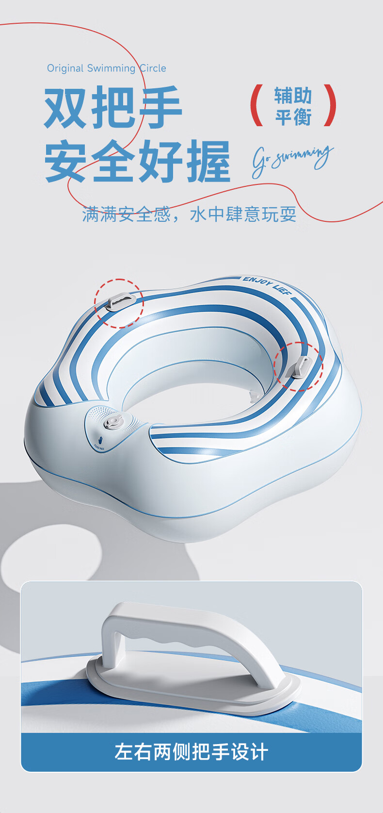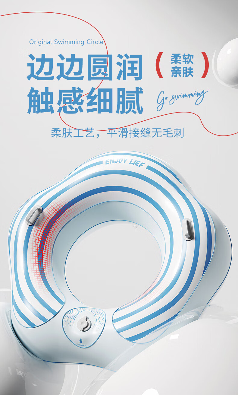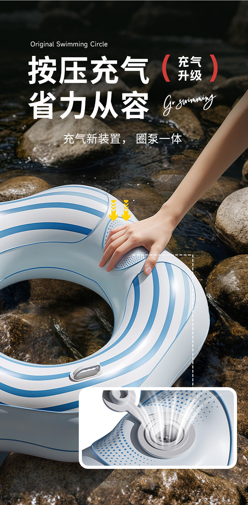 Outer color swimming ring adult press inflatable swimming ring thickened PVC simple ins style inflatable swimming ring children's floating ring armpit ring Huayang 80 laps sea blue coconut 80-120 Jin Jin equals 0.5 kg