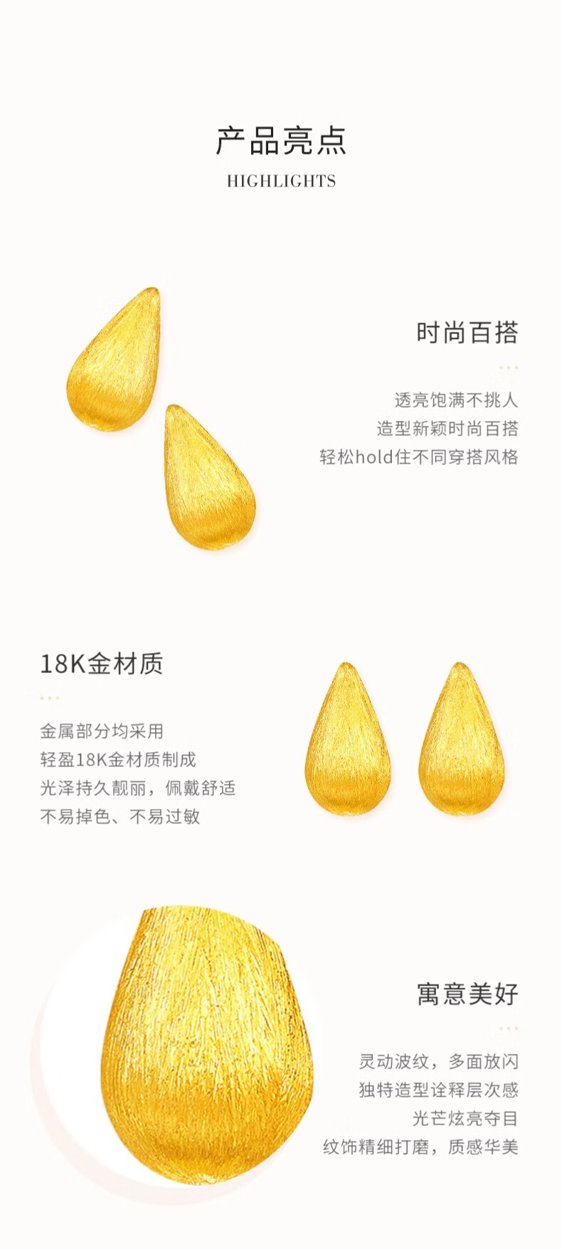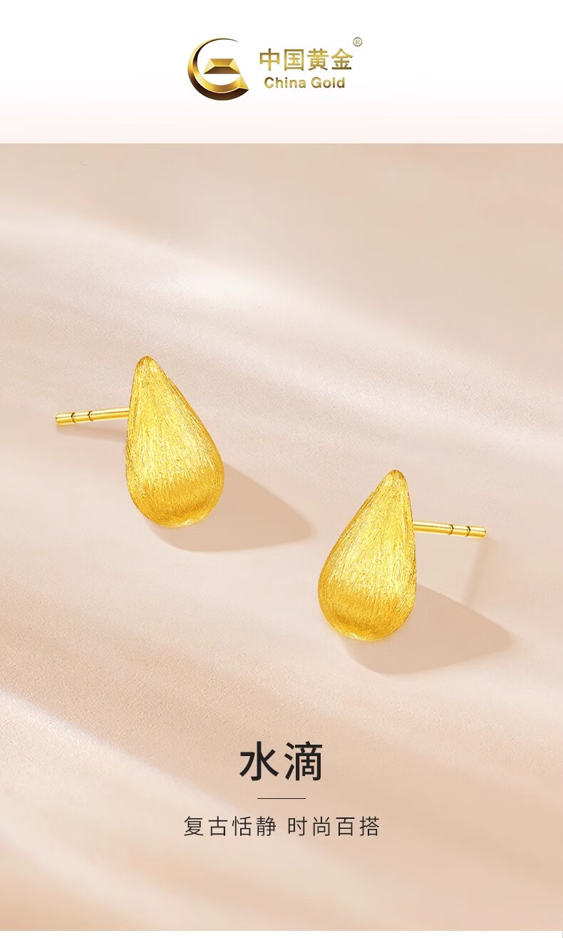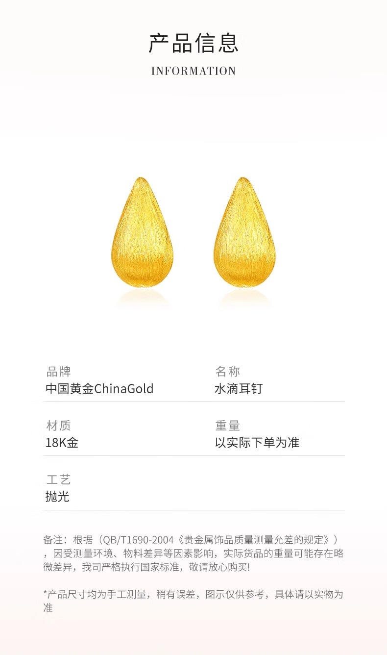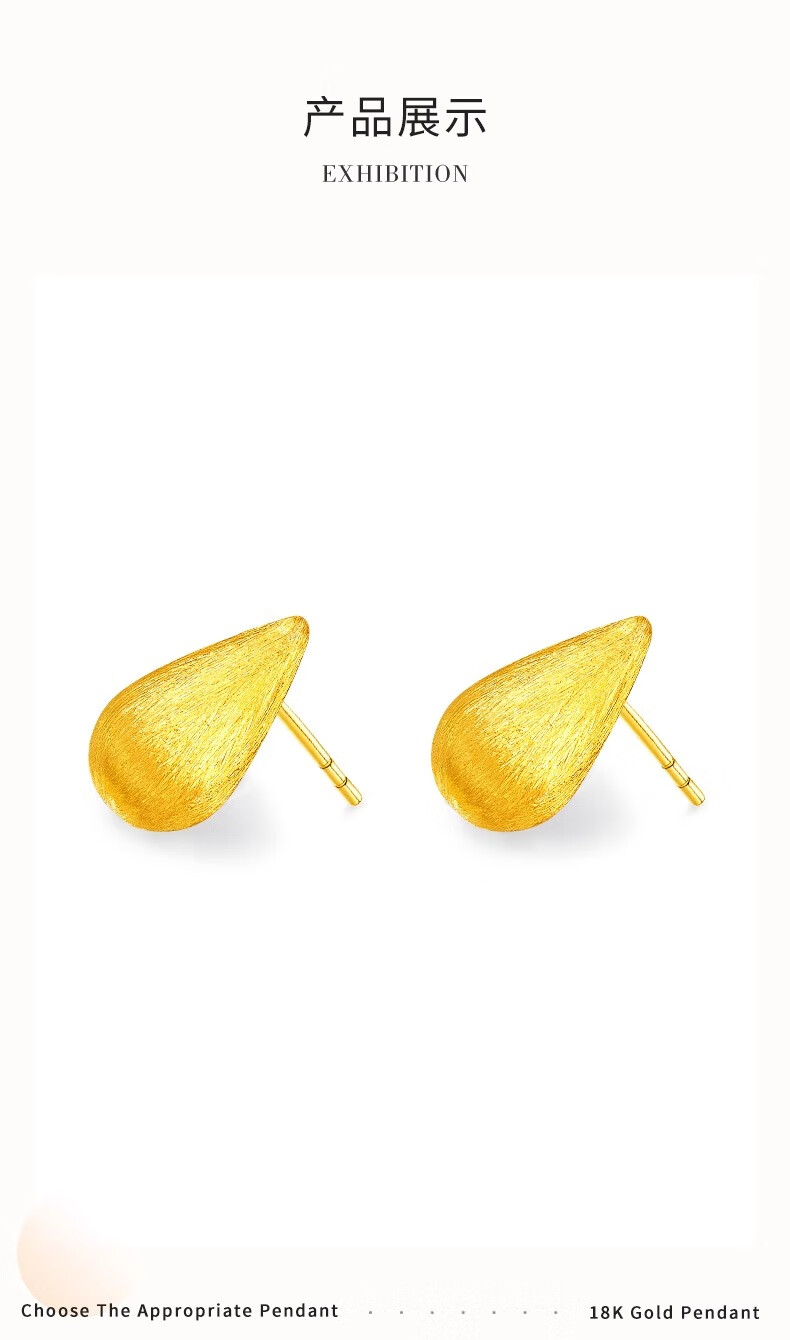 CHINA GOLD 18K gold water drop earrings, earrings, ear buckles, versatile simple earrings, Valentine's Day birthday gift for girlfriend and wife, 18K gold water drop earrings - about 0.3g, one pair