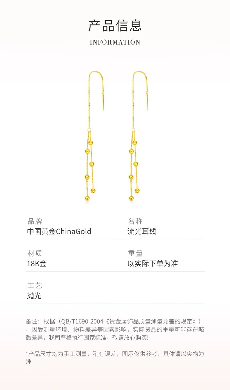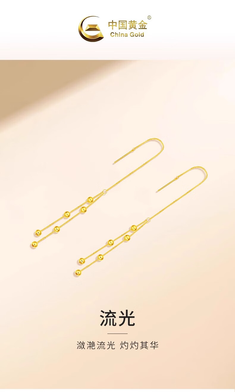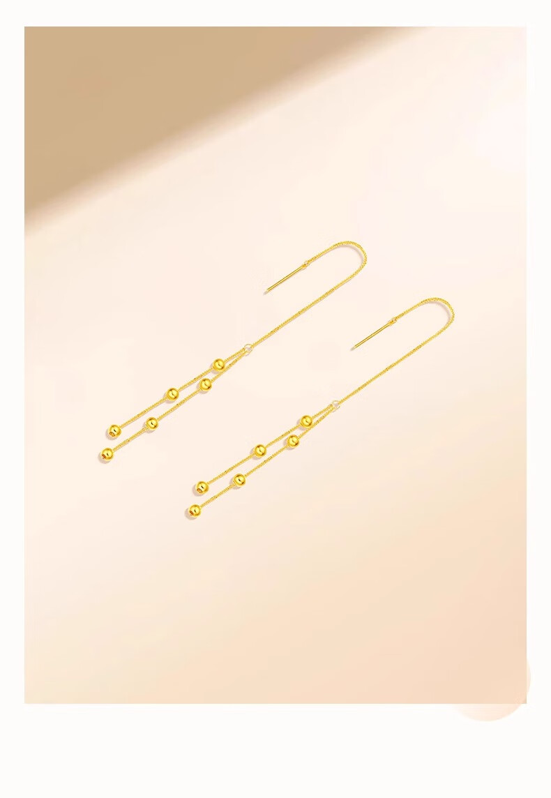 China Gold (CHINA GOLD) 18K gold earrings, ear hooks, earrings, round beads, tassel earrings, Valentine's Day birthday gifts for girlfriends and wives, 18K gold tassels, earrings - about 0.5g, one pair