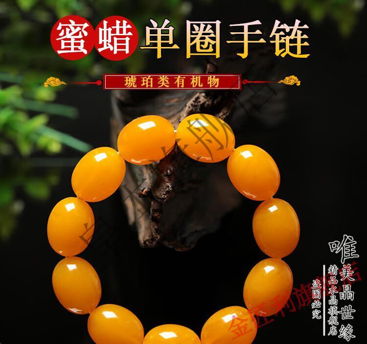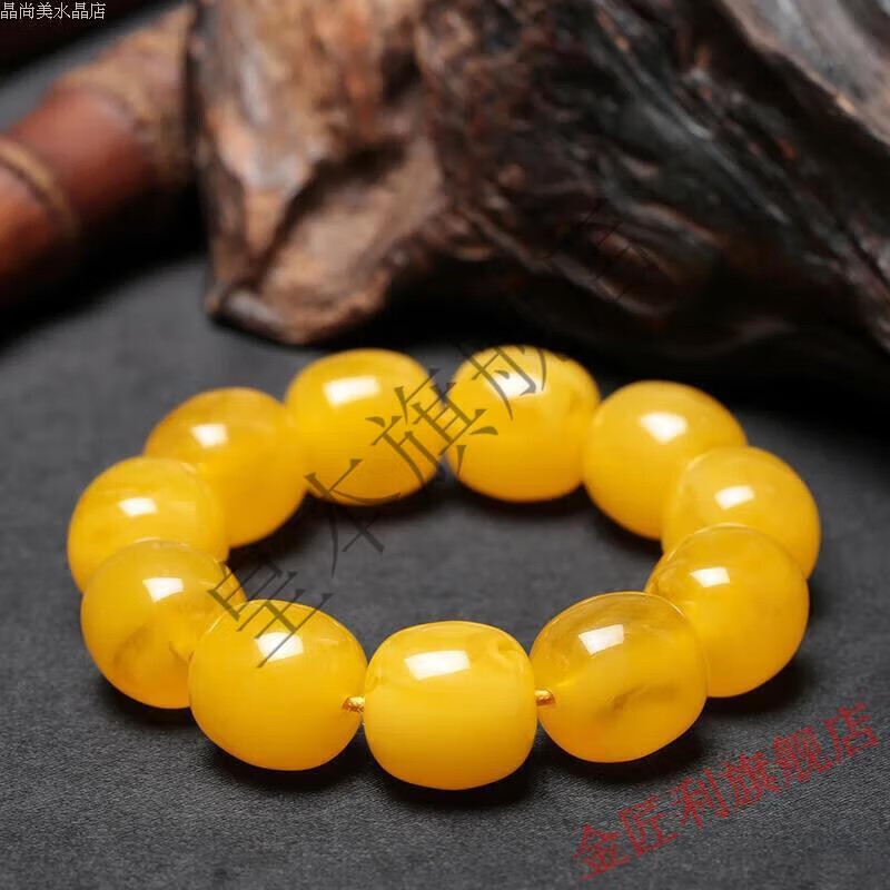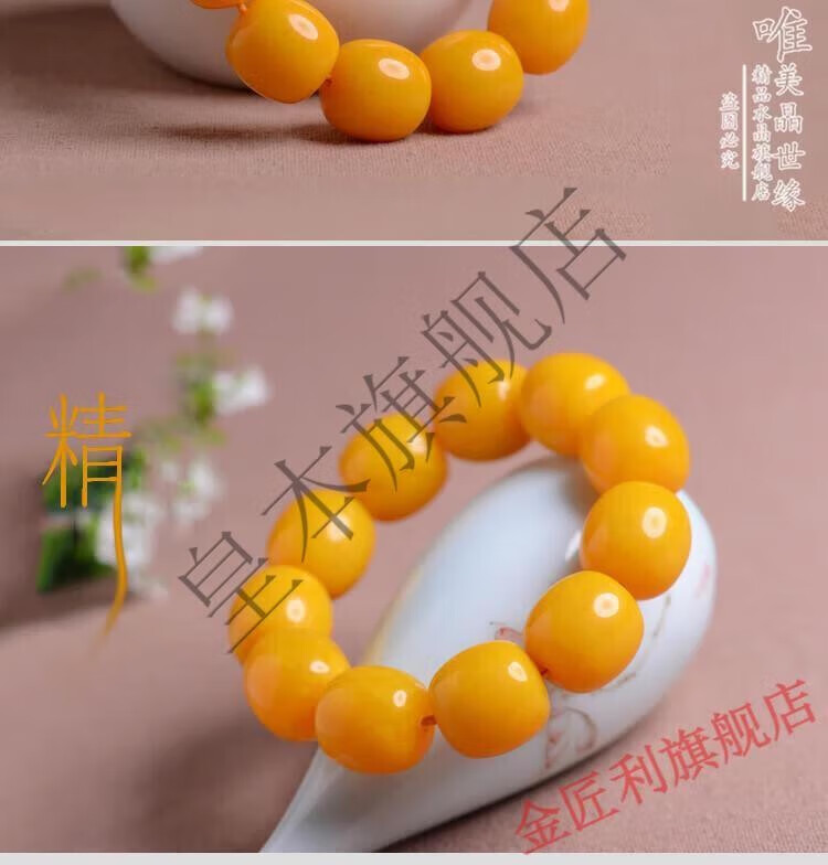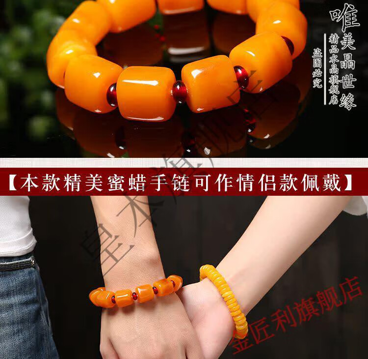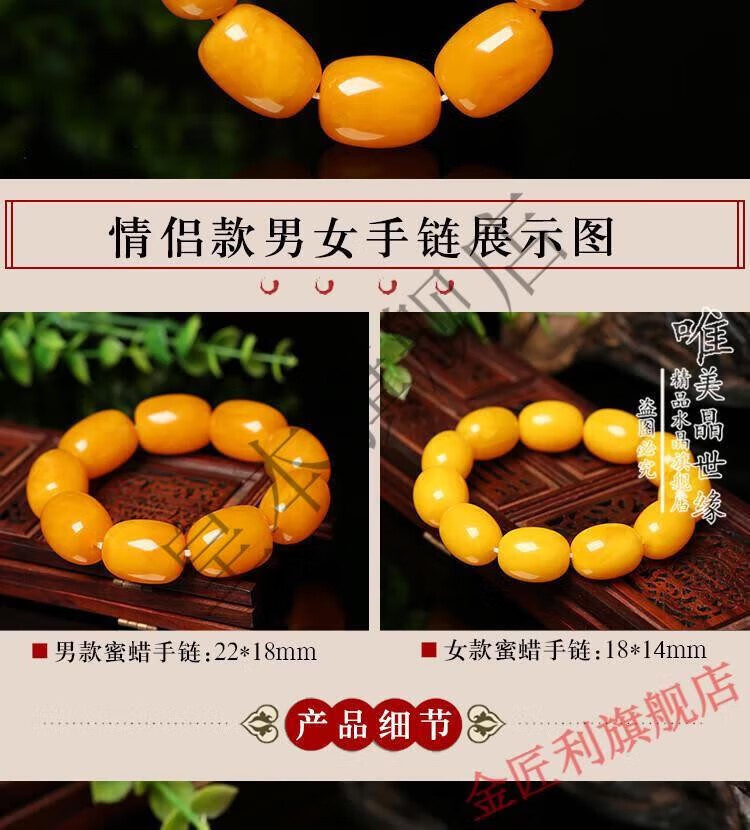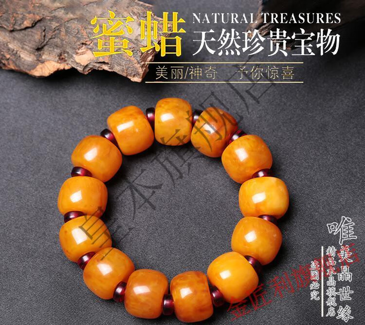 Miaojufu Polish Old Beeswax Bracelet Men's Original Chicken Oil Yellow Amber Bracelet Women's Barrel Beads with Certificate Style 2 (Women's Barrel Beads) 0 Carat Bead Ruler