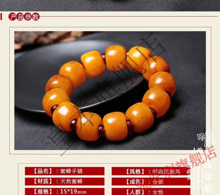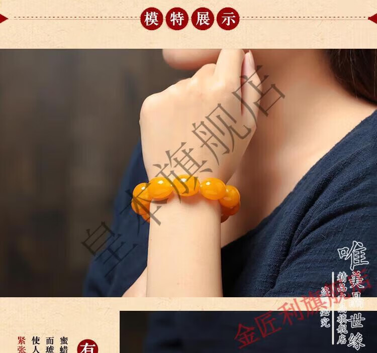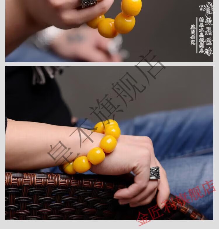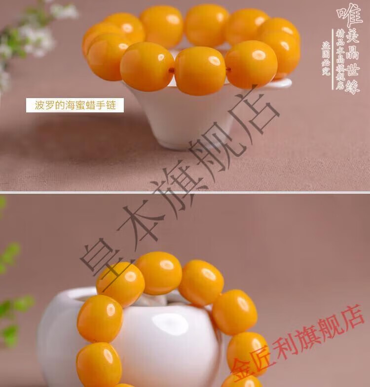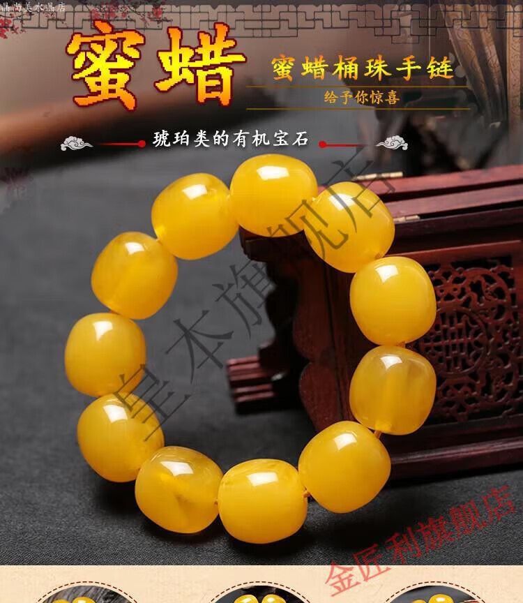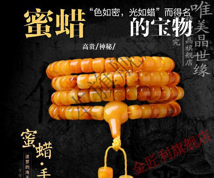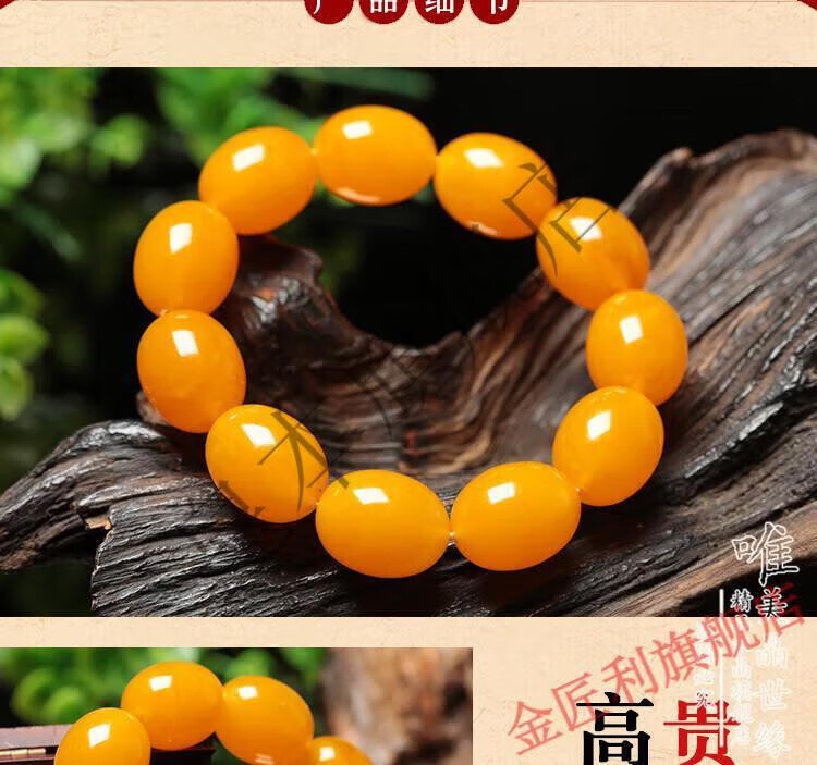 Miaojufu Polish Old Beeswax Bracelet Men's Original Chicken Oil Yellow Amber Bracelet Women's Barrel Beads with Certificate Style 2 (Women's Barrel Beads) 0 Carat Bead Ruler