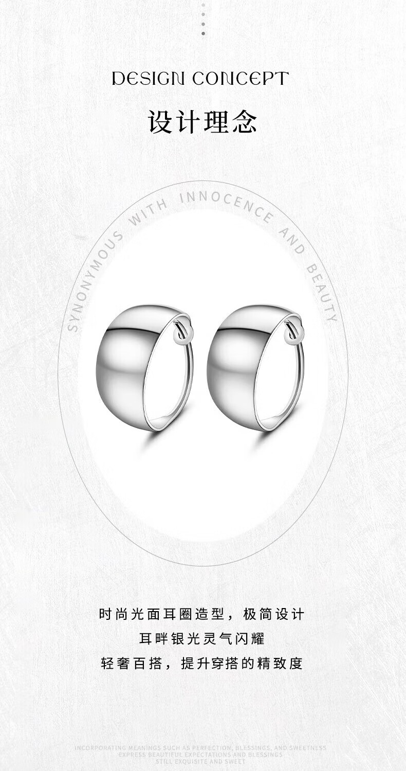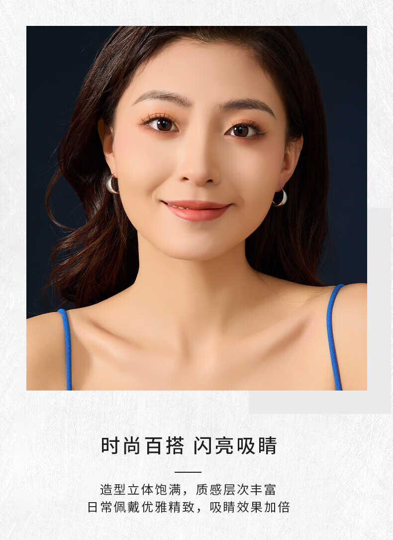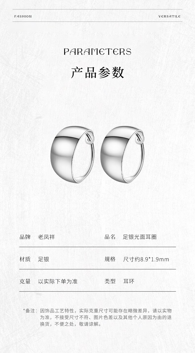 Lao Fengxiang silver earrings for women, glossy pure silver earrings and earrings, a birthday gift for mother, a gift for wife and girlfriend, silver jewelry, a pair of pure silver earrings (approximately 2.5g)