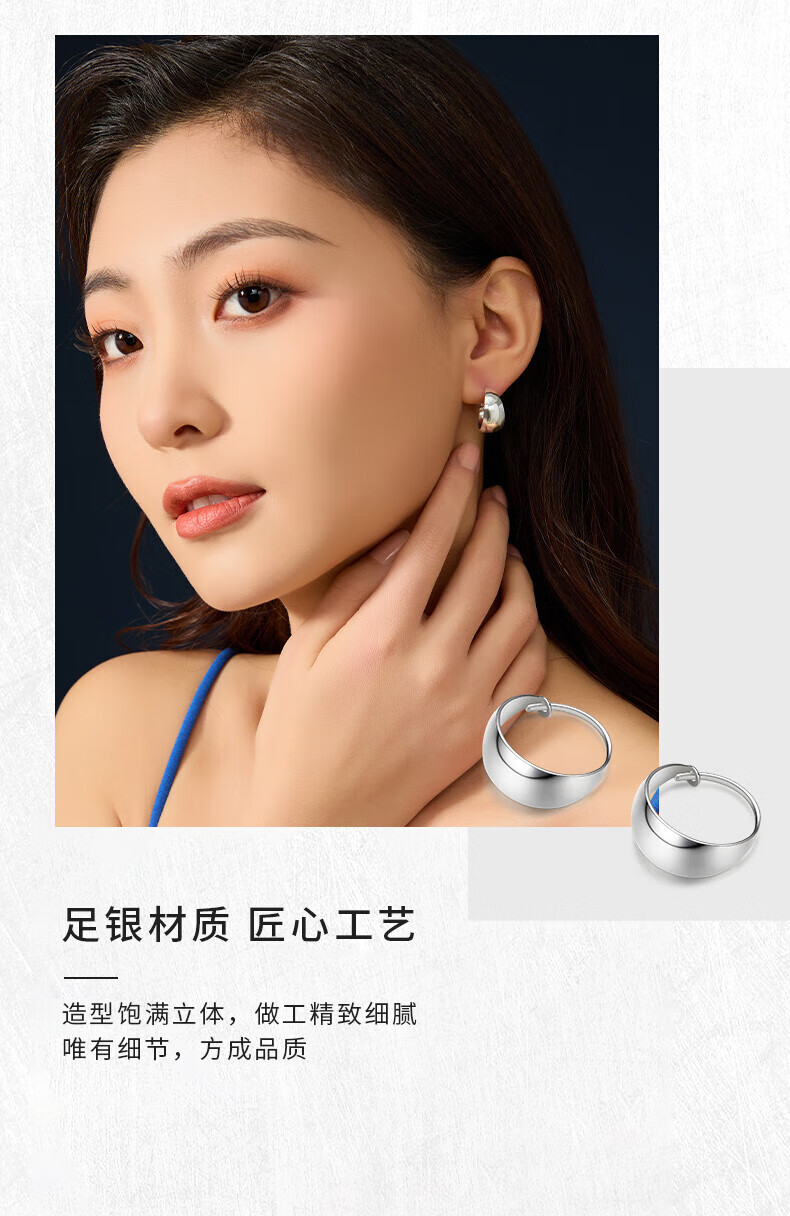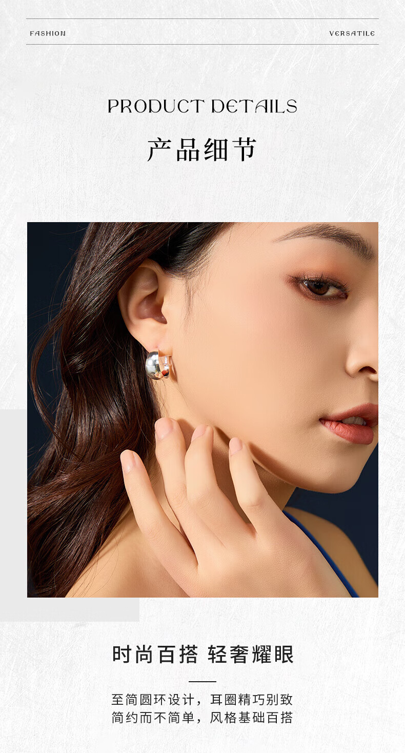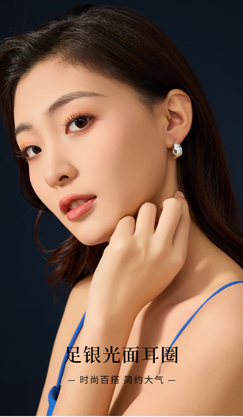 Lao Fengxiang silver earrings for women, glossy pure silver earrings and earrings, a birthday gift for mother, a gift for wife and girlfriend, silver jewelry, a pair of pure silver earrings (approximately 2.5g)