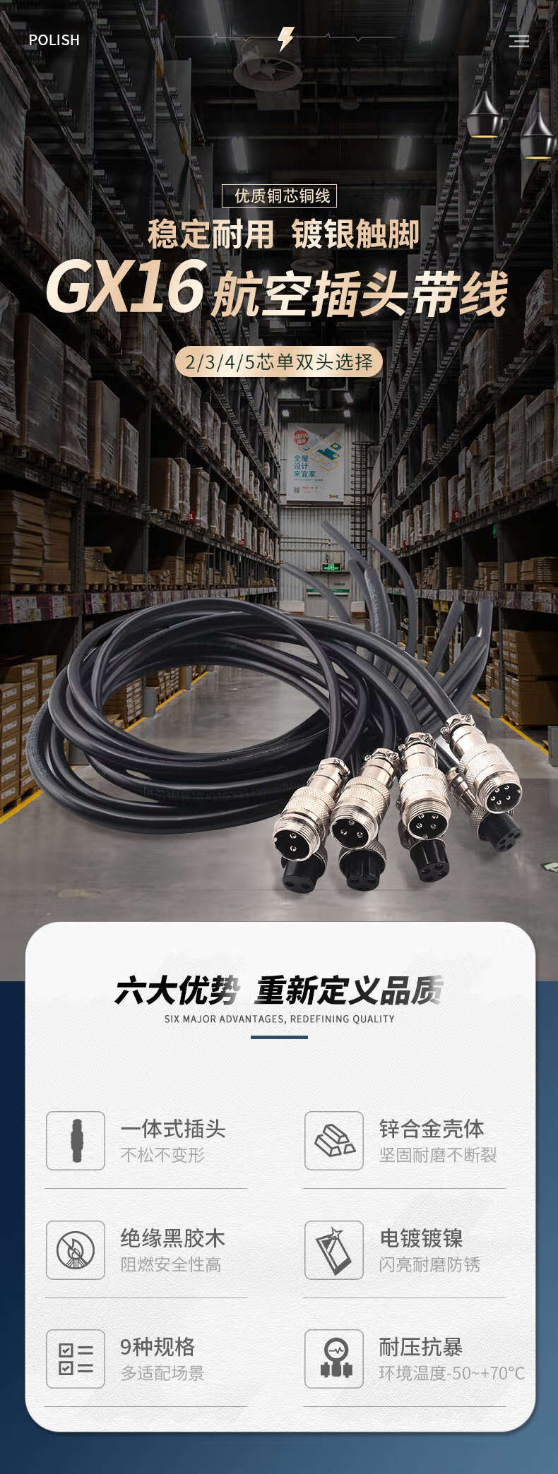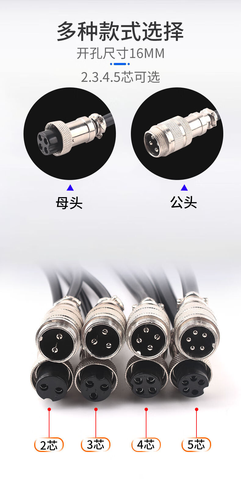 Zejie double-ended aviation plug GX16-2345 core female to female male to male welding connection cable 4-core 0.5m double-ended male with cable