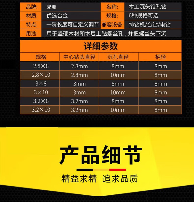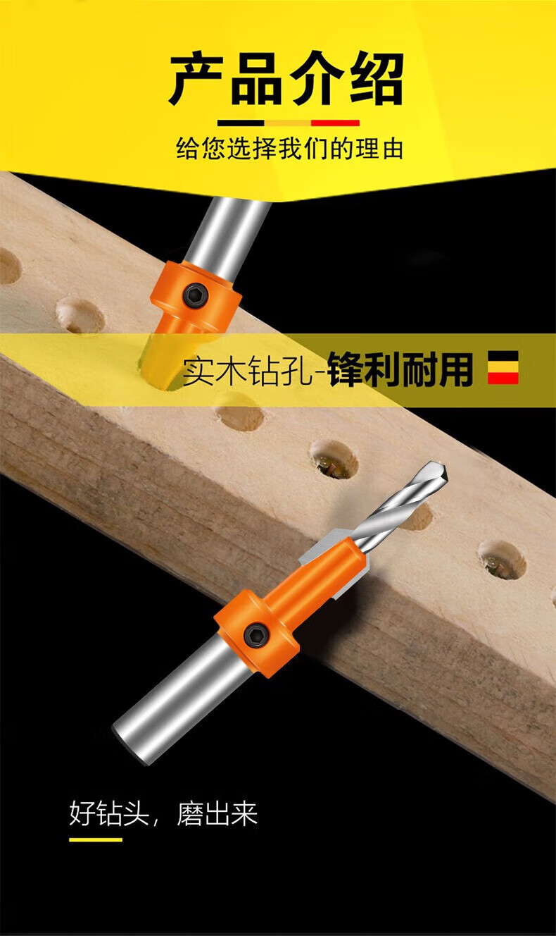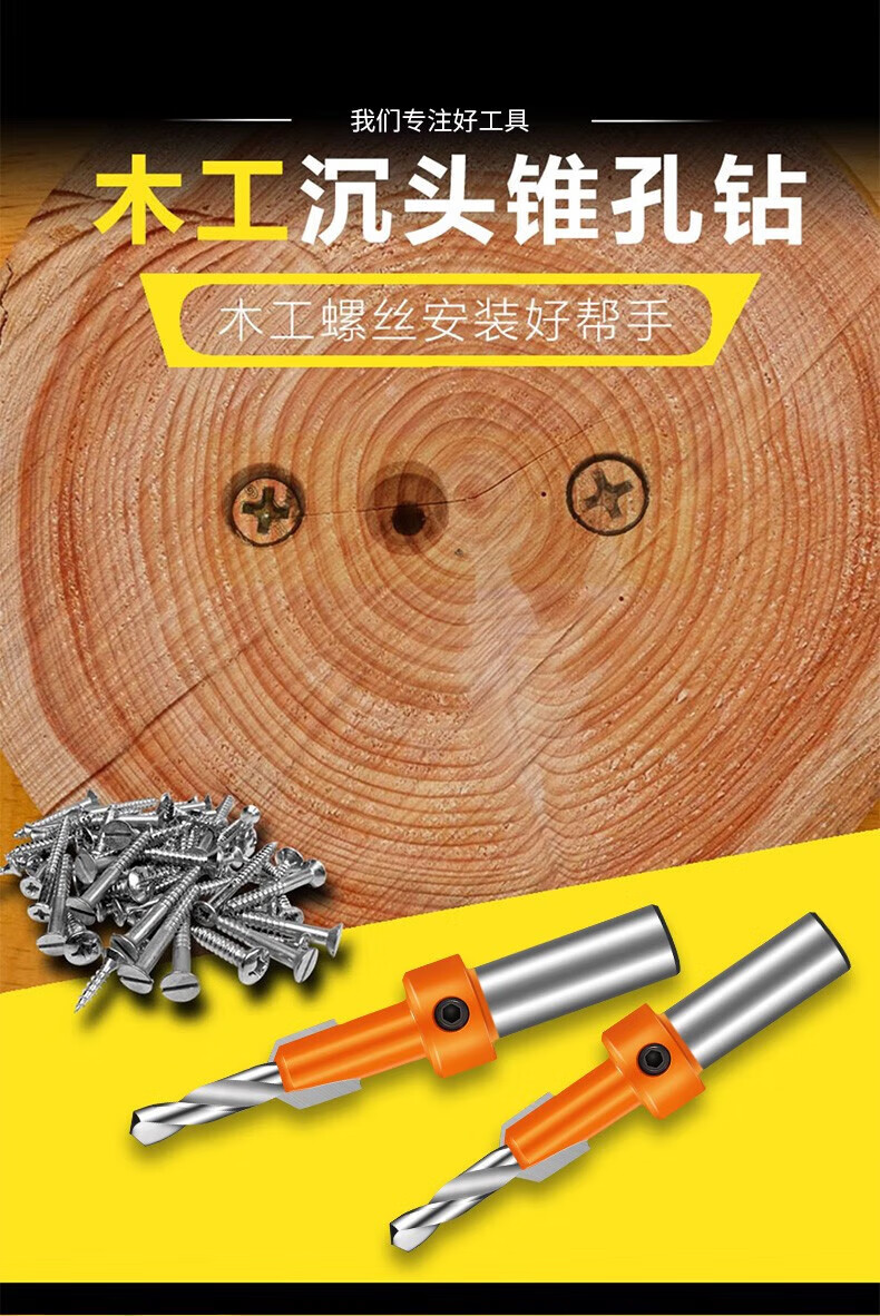 Chengzhou countersink drill bit countersunk head taper hole woodworking screw installation expansion step drill self-tapping alloy hand drill guide hole wear-resistant industrial grade countersink drill 2.8*8*8