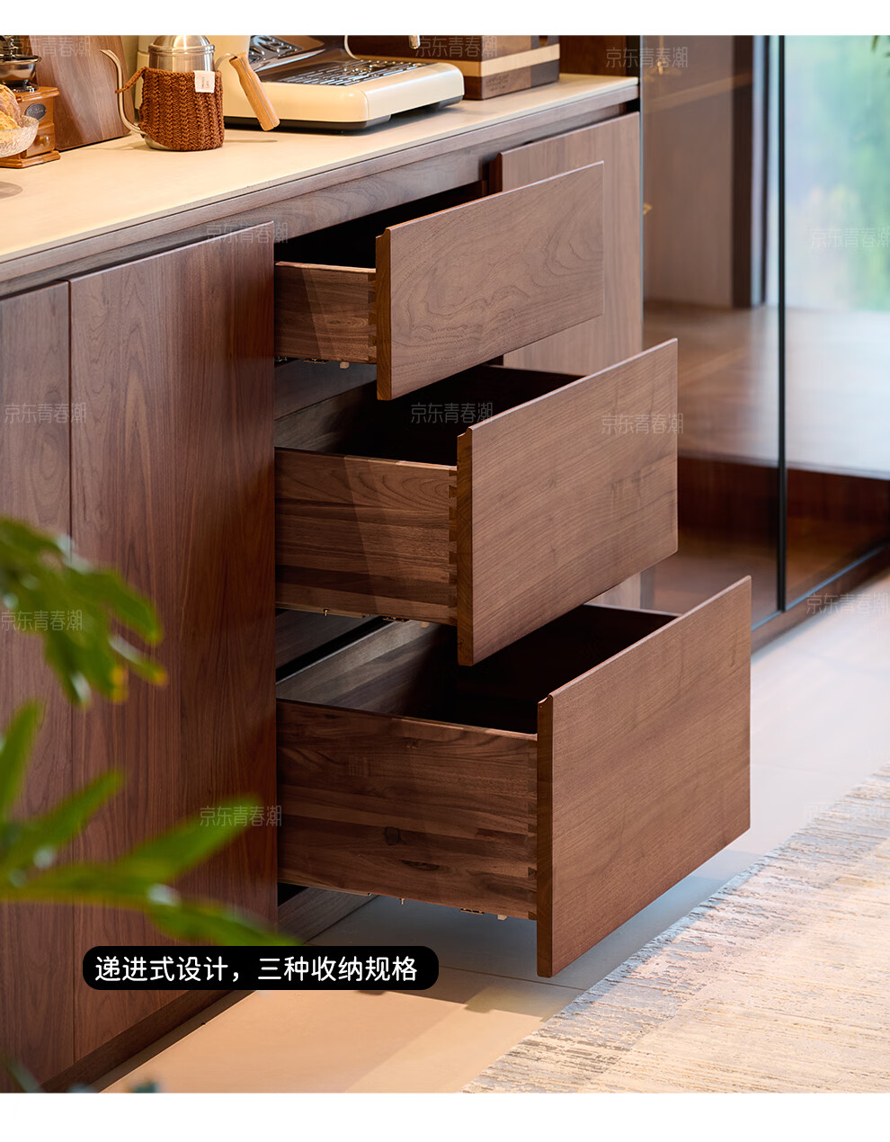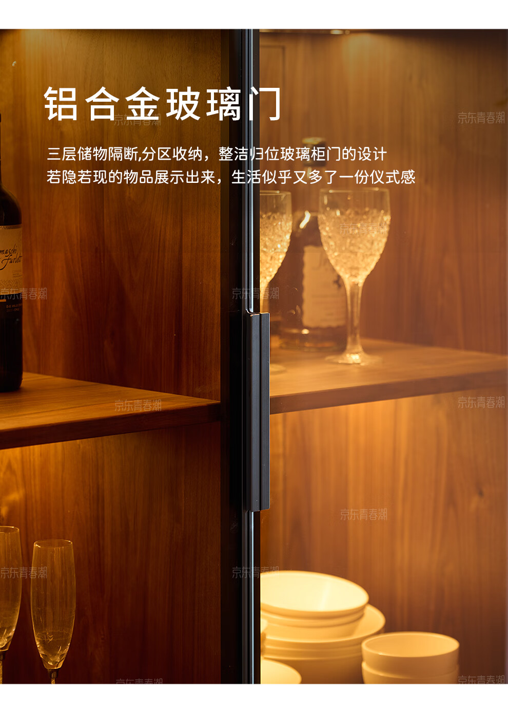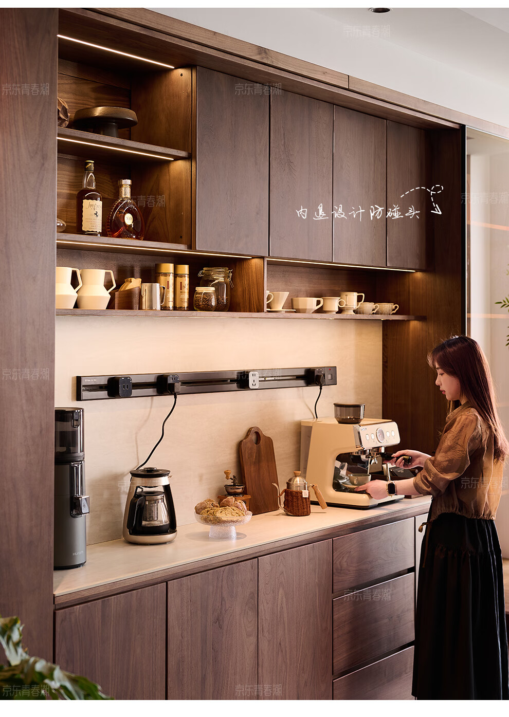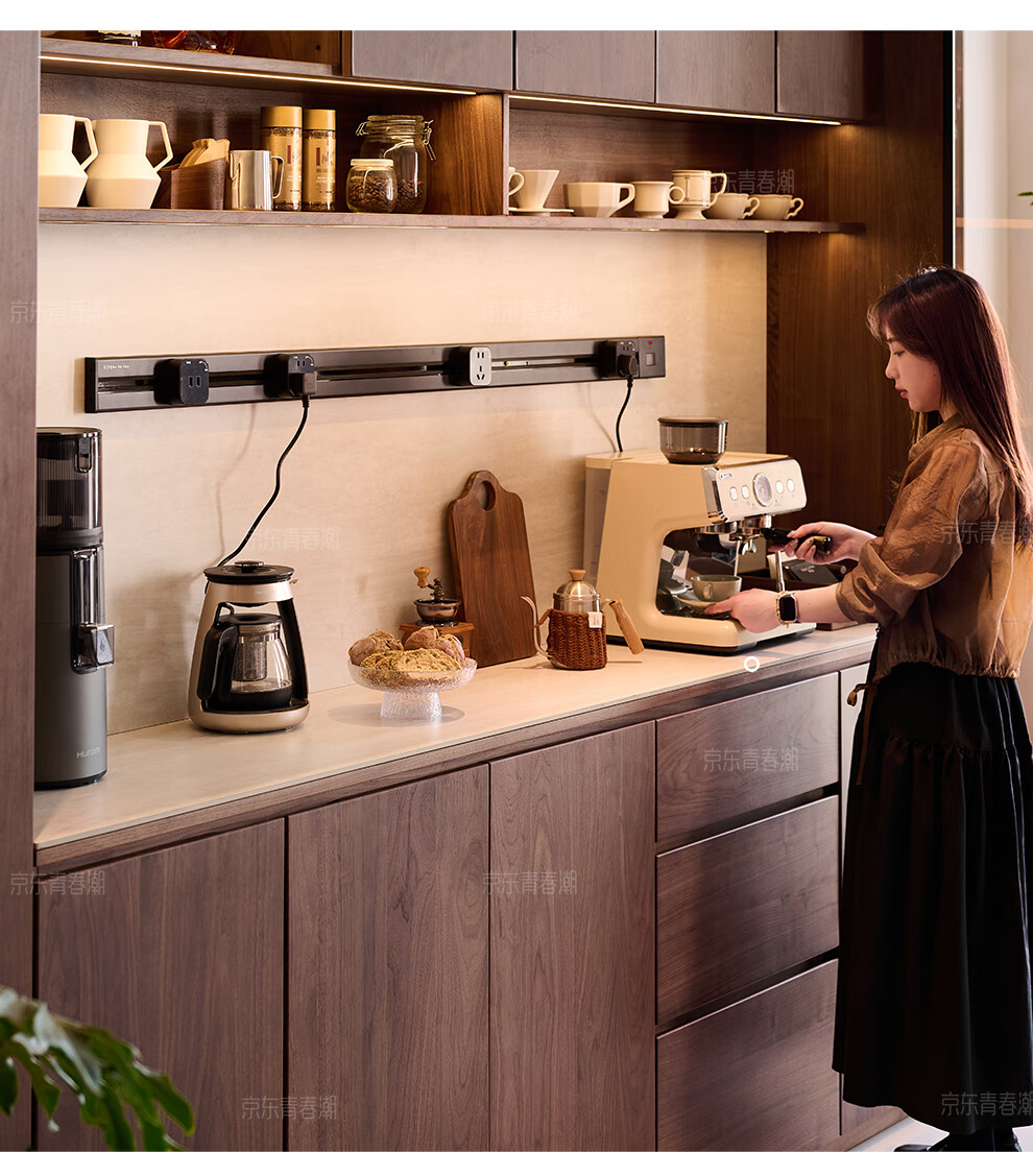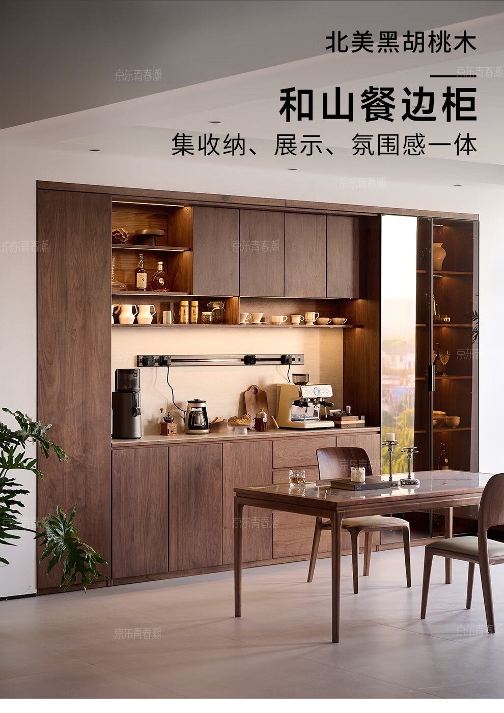 Youthful and trendy wall-to-wall sideboard integrated wall cabinet Black walnut living room wall-mounted multi-functional water bar cabinet Solid wood sideboard 240* (lower cabinet 50 upper cabinet 30)*236~240cm