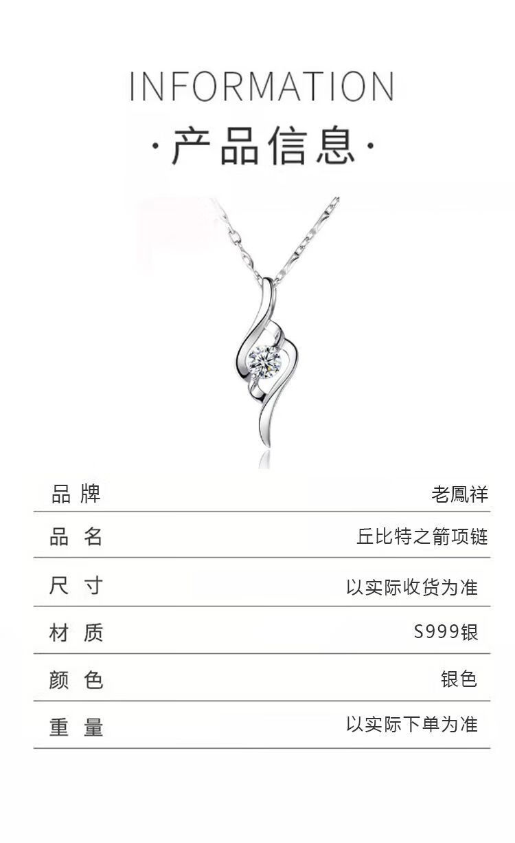 Lao Fengxiang Pure Silver Cupid's Arrow Necklace Women's Light Luxury Versatile Clavicle Chain Pendant Valentine's Day Birthday Gift for Lover Pure Silver Cupid's Arrow Necklace