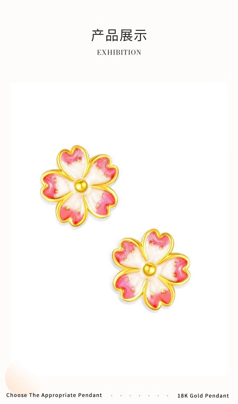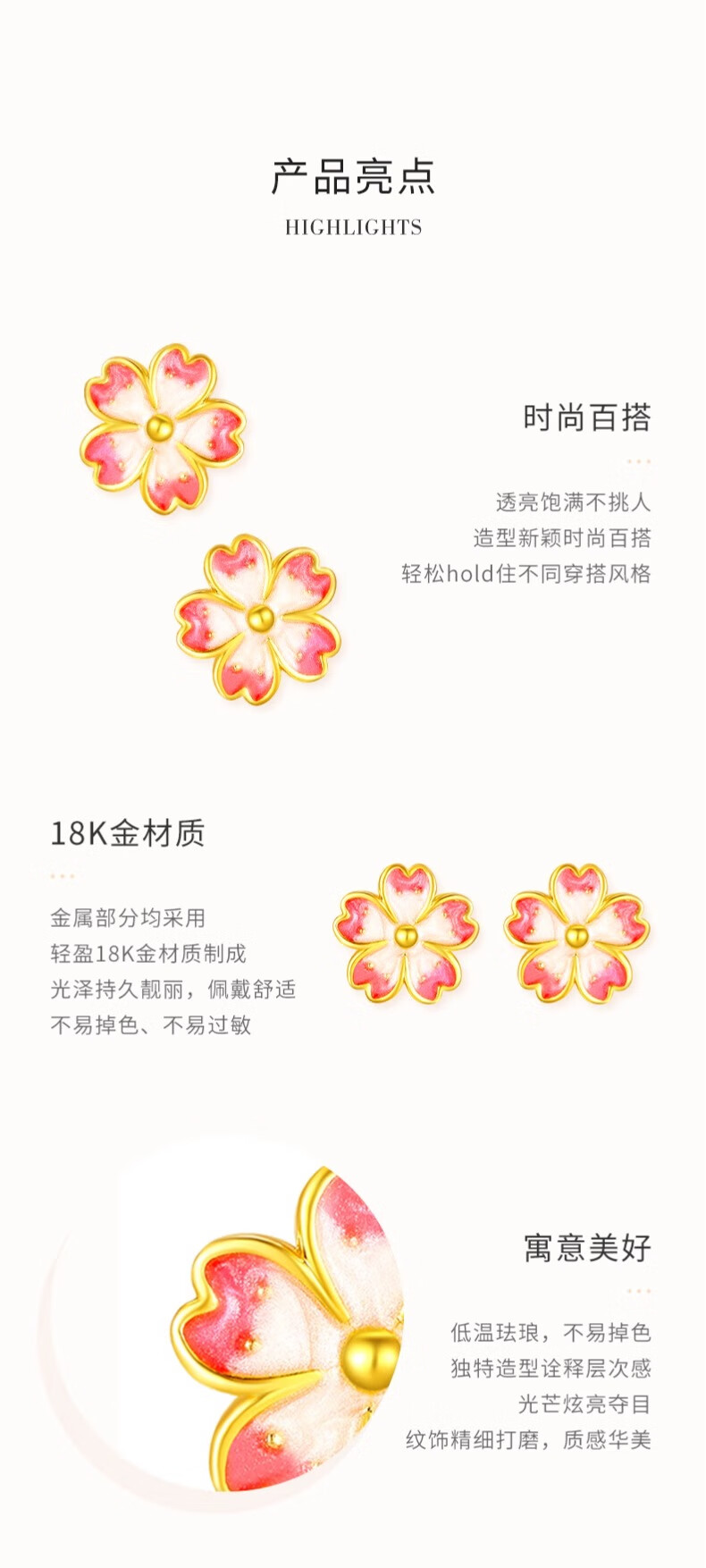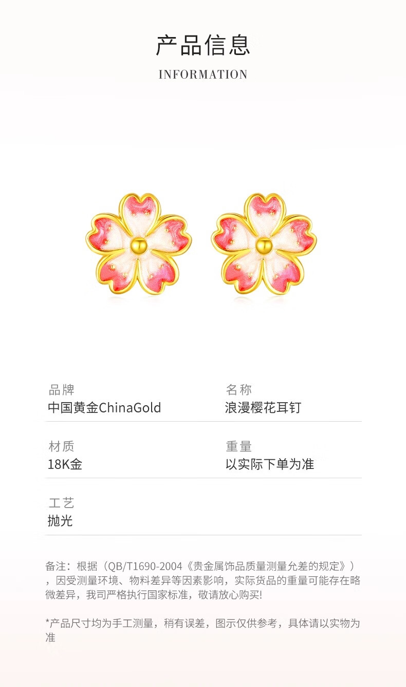 CHINA GOLD 18K gold romantic cherry blossom earrings earrings flower earrings earrings Valentine's Day birthday gift for girlfriend and wife 18K gold romantic cherry blossom earrings - about 0.4g one pair Gram weight is the total weight of the product K gold weight + topaz/others