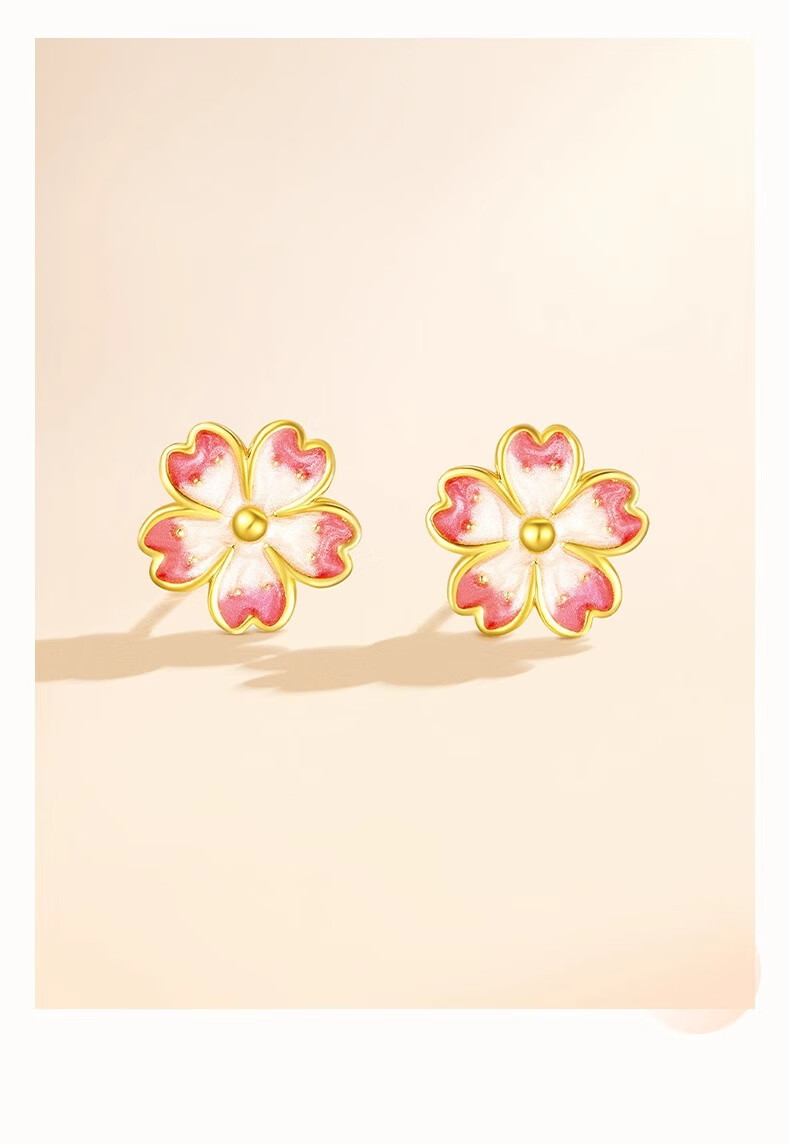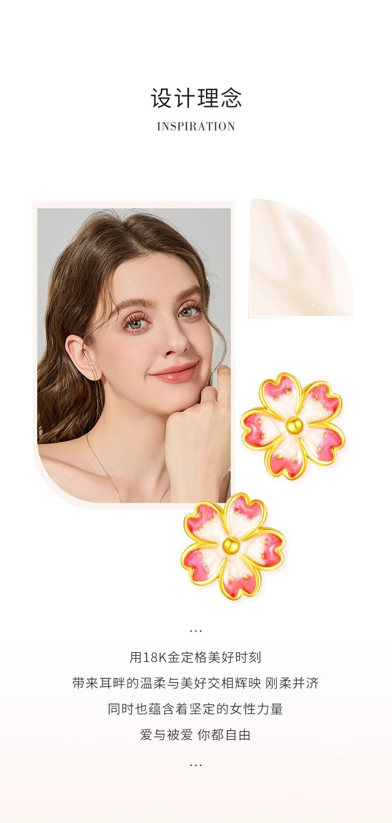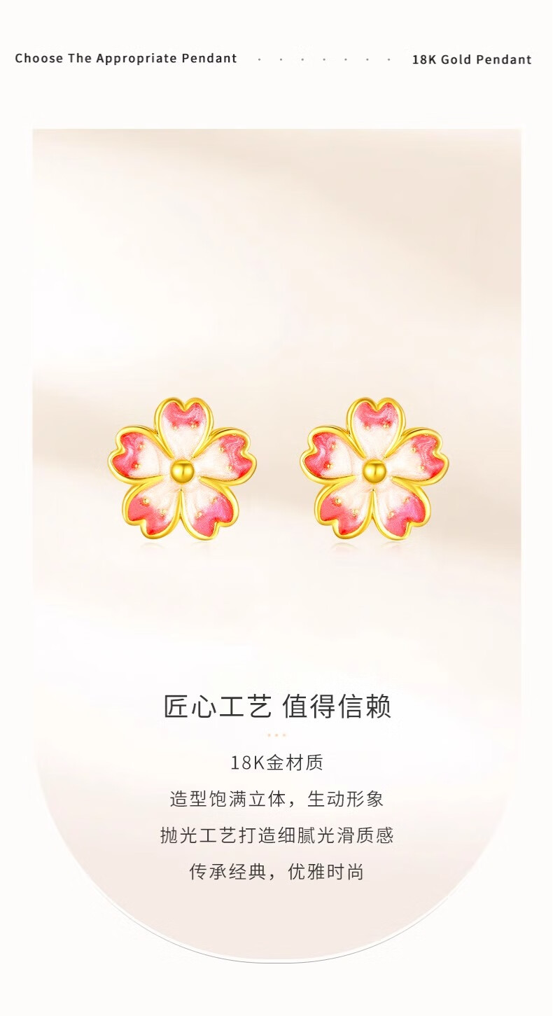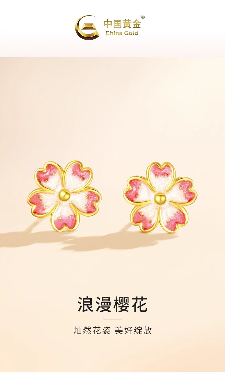 CHINA GOLD 18K gold romantic cherry blossom earrings earrings flower earrings earrings Valentine's Day birthday gift for girlfriend and wife 18K gold romantic cherry blossom earrings - about 0.4g one pair Gram weight is the total weight of the product K gold weight + topaz/others