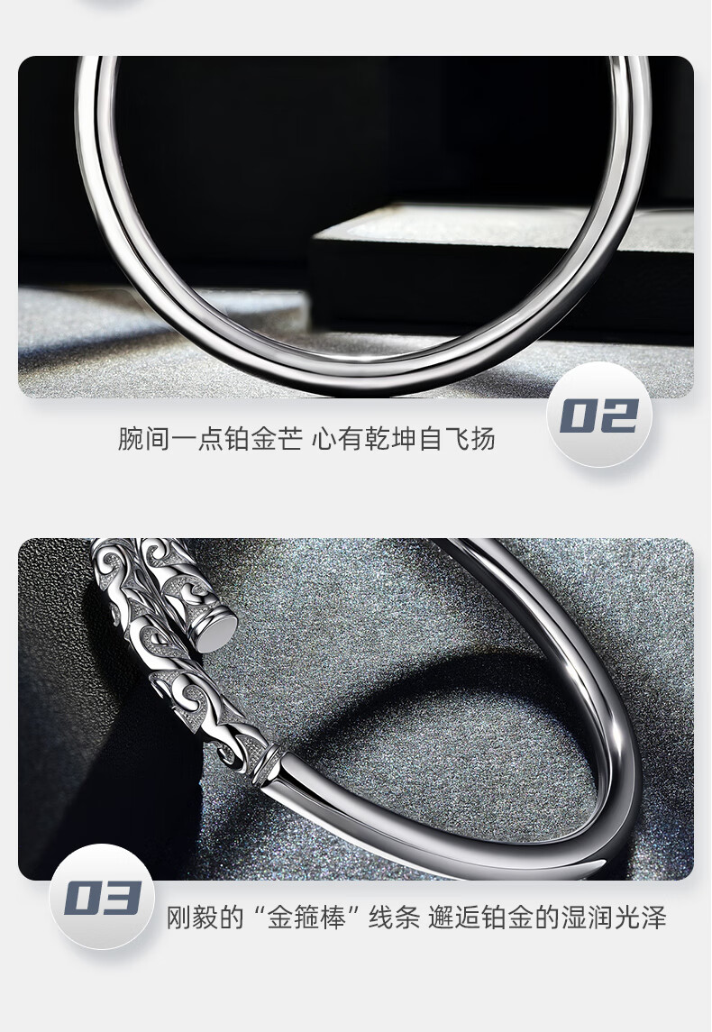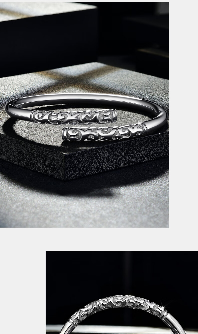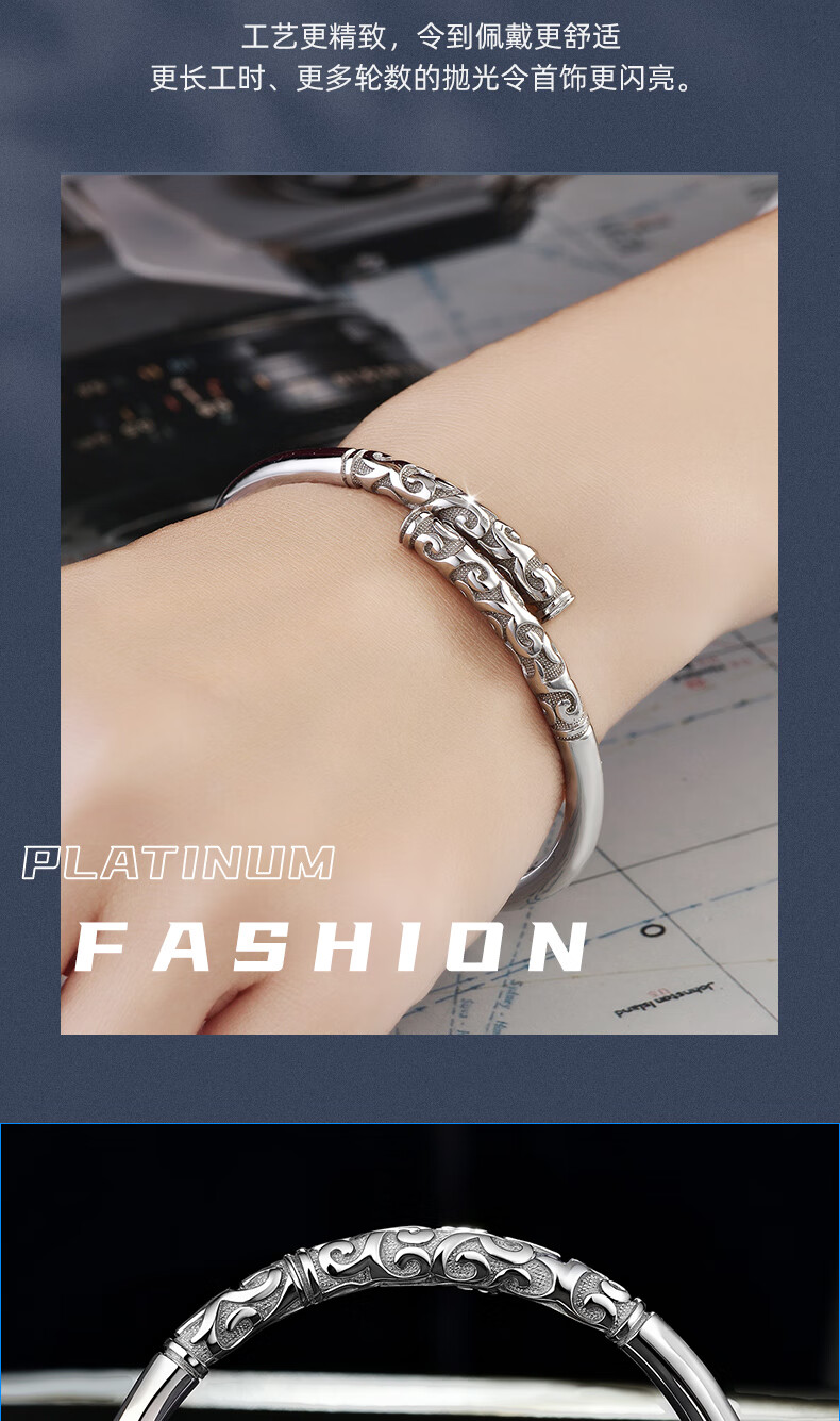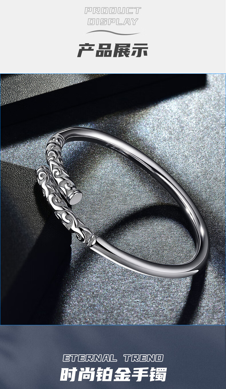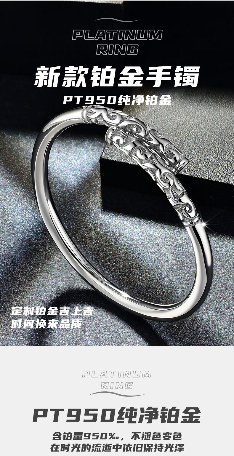 GsunG platinum PT950 new gold hoop open bracelet for men and women, Sun Wukong Supreme Treasure glossy pure white gold bracelet. Priced by gram, please contact customer service before bidding.