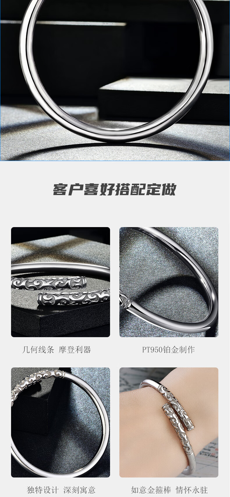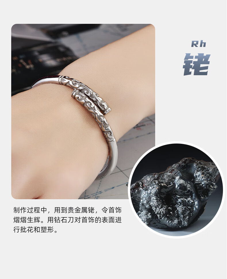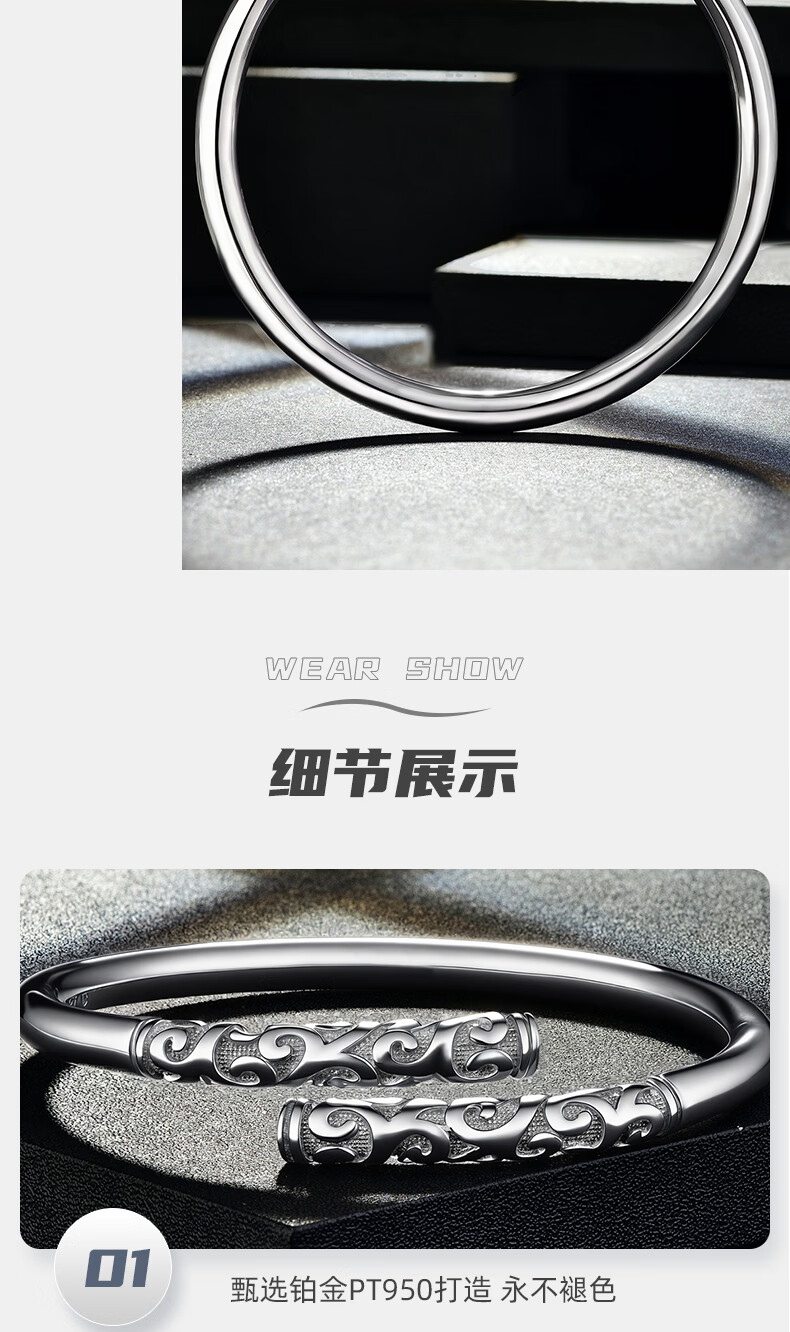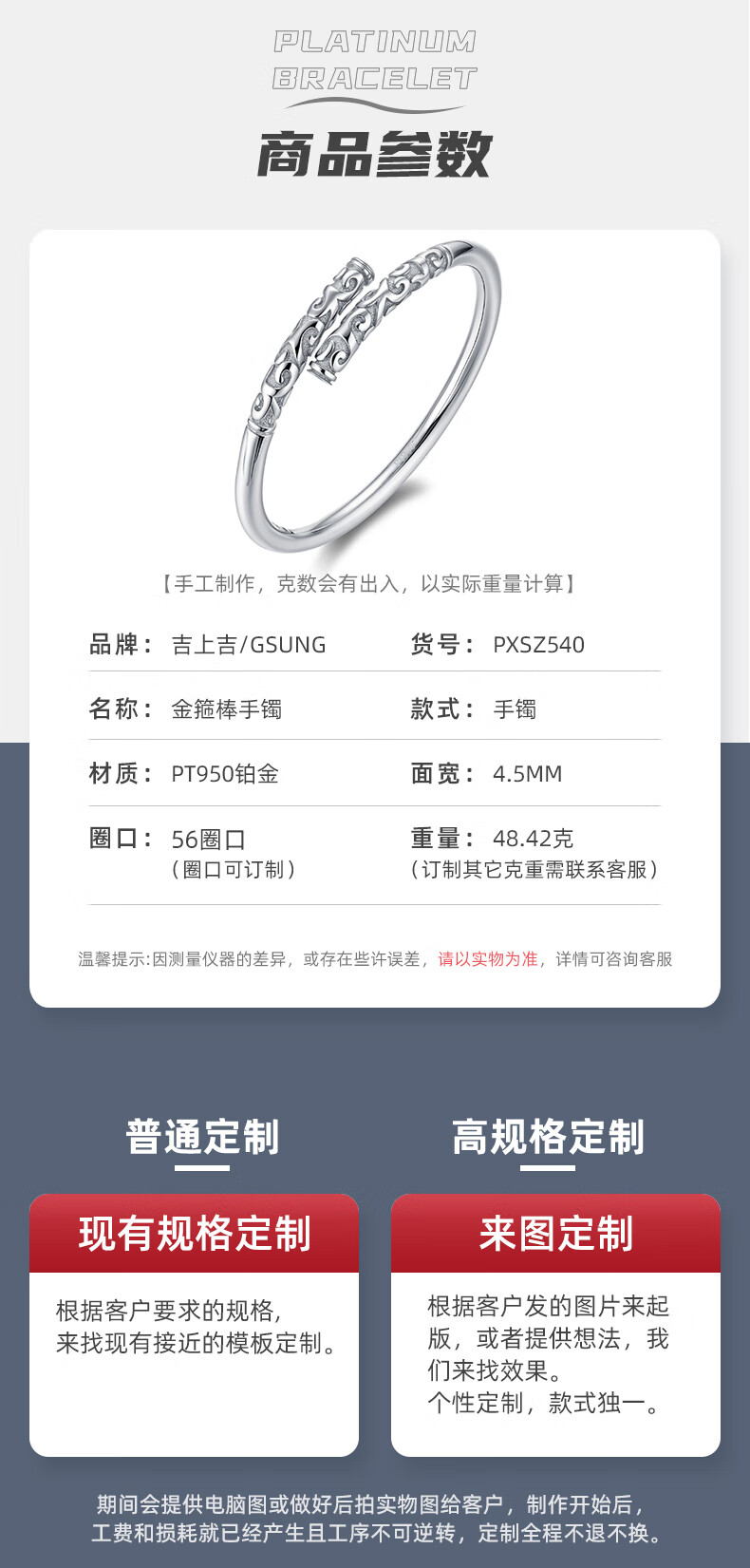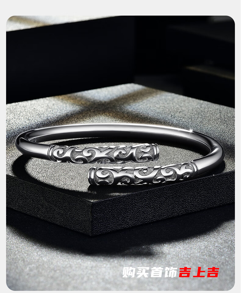 GsunG platinum PT950 new gold hoop open bracelet for men and women, Sun Wukong Supreme Treasure glossy pure white gold bracelet. Priced by gram, please contact customer service before bidding.