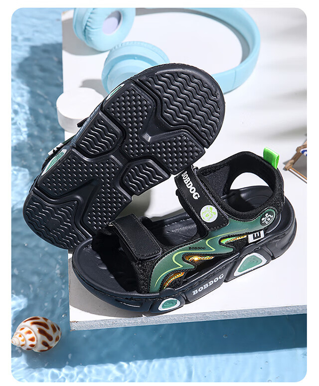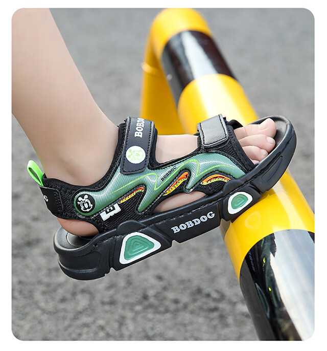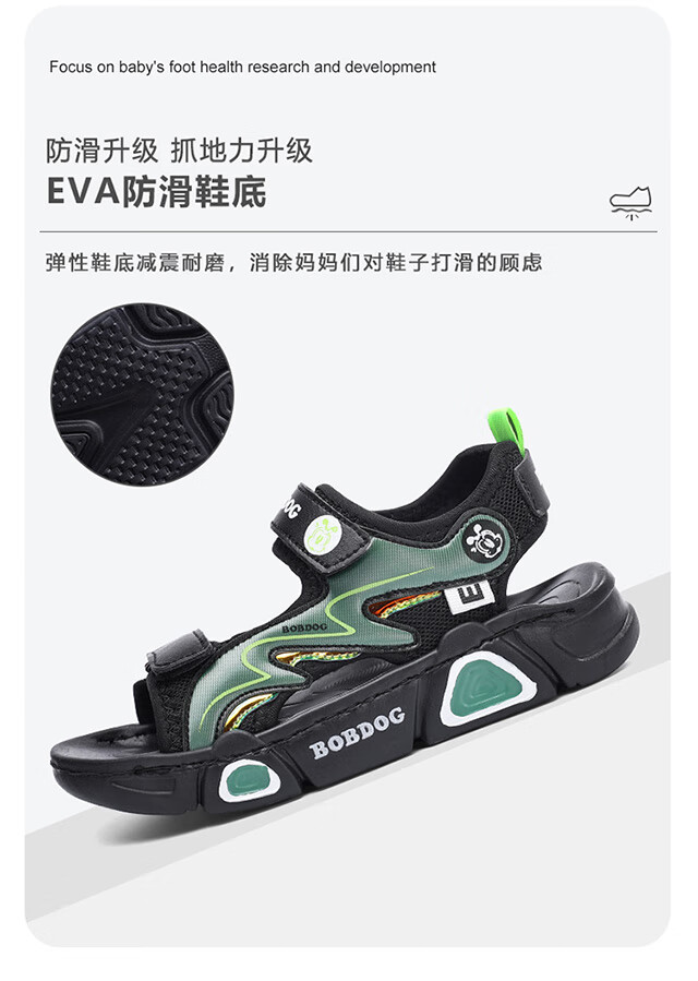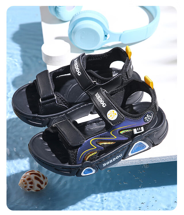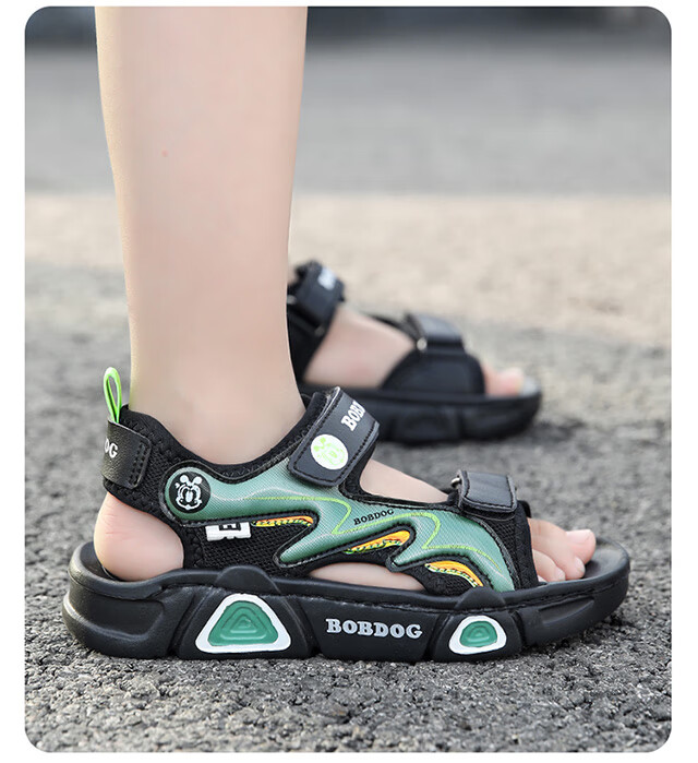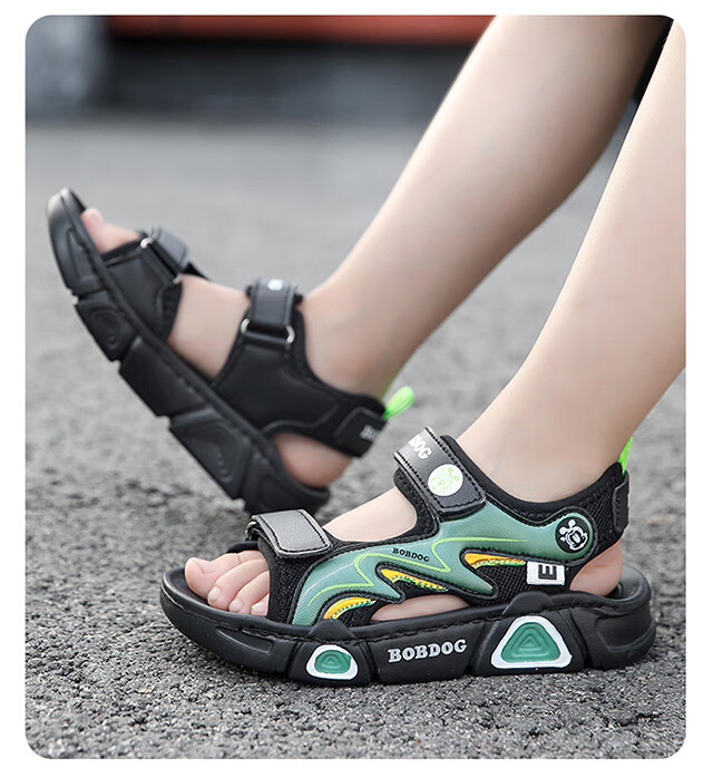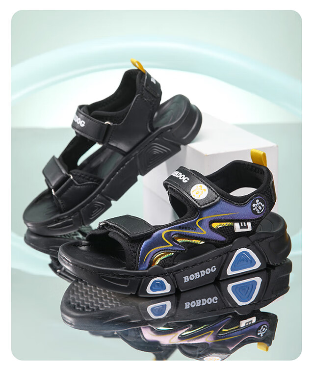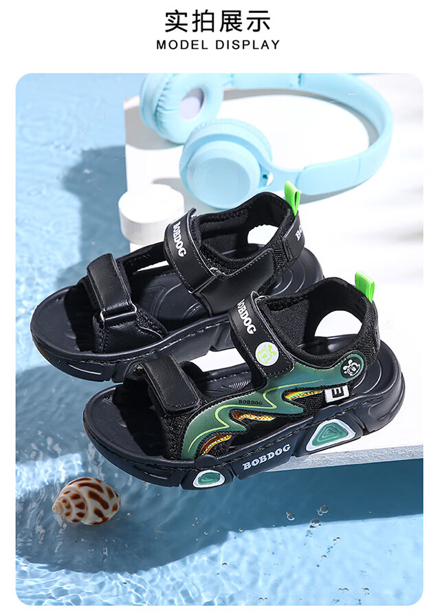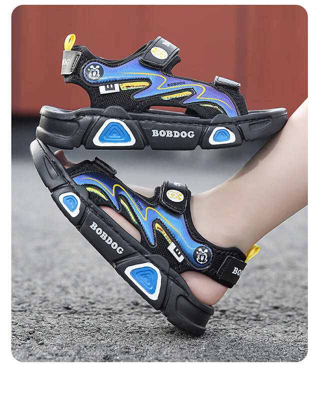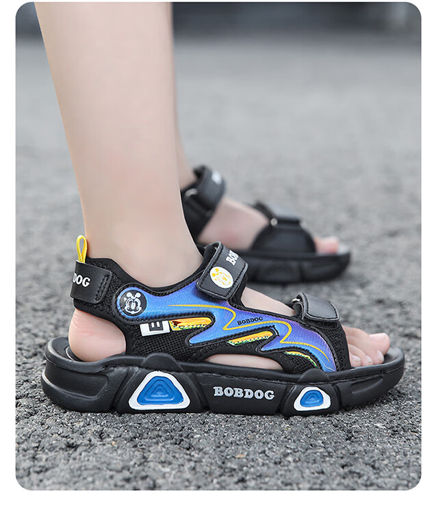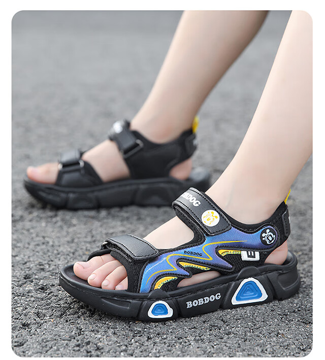 Babudou children's sandals 2025 summer new open-toe student soft-soled beach shoes non-slip middle and large children's sandals XD532/black blue 33 yards standard size