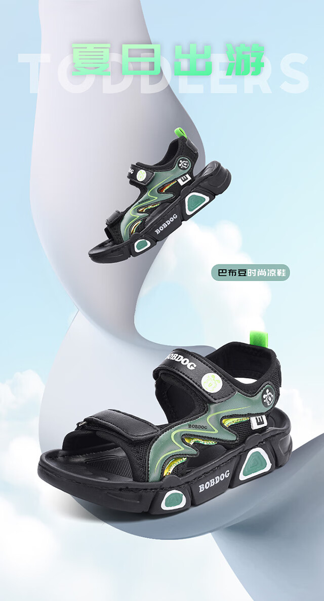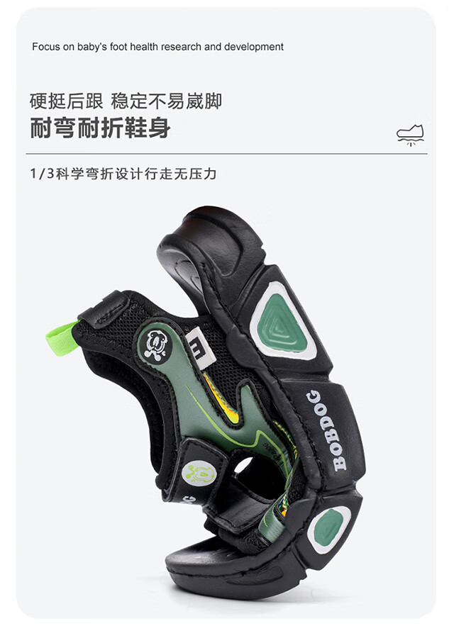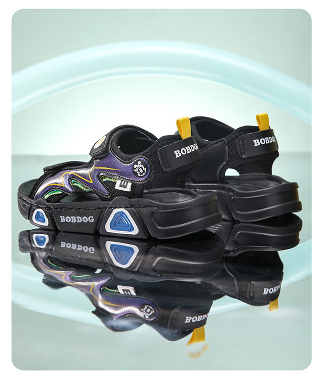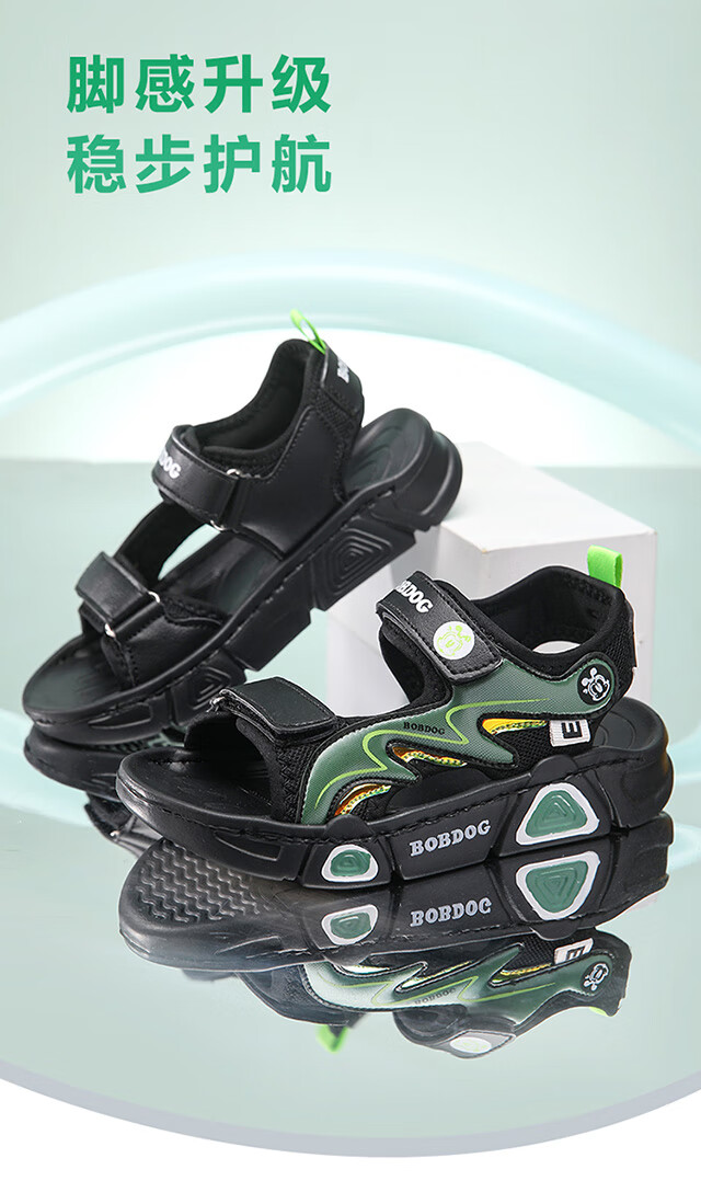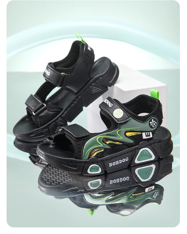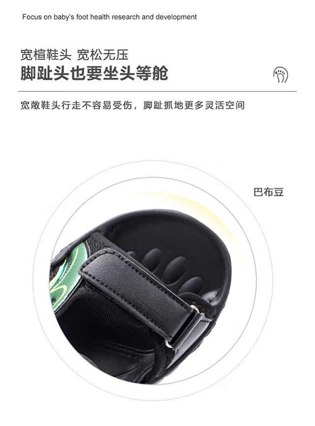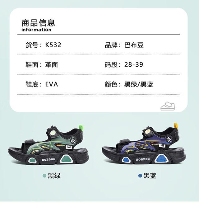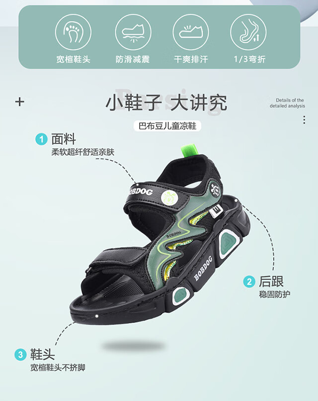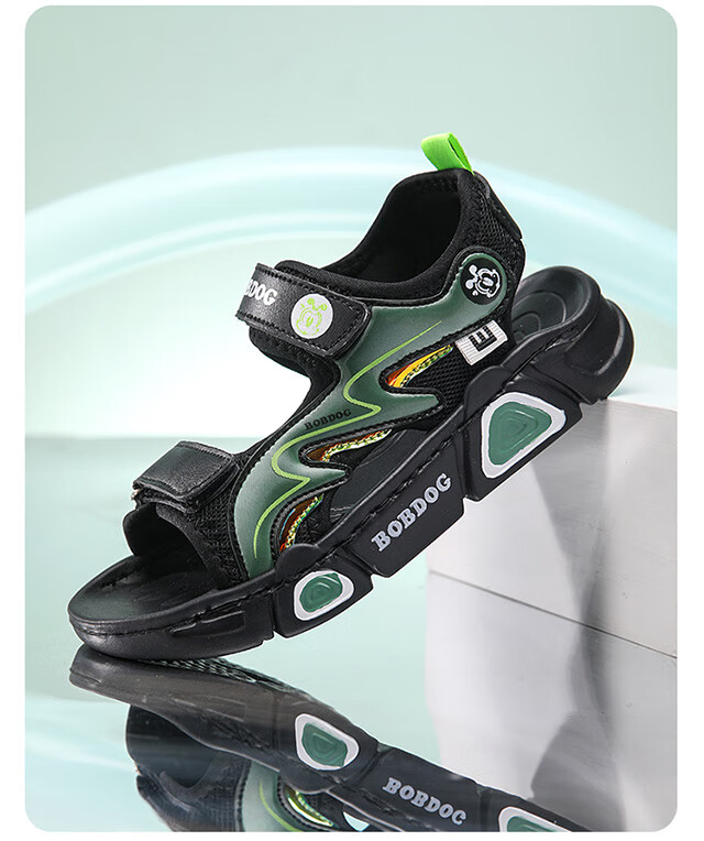 Babudou children's sandals 2025 summer new open-toe student soft-soled beach shoes non-slip middle and large children's sandals XD532/black blue 33 yards standard size