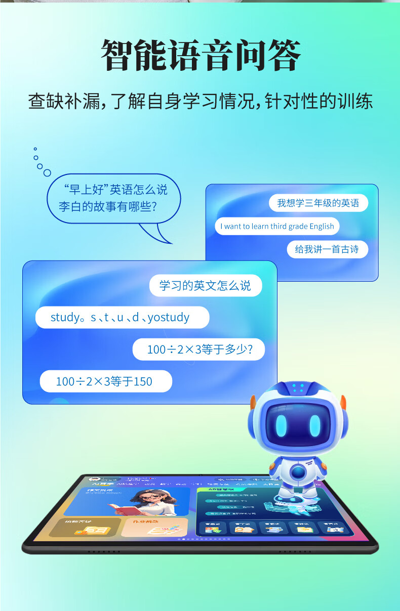 Haodulang learning machine tablet from primary school to high school curriculum synchronized English for junior high school students and children eye protection computer AI learning online course special AR finger reading teaching materials free plug-in phone card can call 512G free gift package