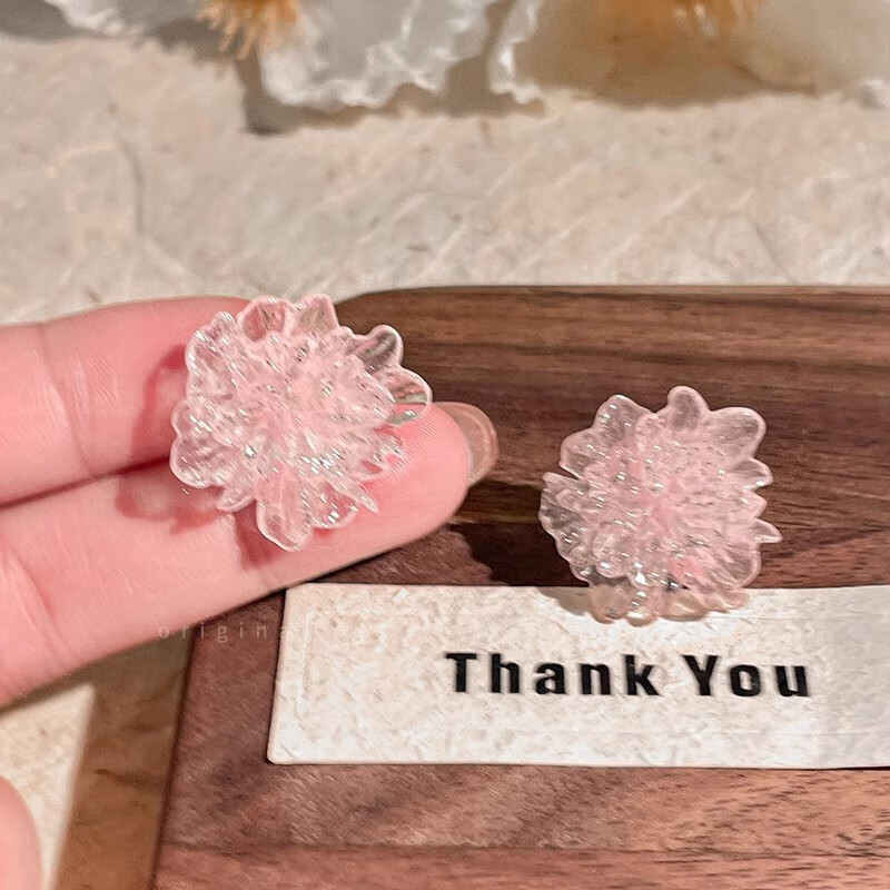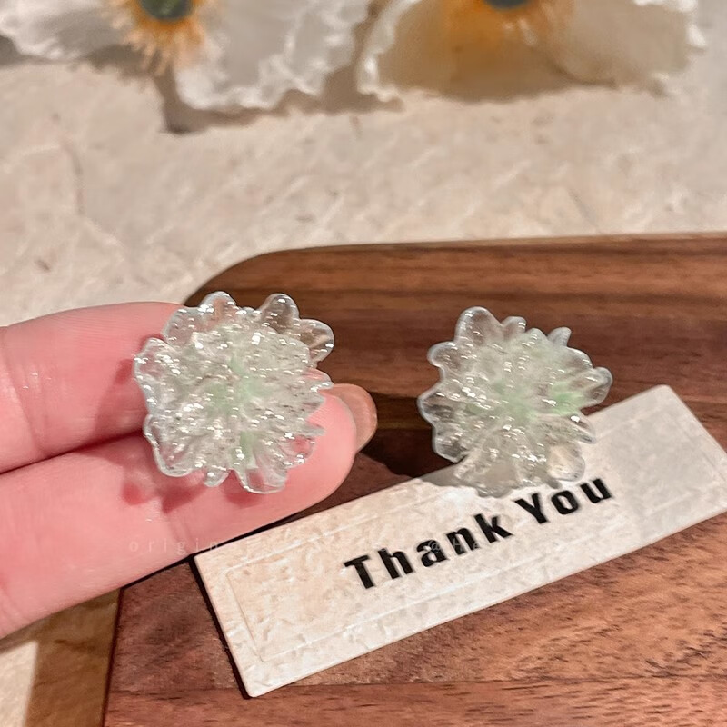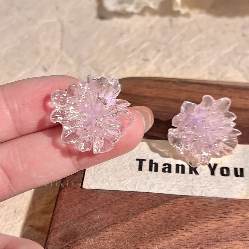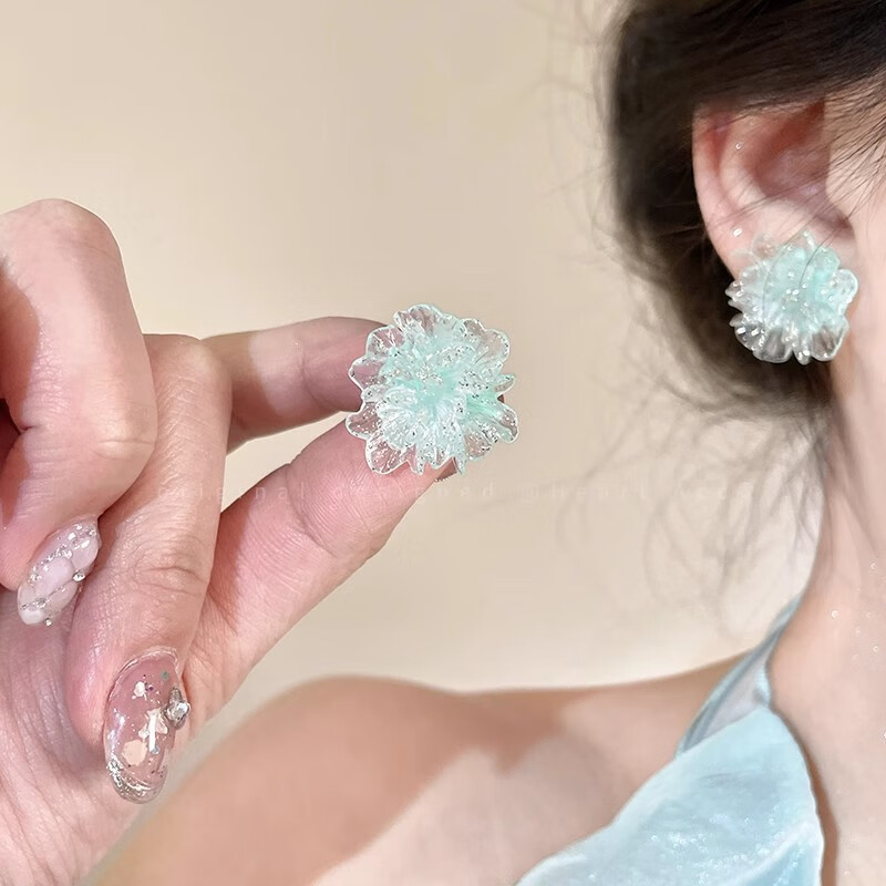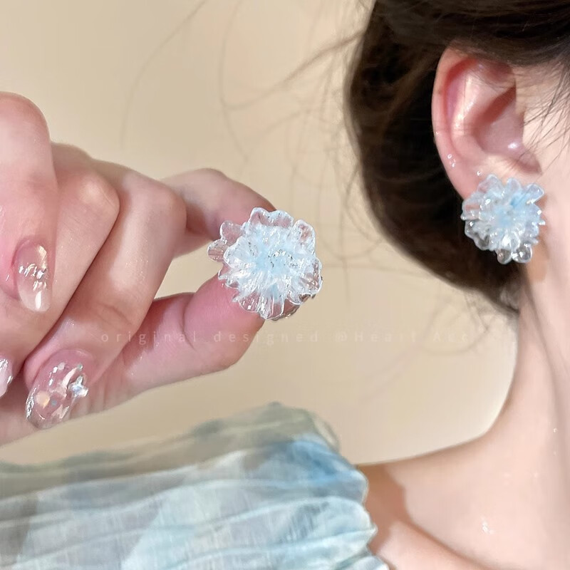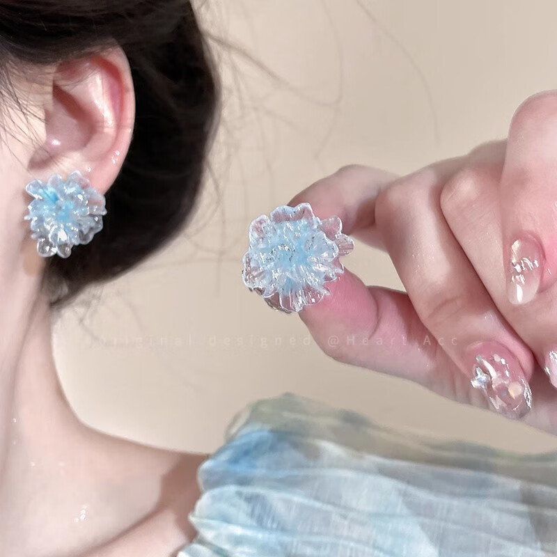 Colorful ice transparent flower earrings for women, sweet, fresh and high-end earrings, high-looking and versatile earrings, blue ice transparent flower, 1 pair