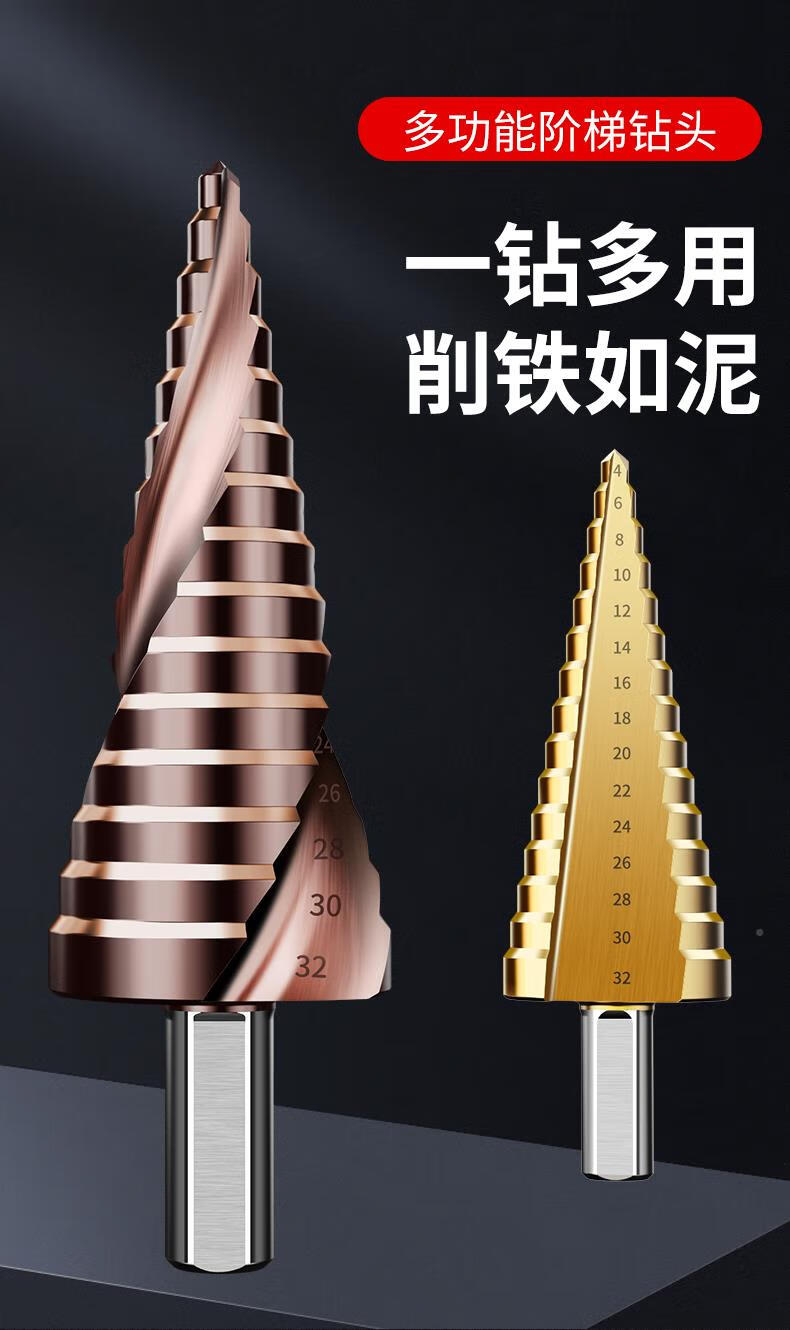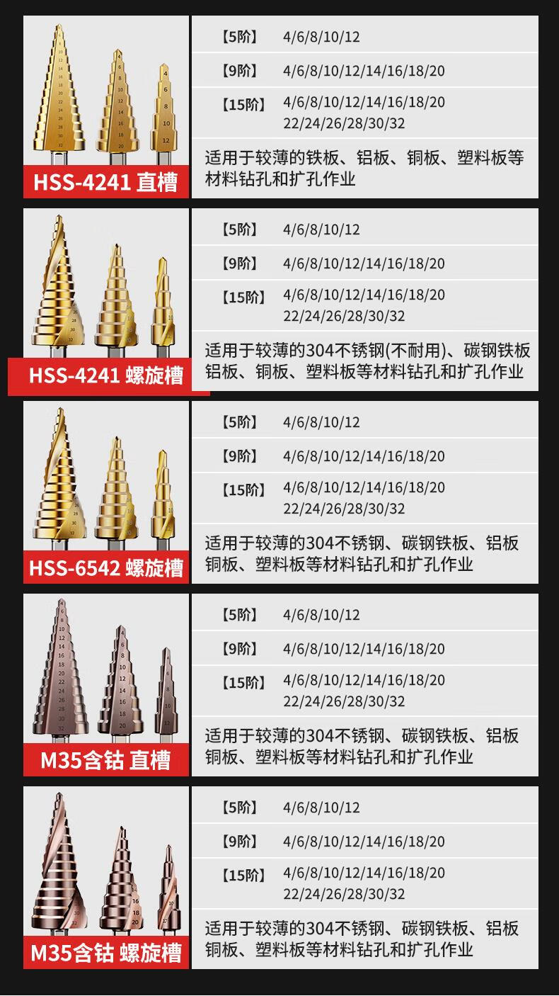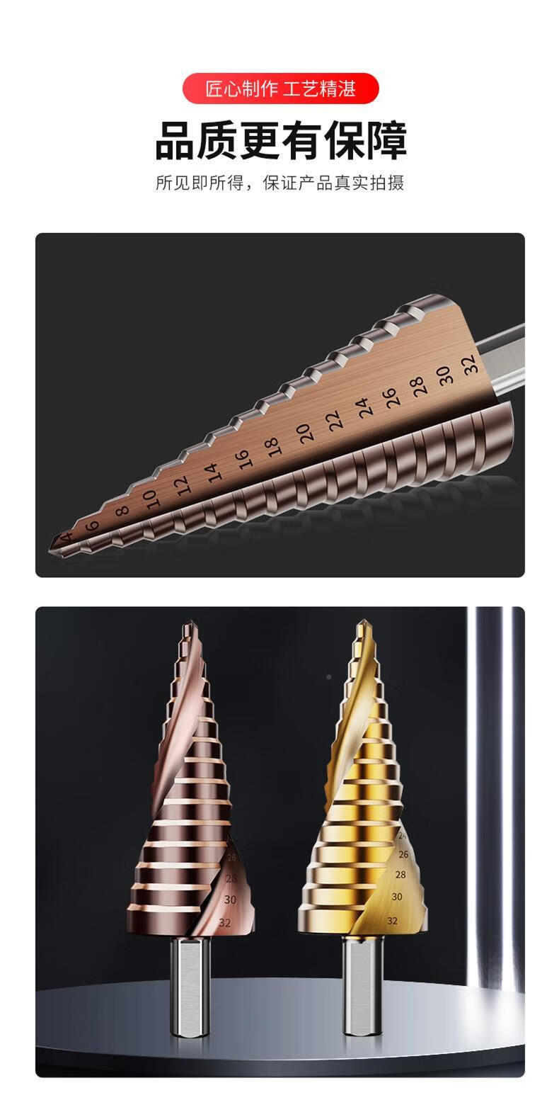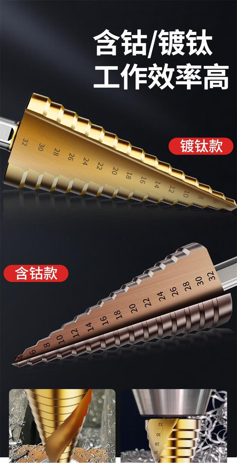 JCZS German brand pagoda drill bit, high hardness, cobalt-containing stainless steel hole opener, special tower type reaming drill bit for steel, straight groove (three-piece set), ultra-durable type